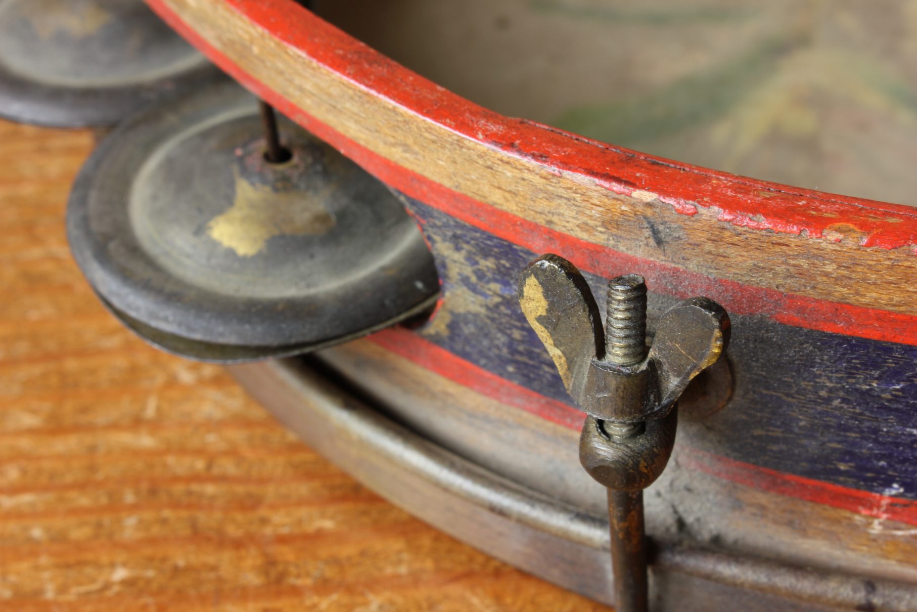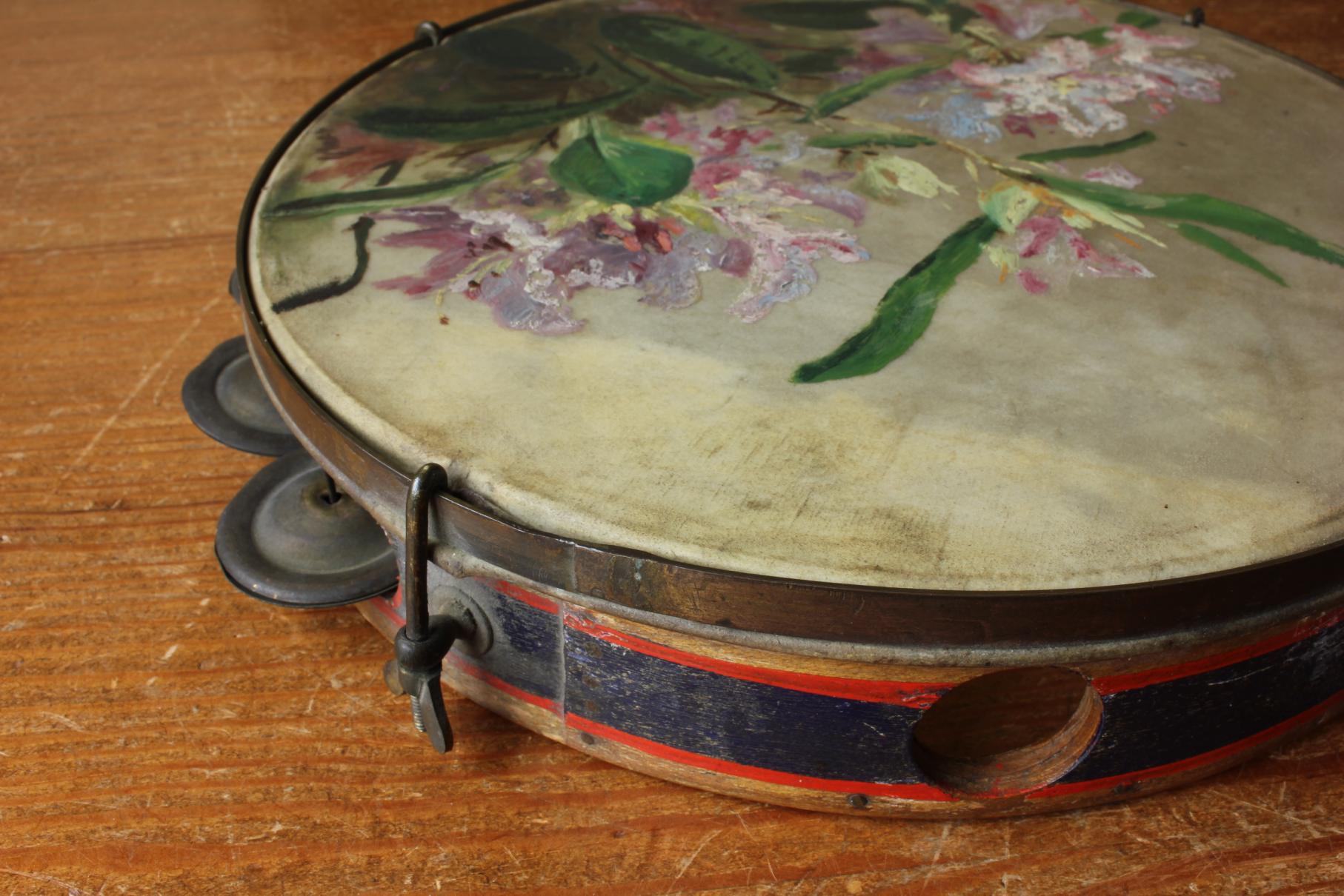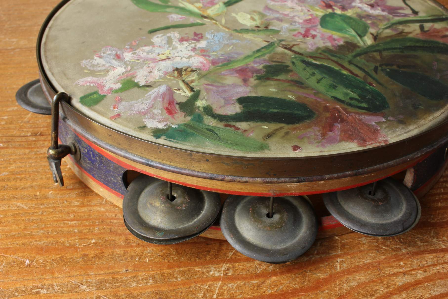 A very nice antique painted tambourine with a wonderful folk art look and displays nicely.