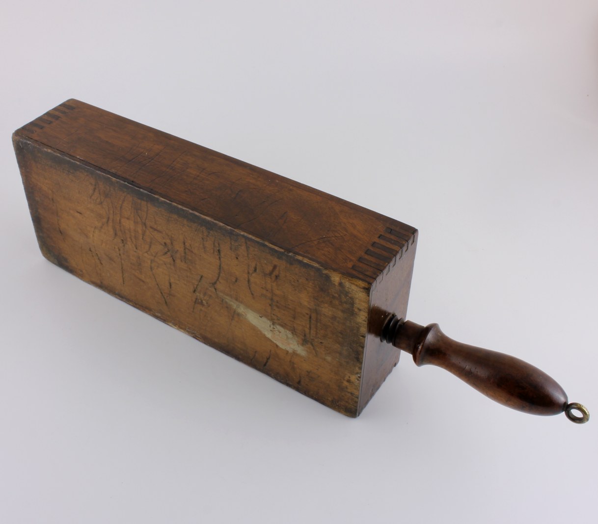 This rectangle press would have been used in a French bar or cafe over 100 years ago, is nicely made with a turned wood handle that twists to keep the compartments held tightly in place.