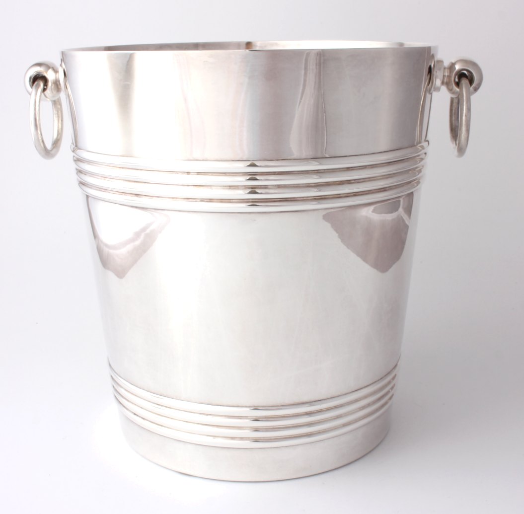 This stylish silver plate Champagne / wine cooler which dates from the 1930's is by top French silversmith Christofle. This wine cooler has 2 side ring handles and is from Christofle's Gallia collection. The Champagne bucket is a very nice heavy weight and the silver plate is in excellent condition.