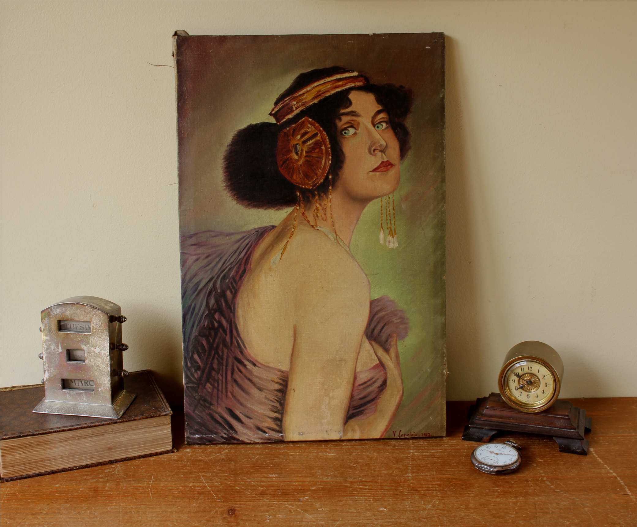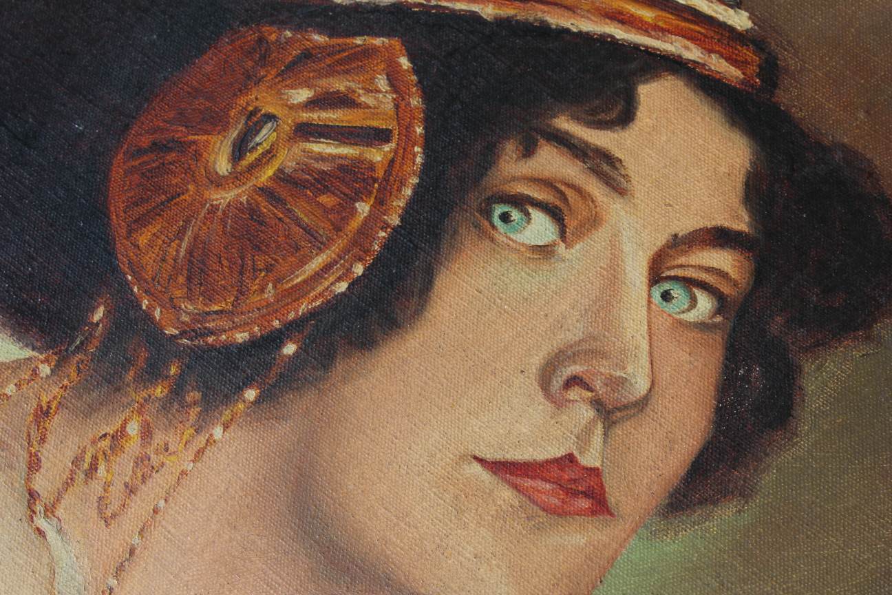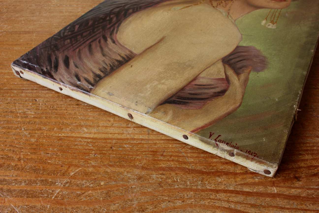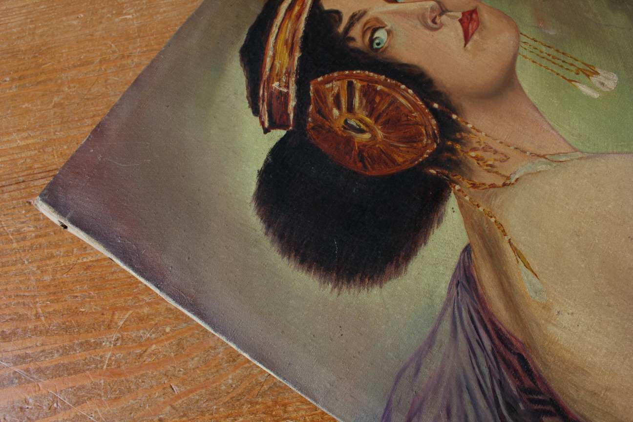 This stylish antique oil painting which is of the actress Lili Malberg as Salome has been painted using oils on canvas and is signed and dated by the artist V Langlois in 1913.