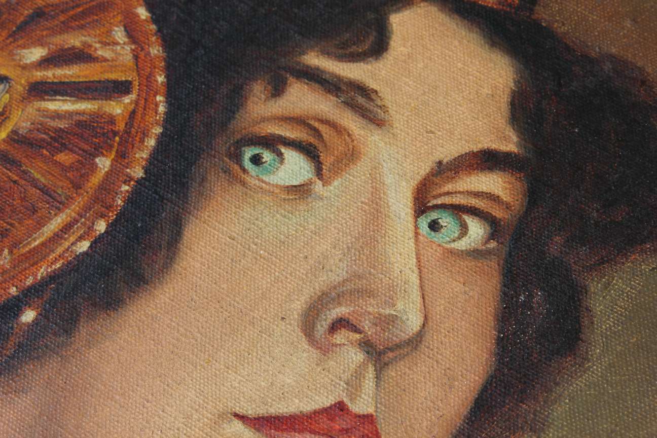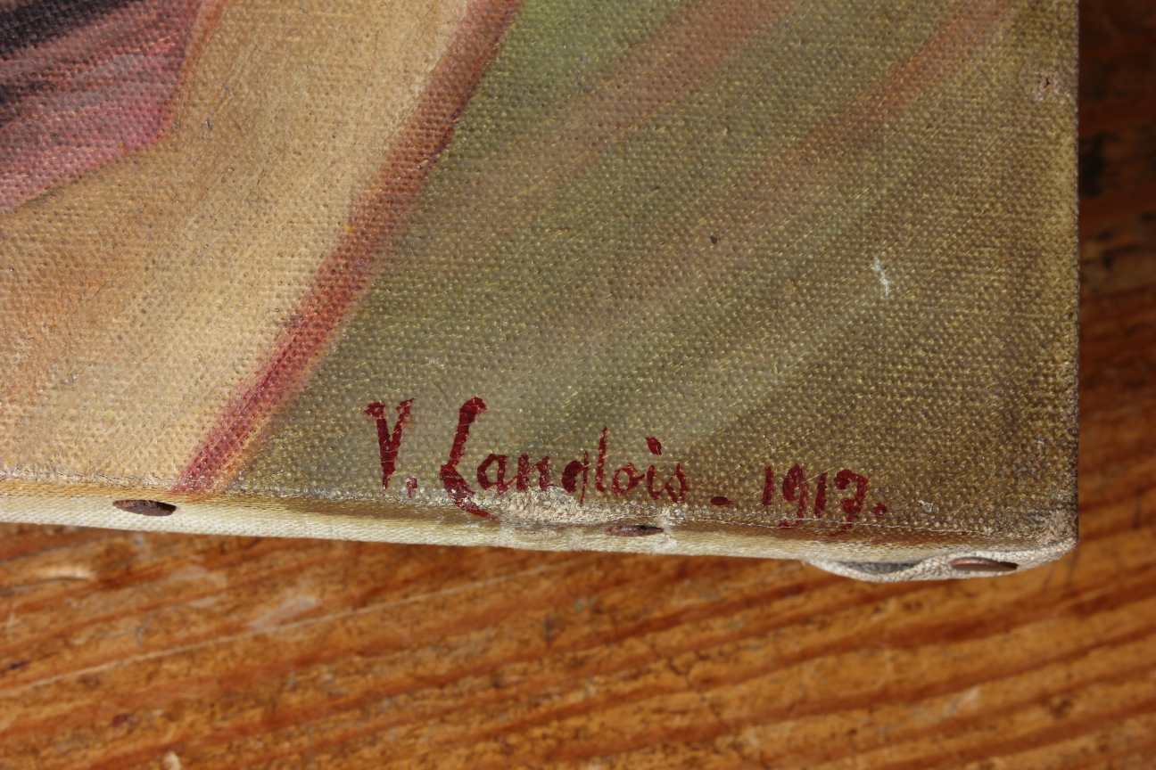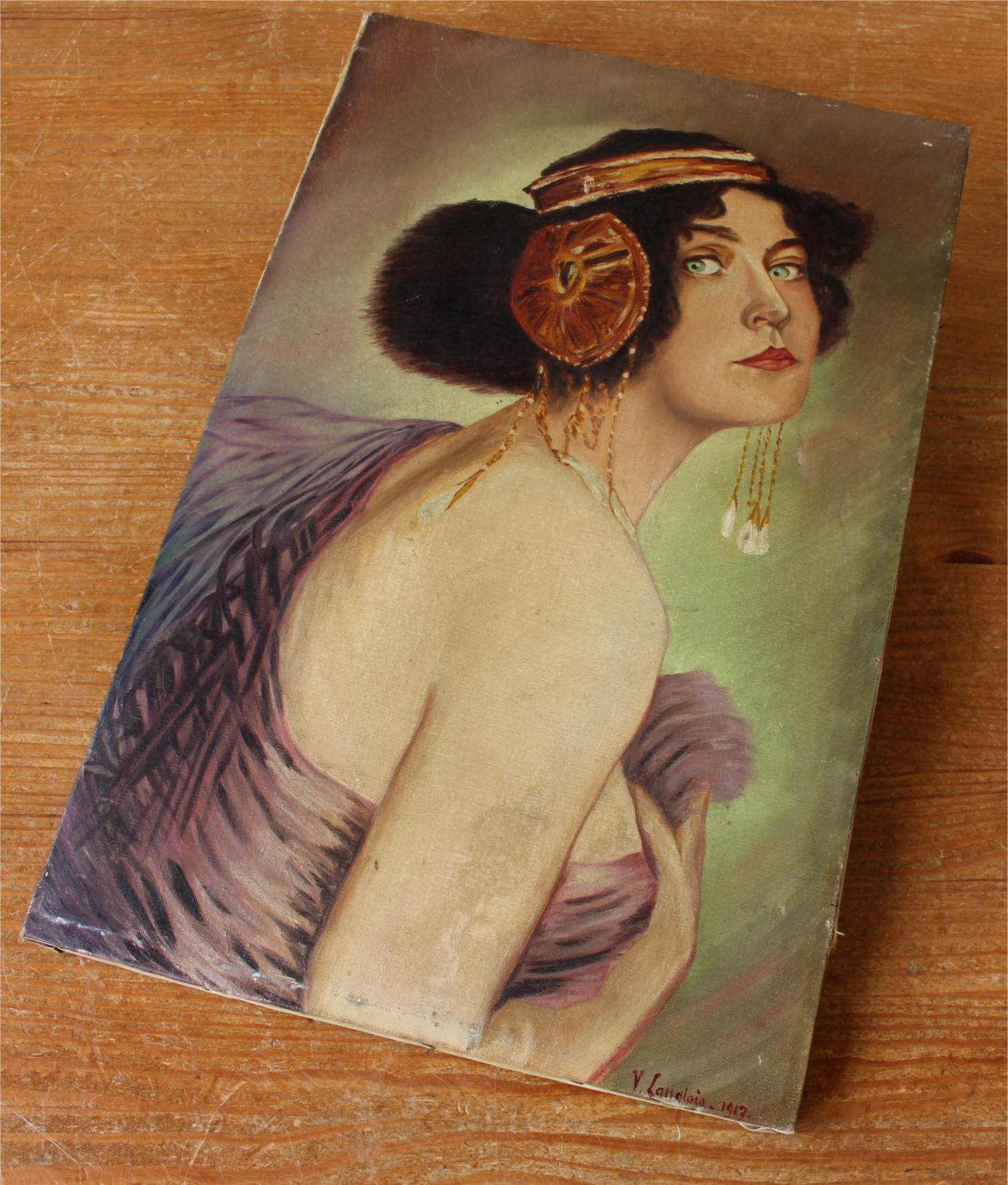 This stylish antique oil painting which is of the actress Lili Malberg as Salome has been painted using oils on canvas and is signed and dated by the artist V Langlois in 1913.