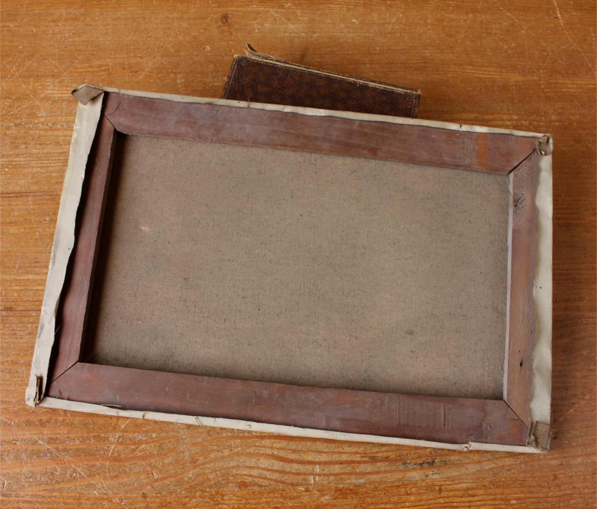 Condition: Good antique condition with signs of use in keeping with age. Some general wear and marks around where the frame was fitted. One small tear on the headband as shown in the images. Please see pictures.