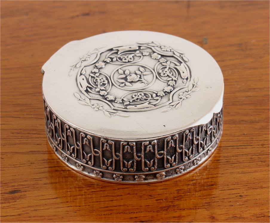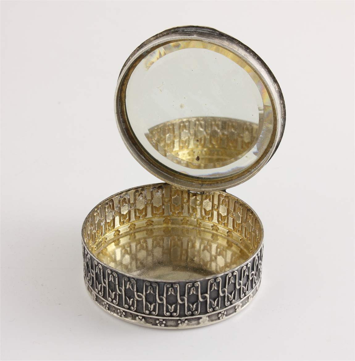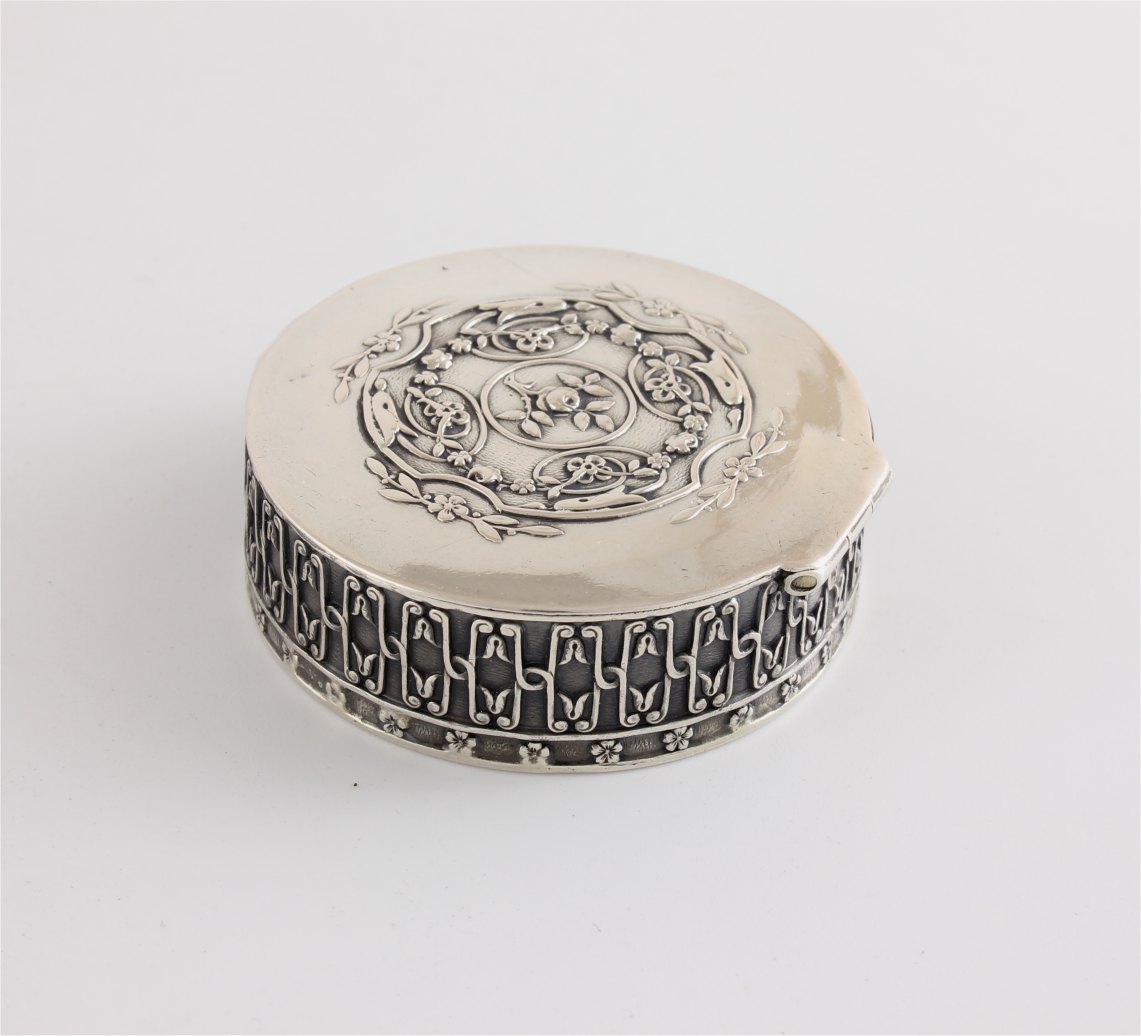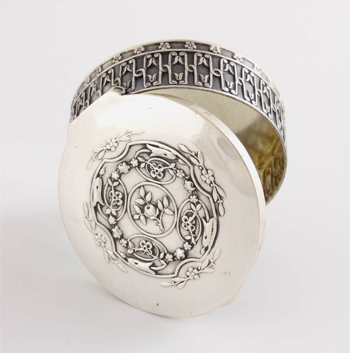 Marked to the inside top lid: Marked with French silver hallmarks and maker's mark AL for Aristide Leclerk.