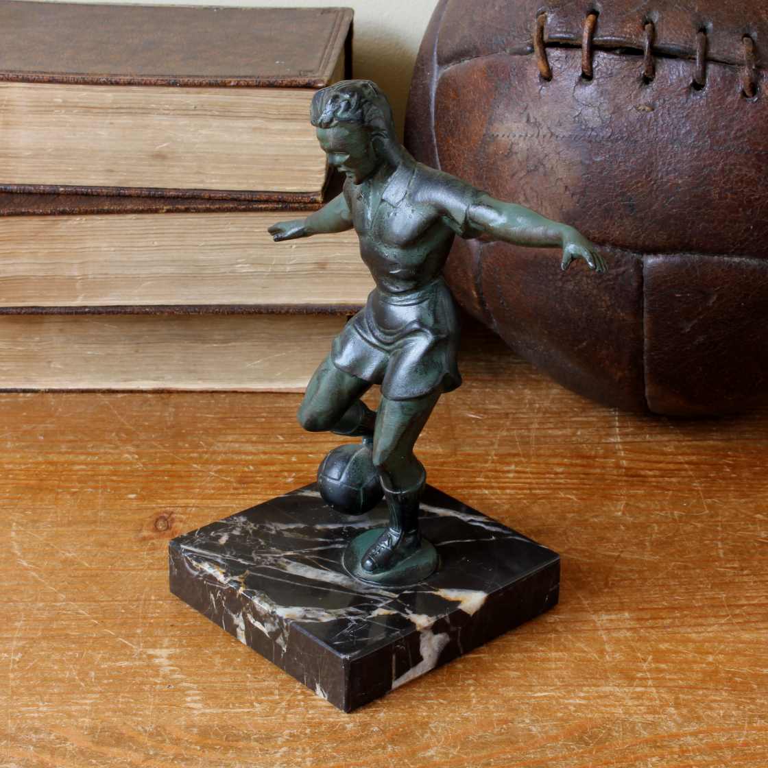 This nice vintage piece shows a footballer about to kick a football, is marked Gallot ed and would make a quality display piece for a football enthusiast.