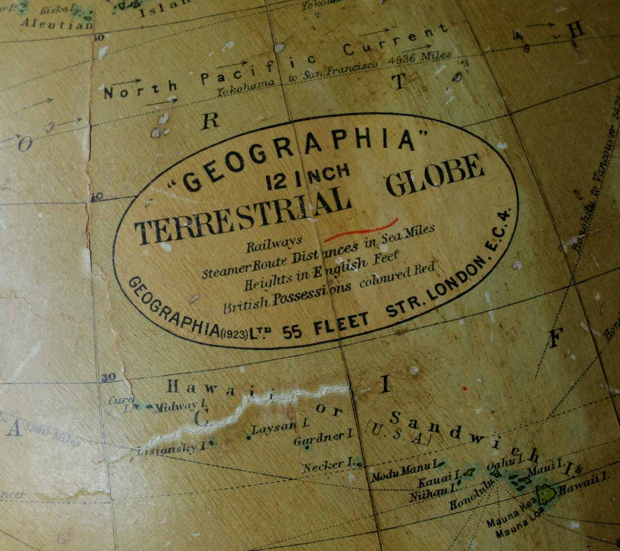Printed on the globe is: Geographia (1923) Ltd Globe. 55 Fleet Str. London EC4.