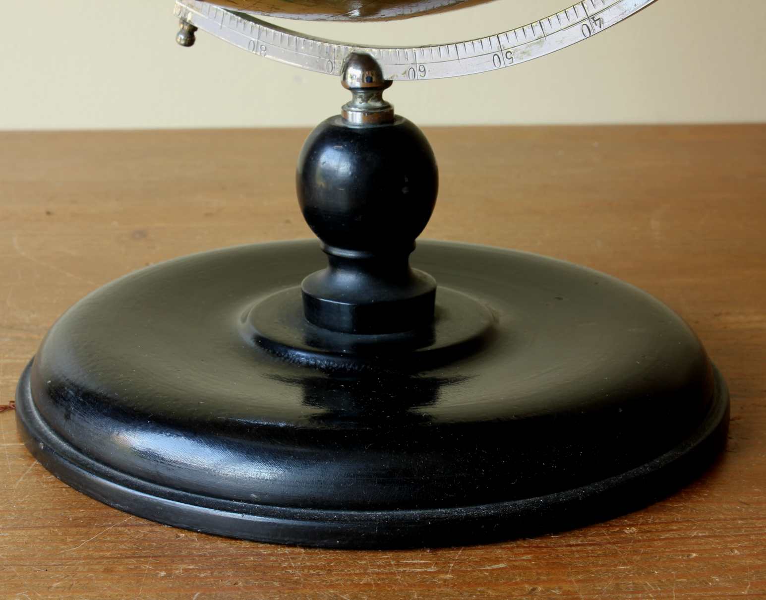 This handsome globe which sits on it's black painted wooden base is in nice decorative condition with some age related wear giving it a wonderful look.