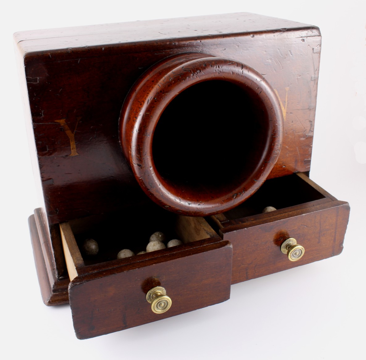 This fine mahogany ballot box which dates from the late 18th to early 19th century would have been used in a Gentleman's Club for secret voting on new members or other important issues.
