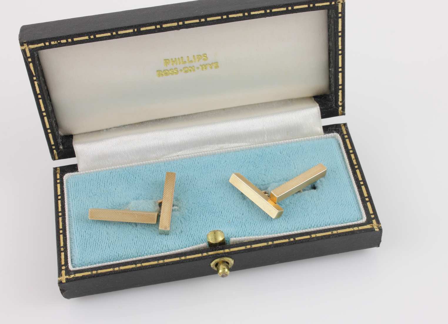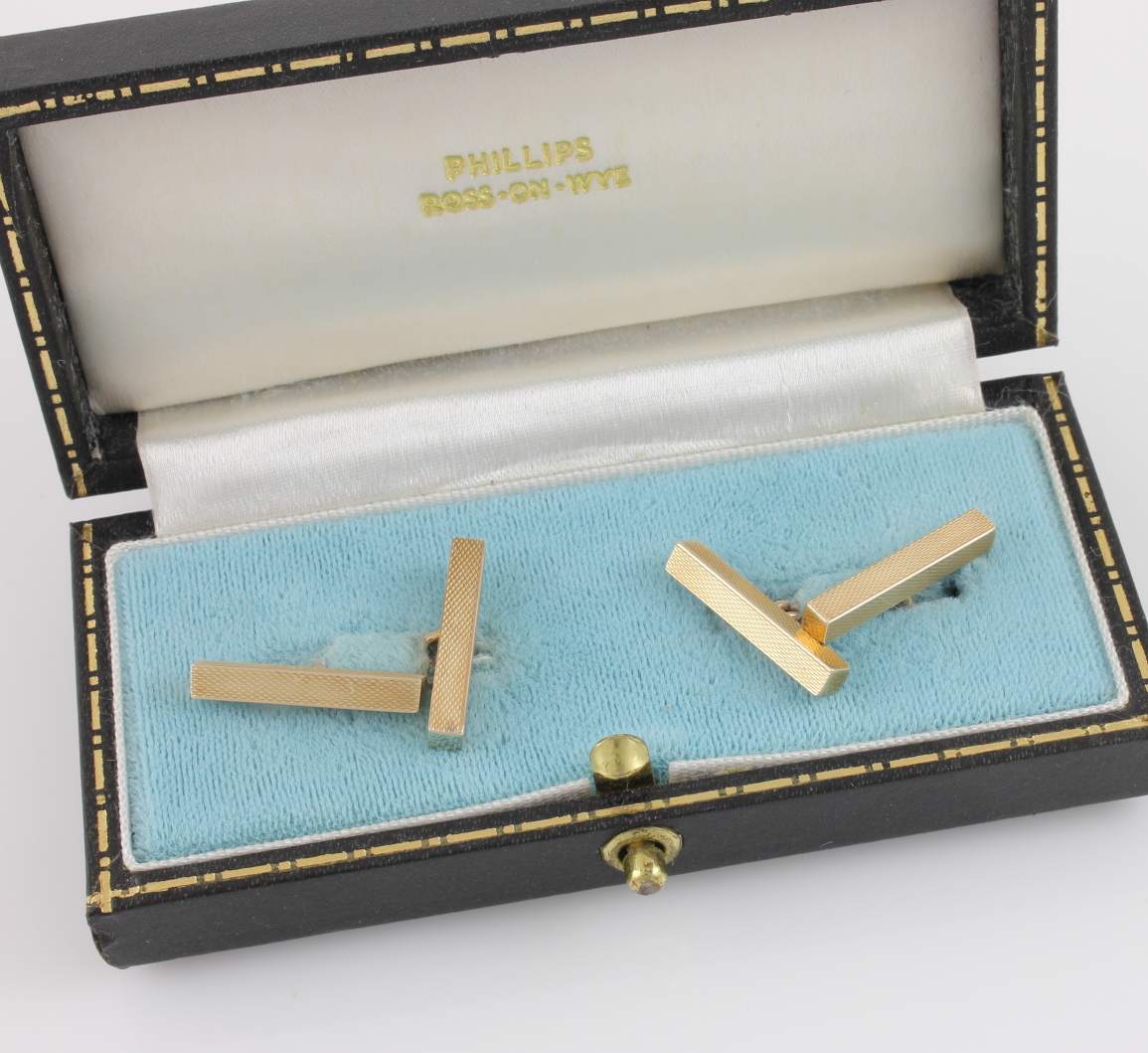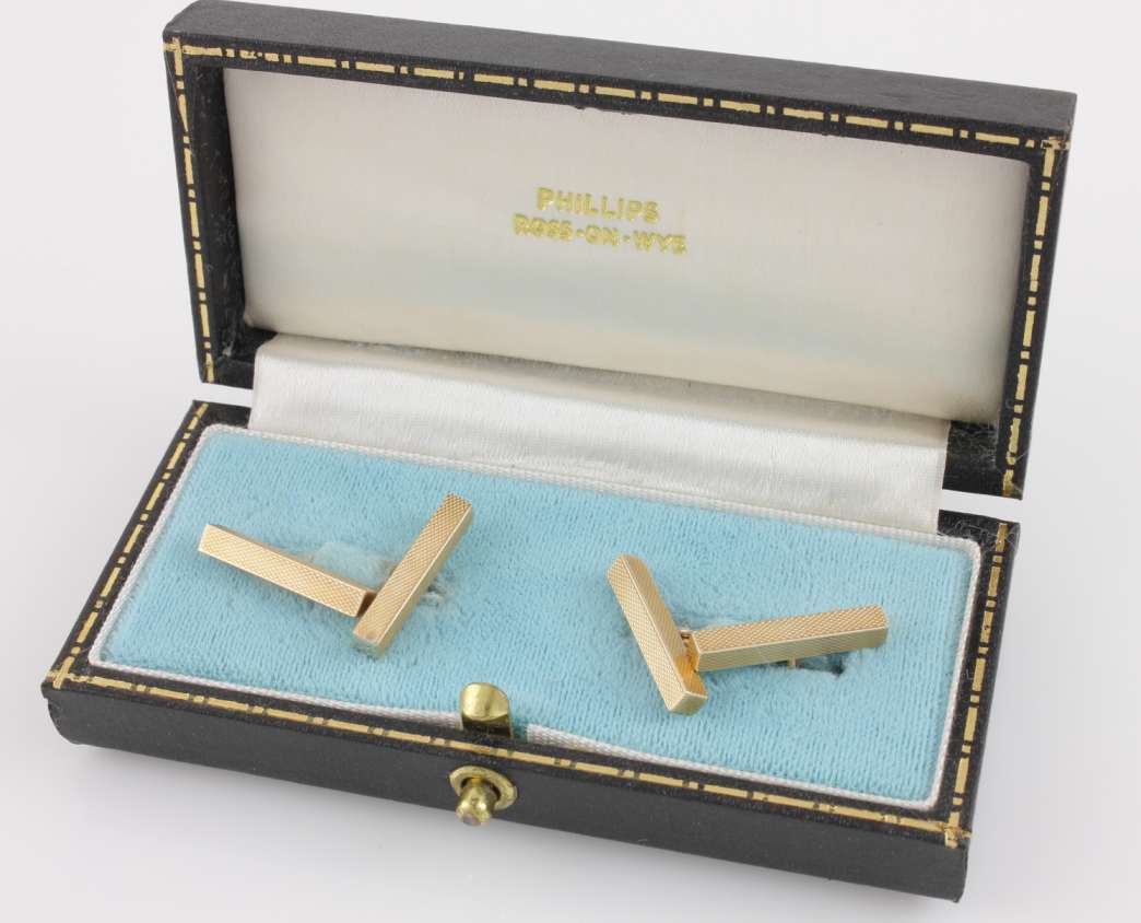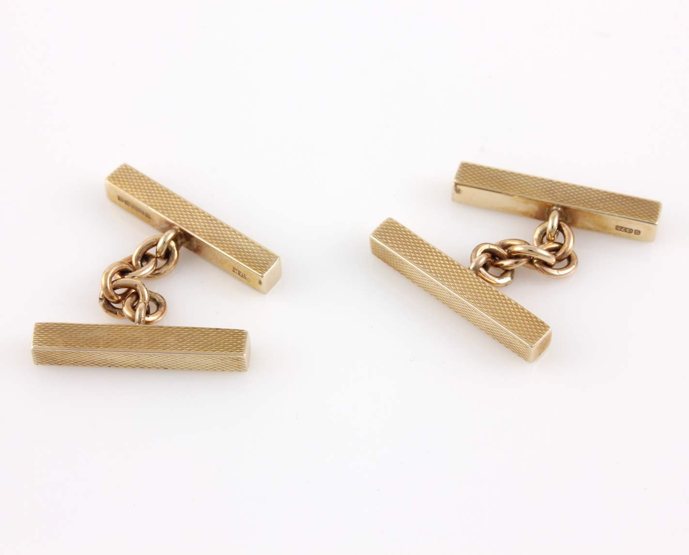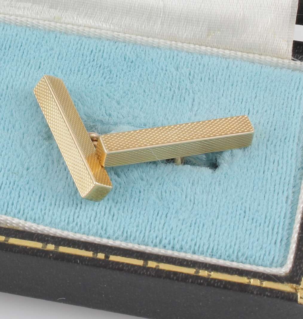 These handsome vintage cufflinks are made of 9ct yellow gold, have a stylish engine turned bar design, are fully hallmarked for 1969 and are made by SJ Rose and Son.