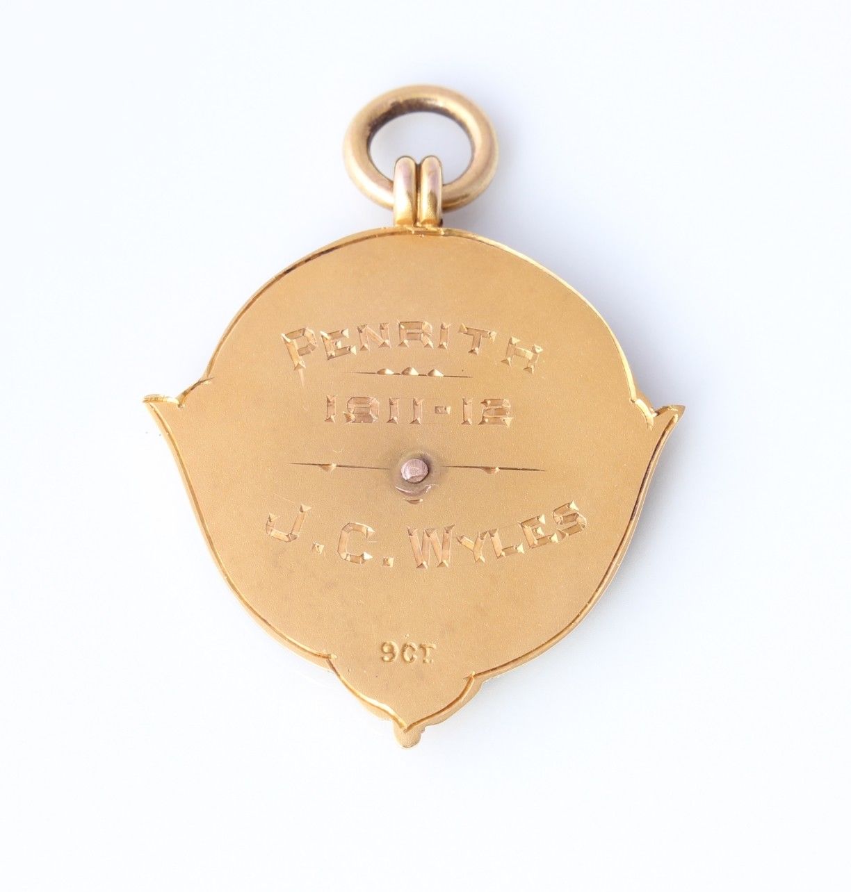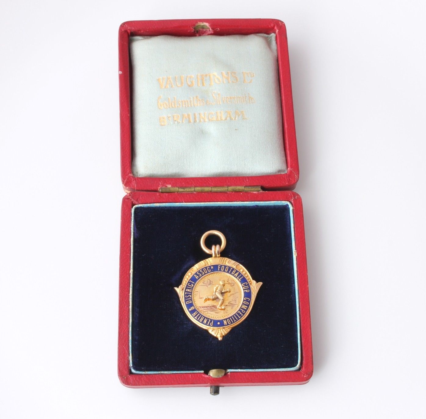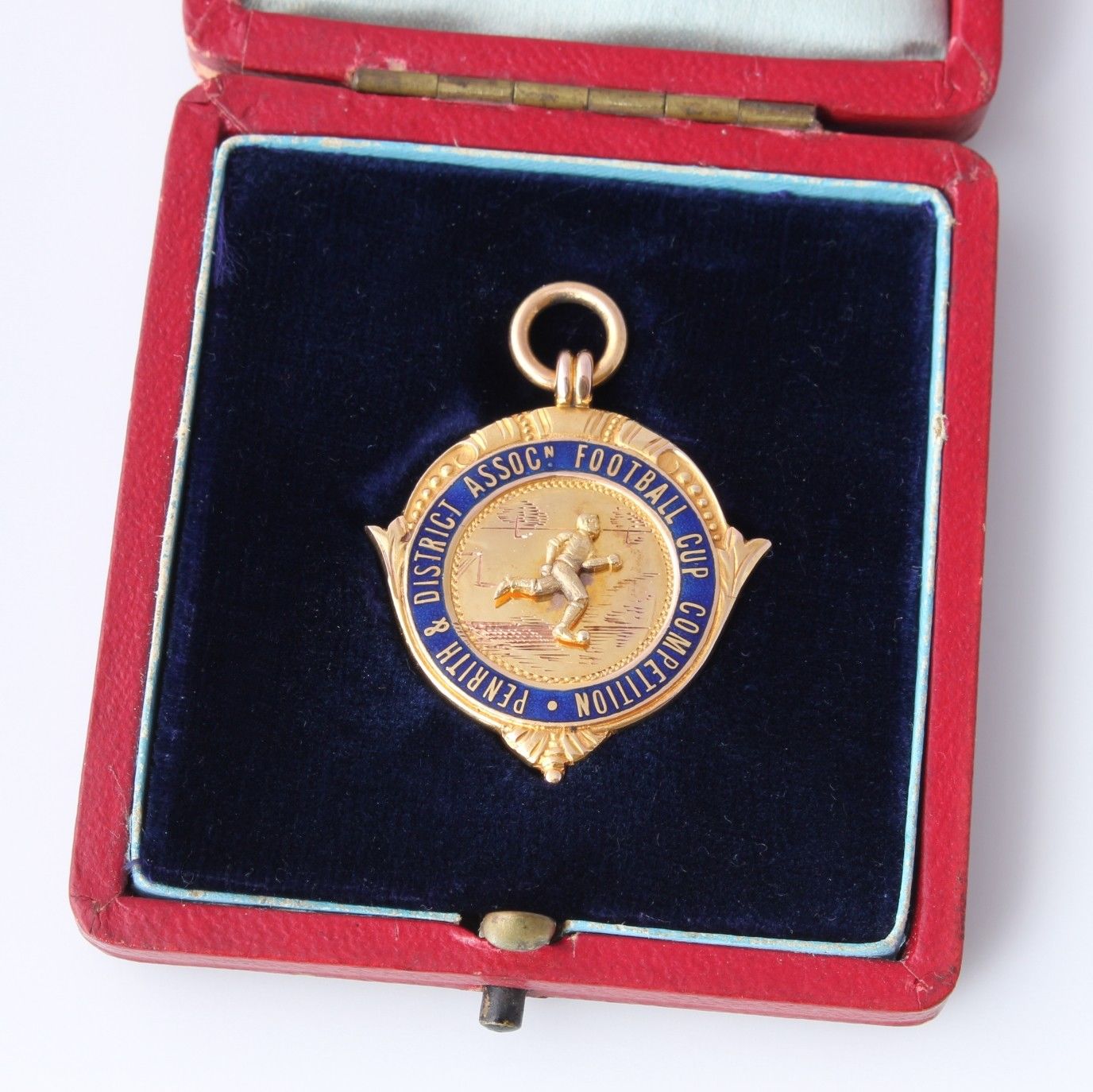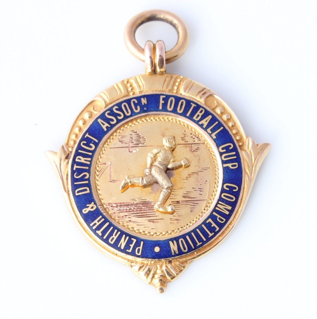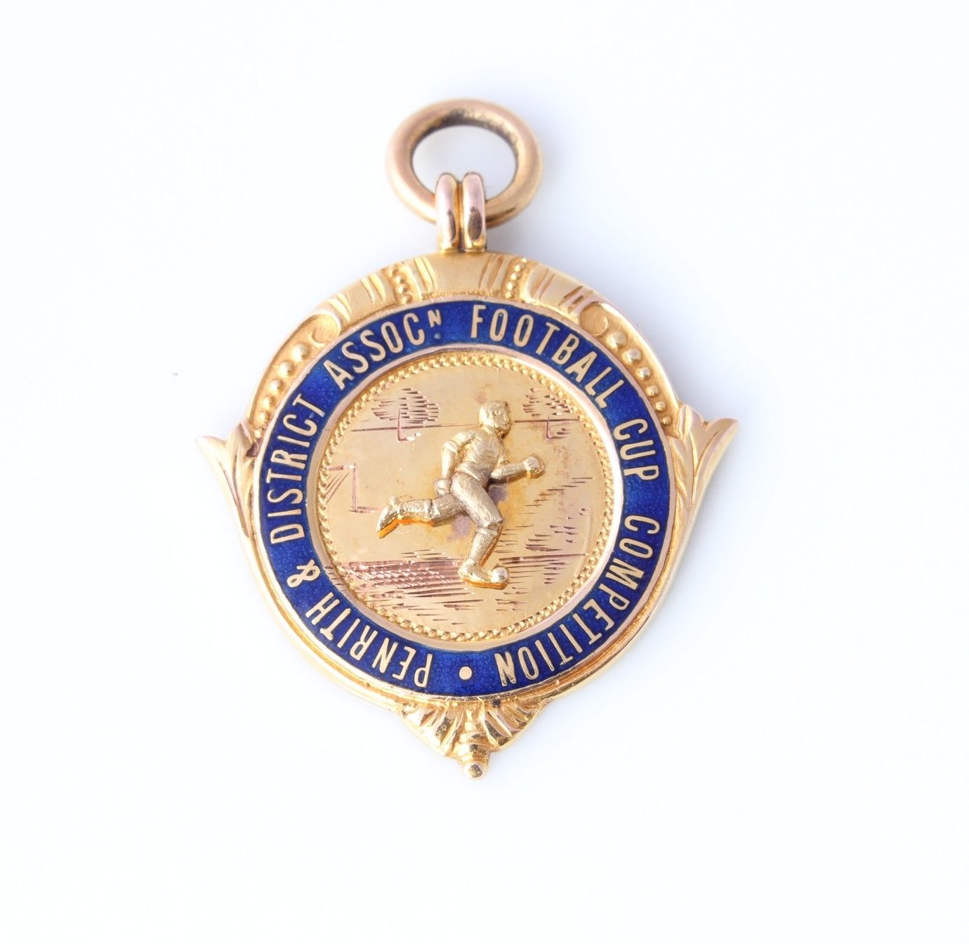 This interesting antique 9ct solid gold and enamel football medal was awarded to J.C.Wyles for the Penrith & District Association Football Cup 1911-1912.