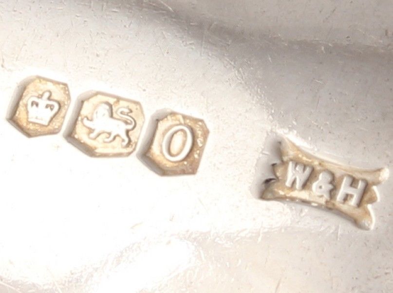 Hallmarked: Crown for Sheffield. Date letter O for 1931. Lion for Sterling silver. W&H for Walker & Hall.