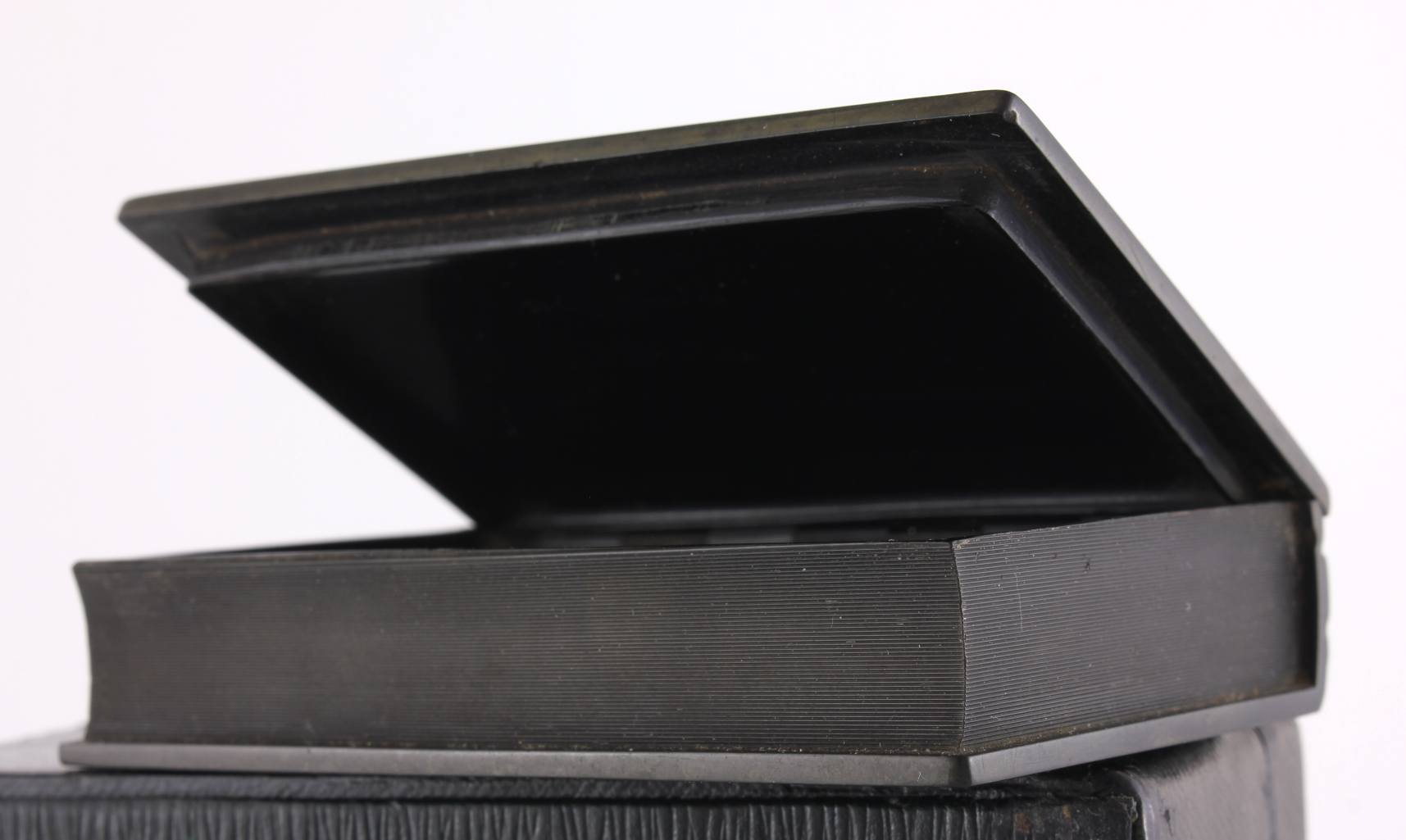 This beautiful French snuff box which is made of Caoutchouc (early vulcanized rubber) is made for Goodyear by De Lafertrille & Cie of Paris, France and dates from the mid 19th century.