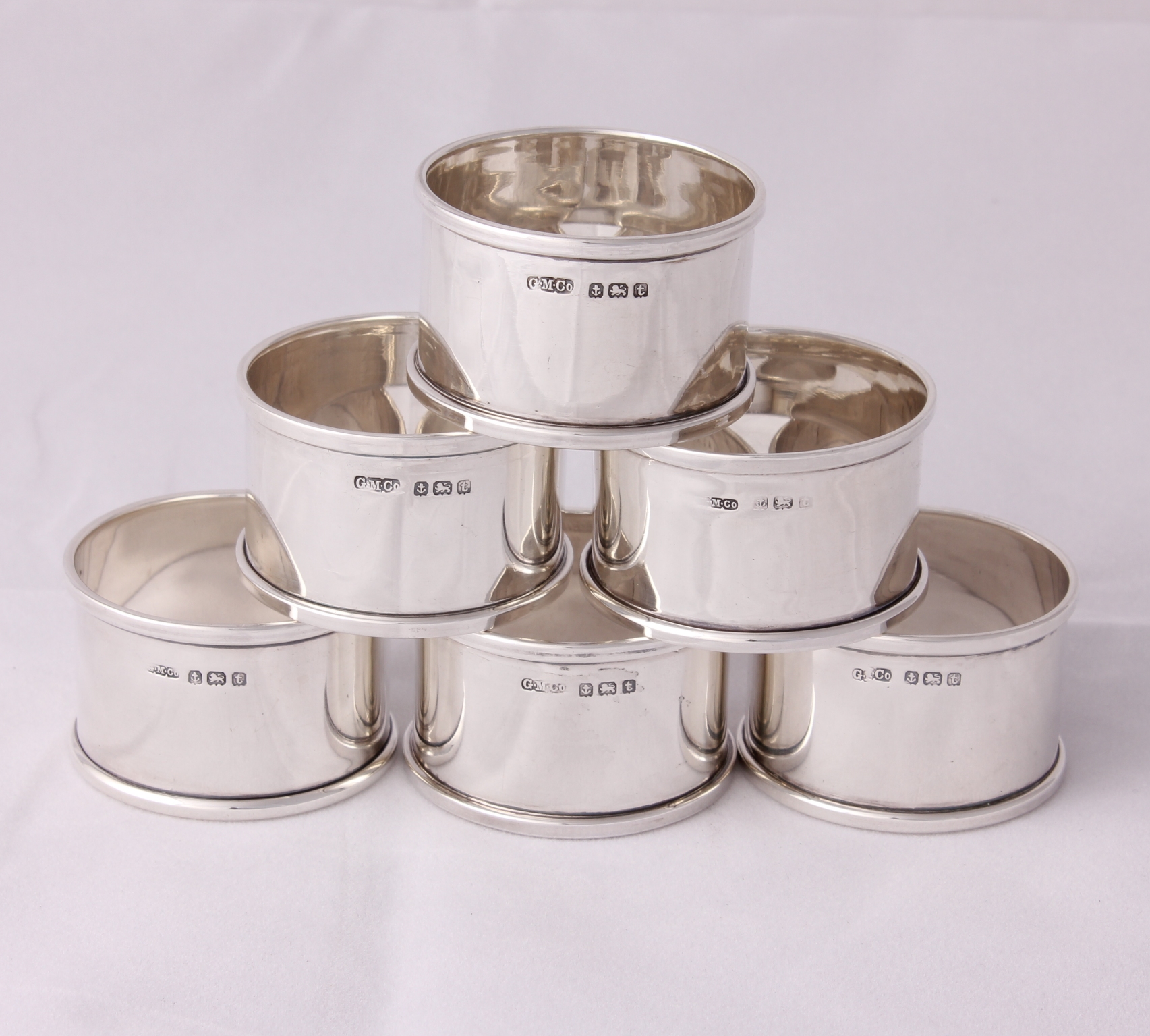This very stylish and high quality set of six antique napkin rings are made of solid silver and date from 1918.