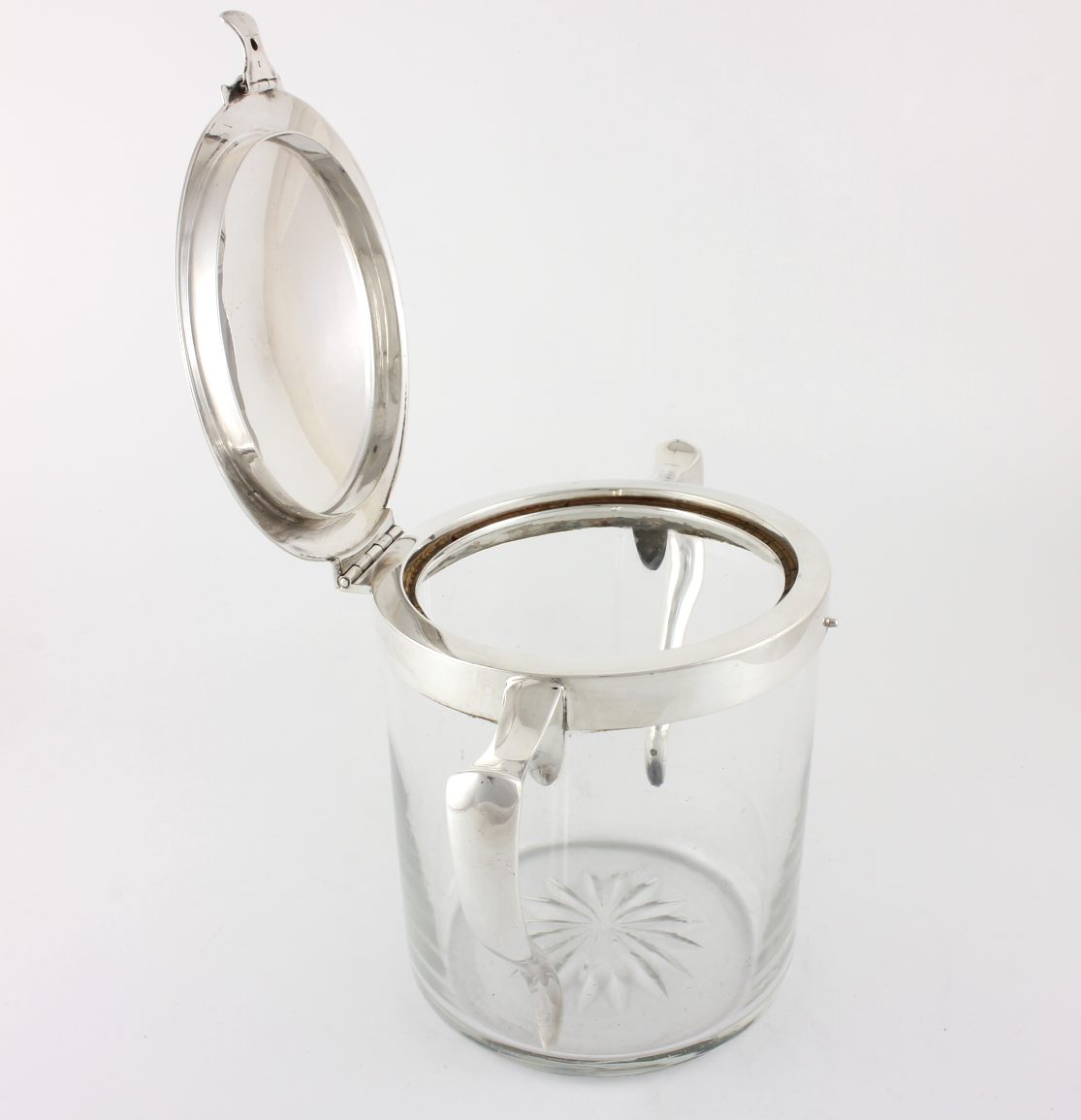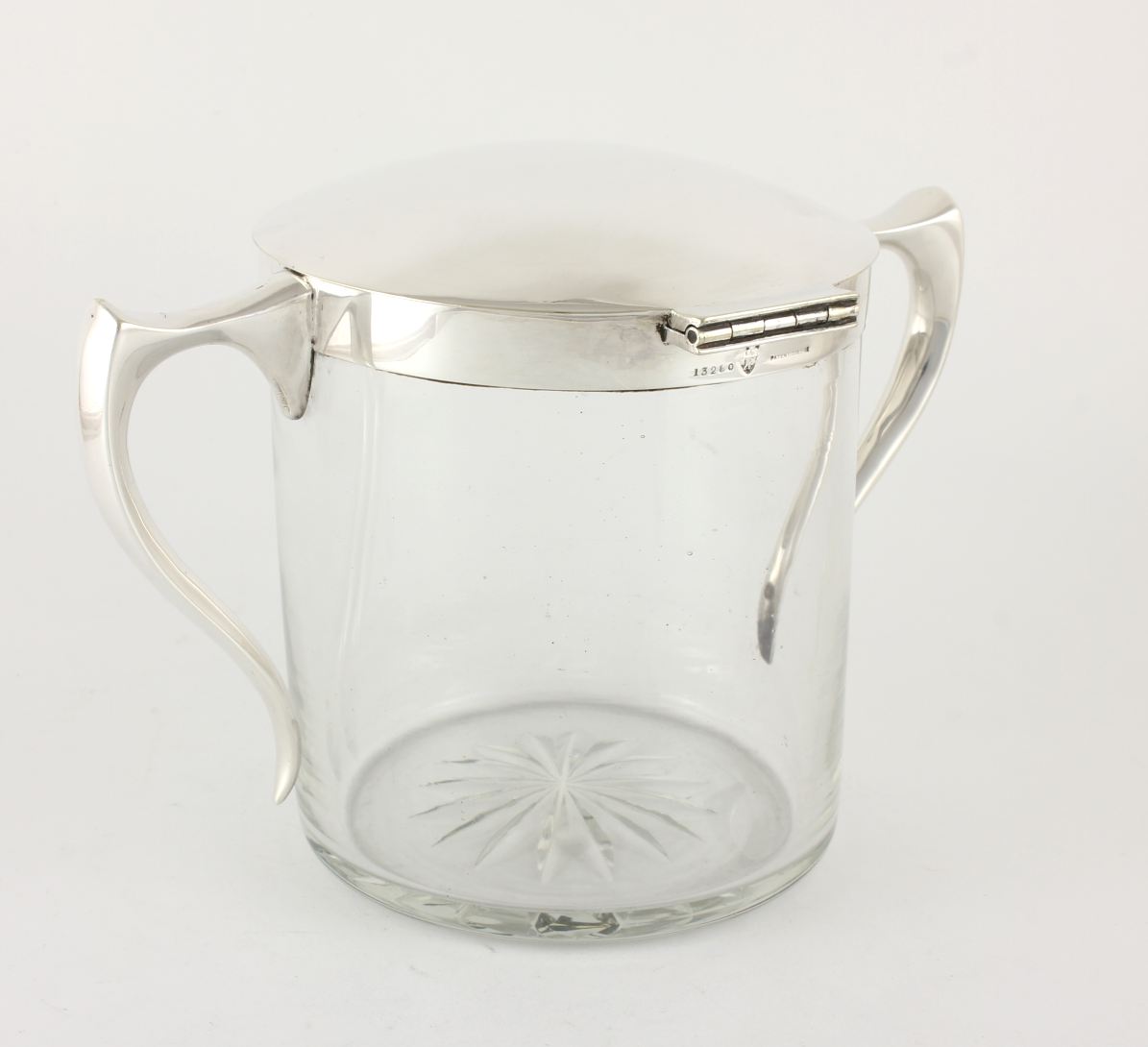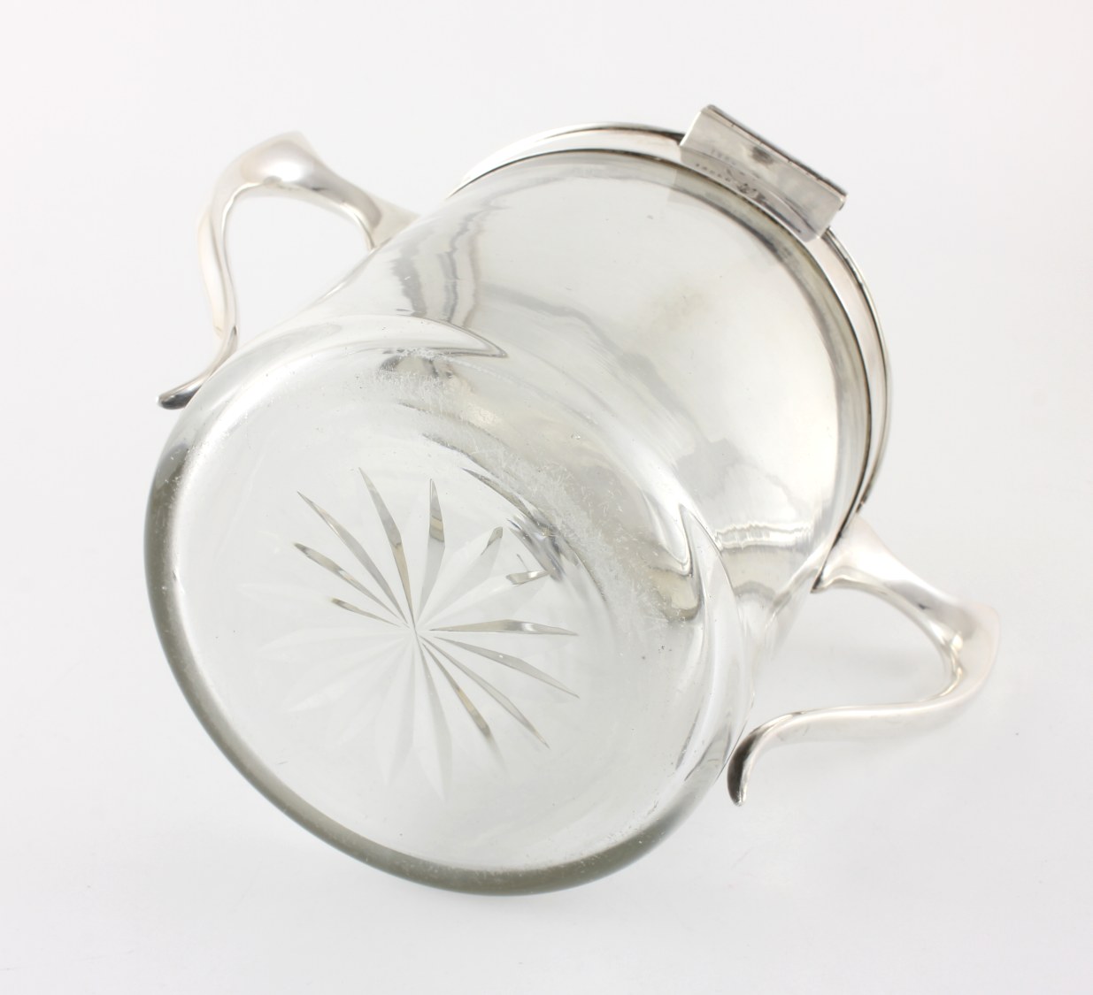 This antique jar is made by John Grinsell & Sons and marked with their details and patent number to the silver plated rim.