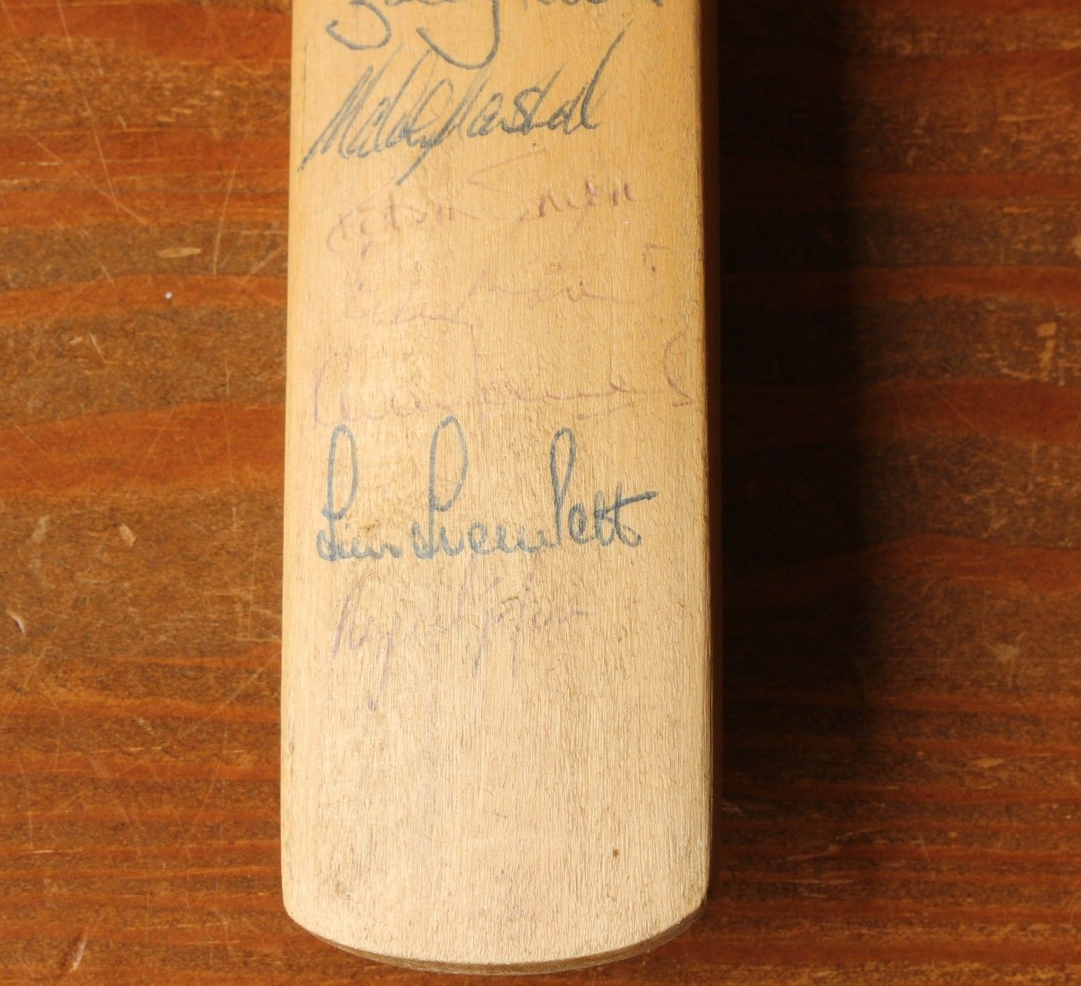 This mini bat features original signatures including Mark Nicholas, Bobby Parks, Tim Tremlett and Paul-Jan Bakker plus others.