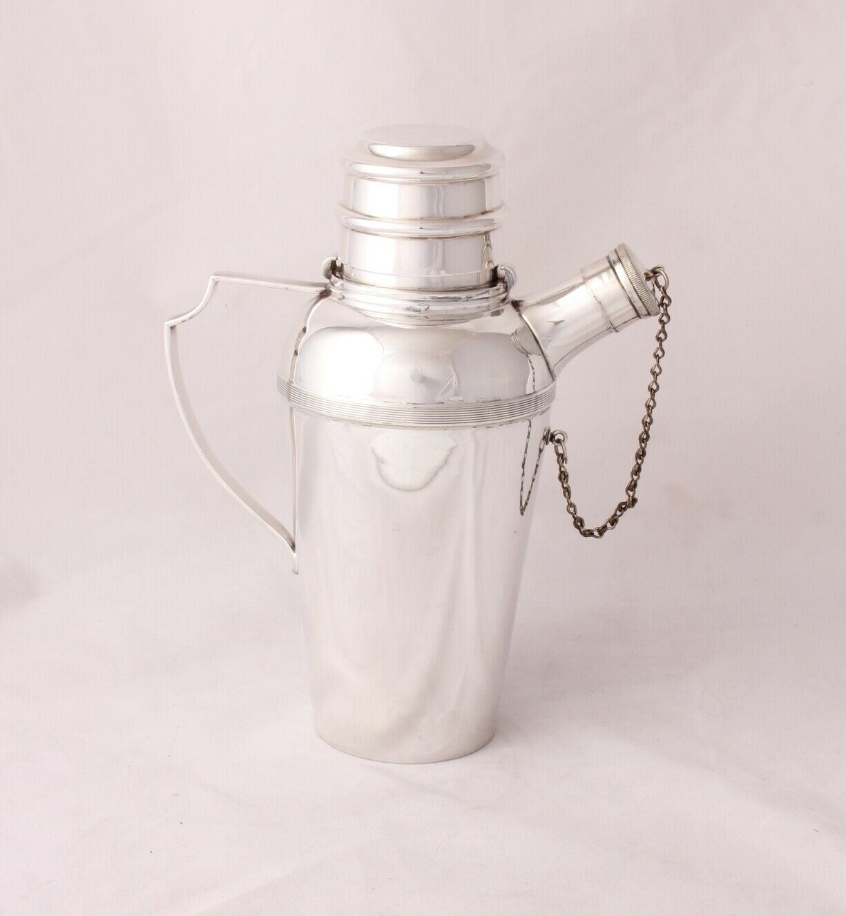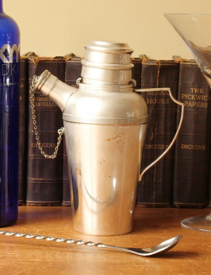 This high quality shaker which has a classic Art Deco design with stylish handle and chain linked stopper has a clean interior and would make a great usable bar accessory for your garden party or get together.