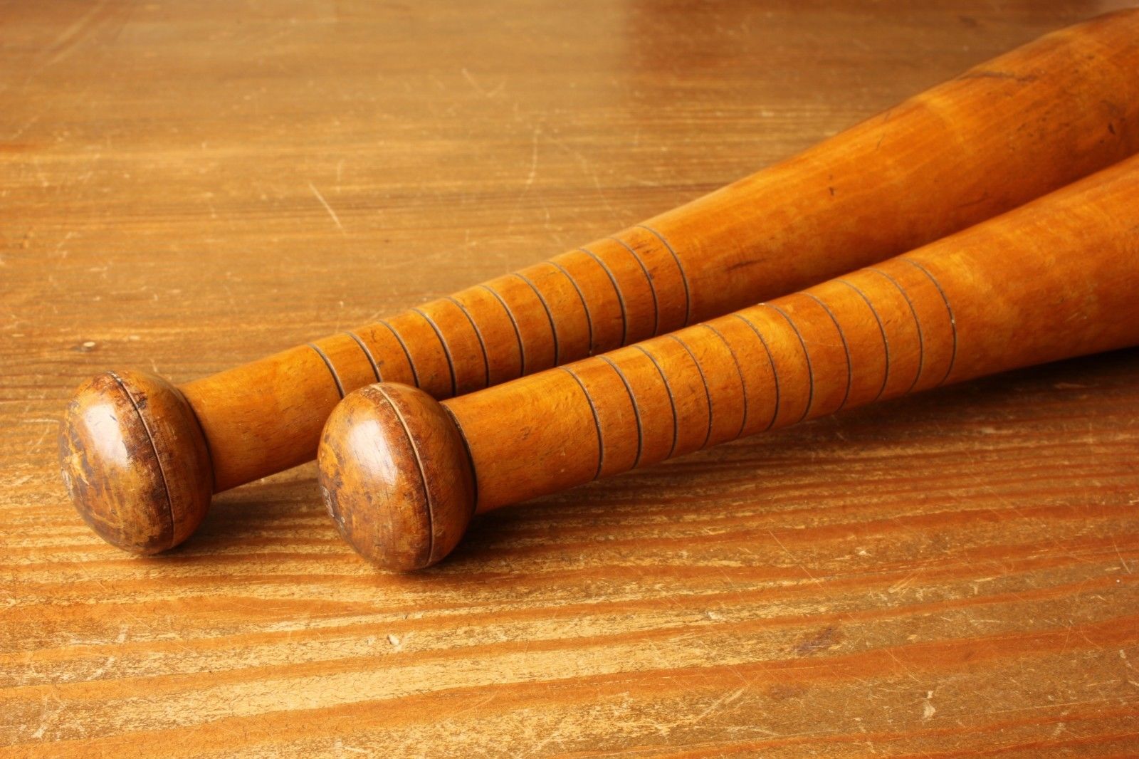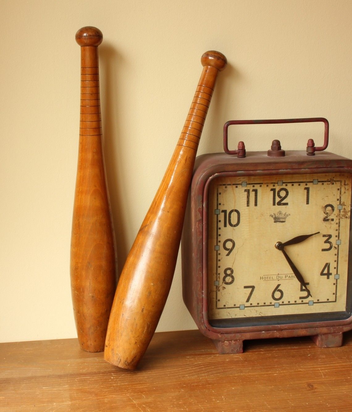These unusual items of vintage sporting equipment have a nice rich patina and would make fantastic decorative home or gym display items and super props.