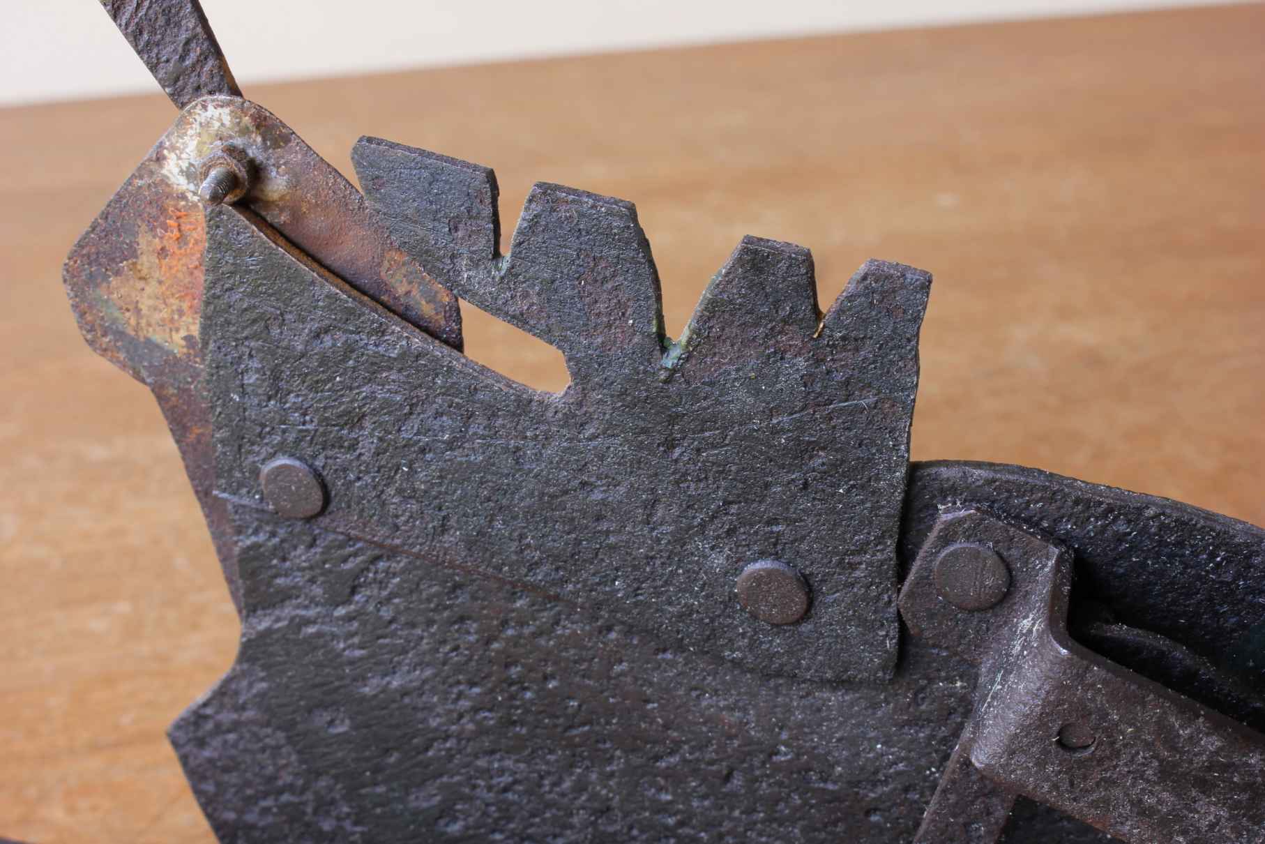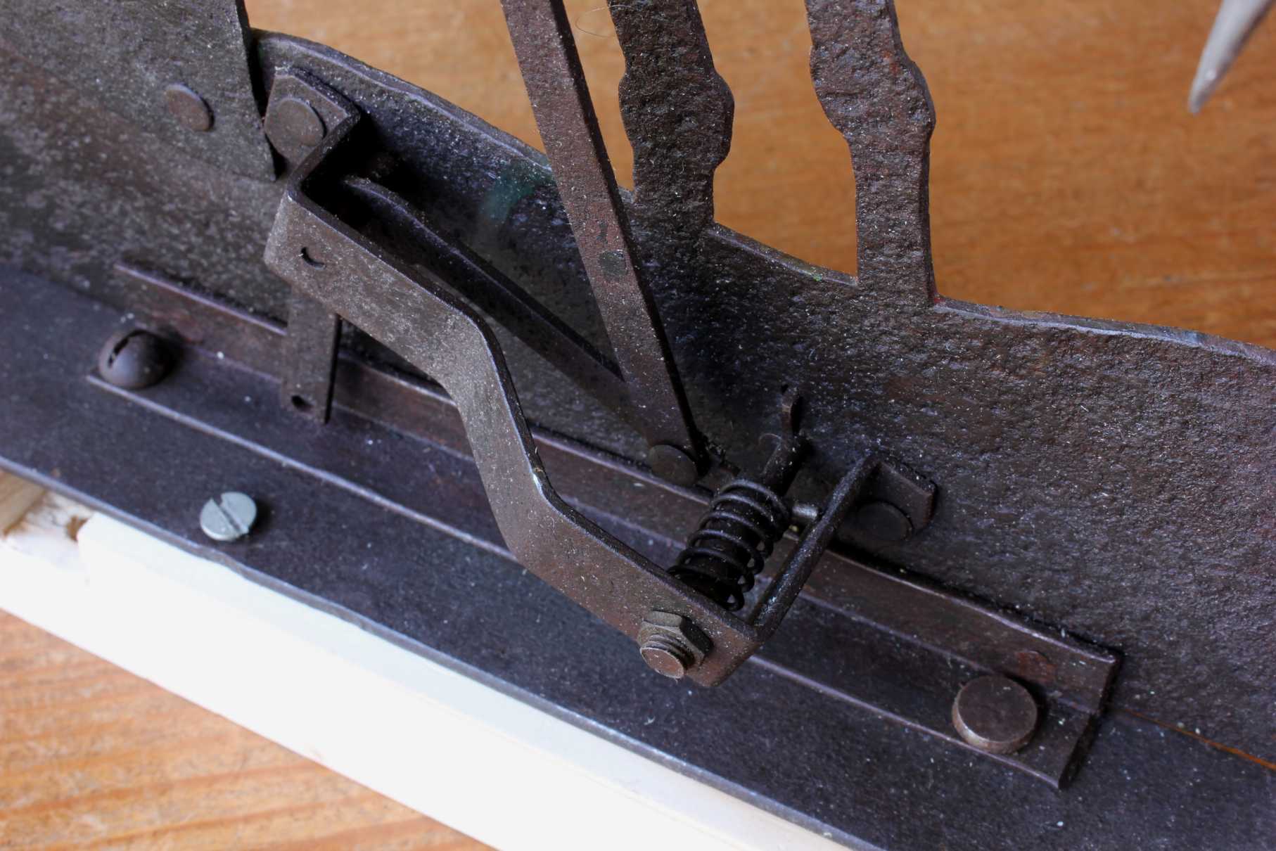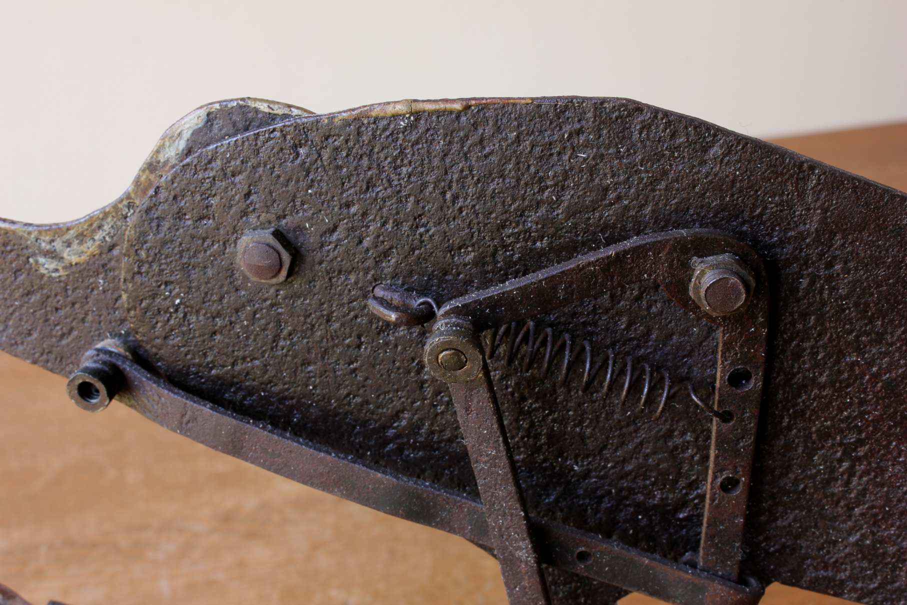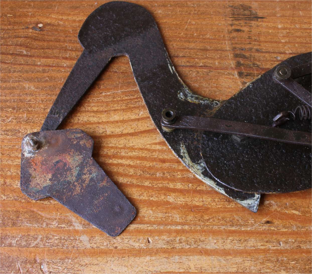 This fascinating automated target would have been part of a fairground shooting game where carnival goers would shoot at the bird and when the target plate was hit the heron would spring upwards to pull the object out of the water with it swinging from it's beak.