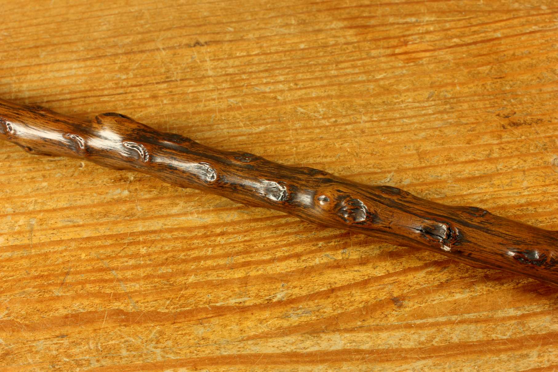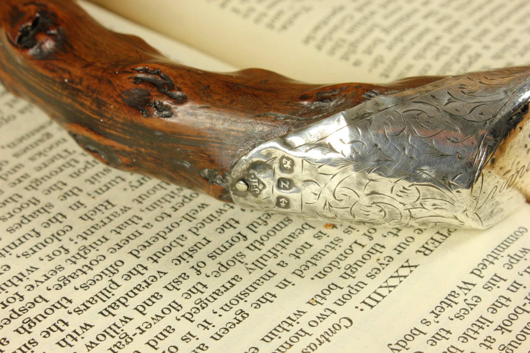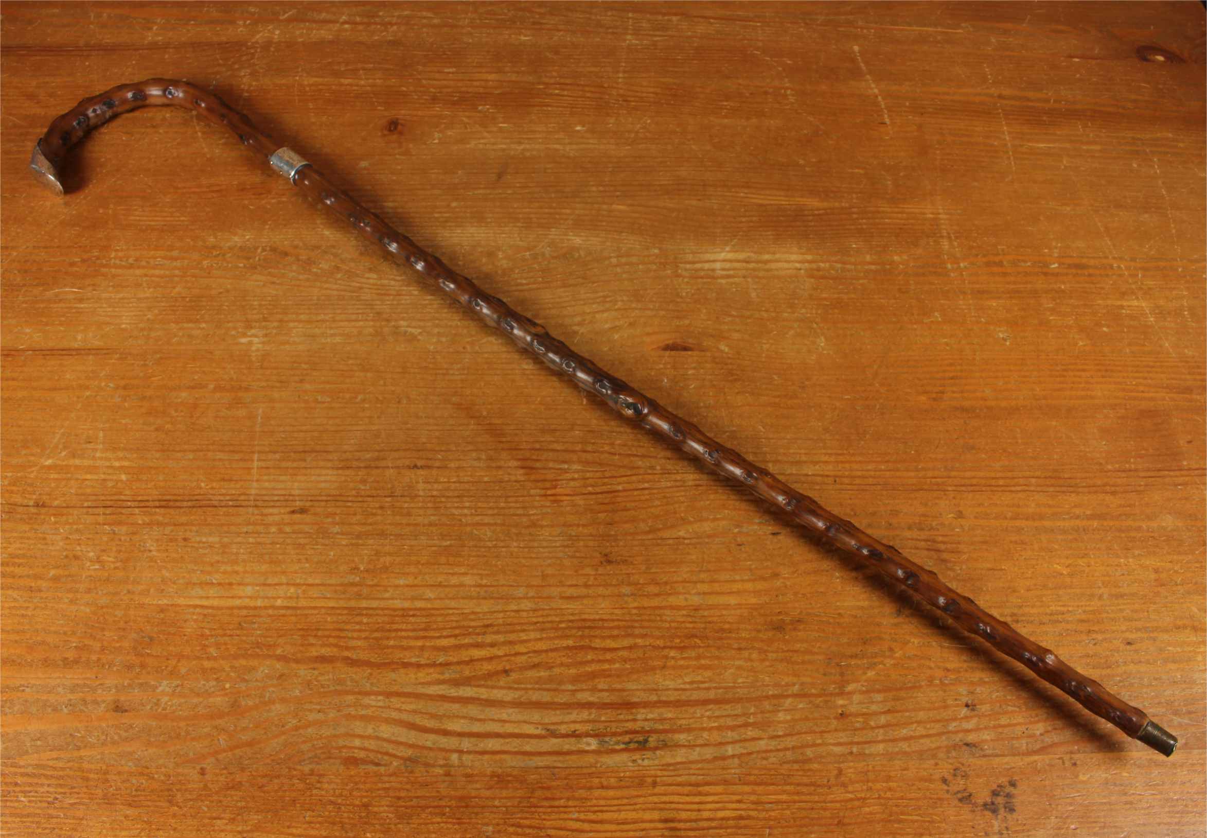 Condition: Very good usable antique condition with light signs of use in keeping with age. Some scratches and bruises to silver and general wear. There is a natural curve to the stick being made of thorn wood. Please see pictures.