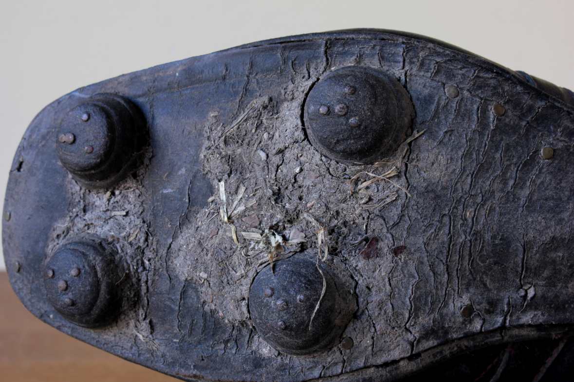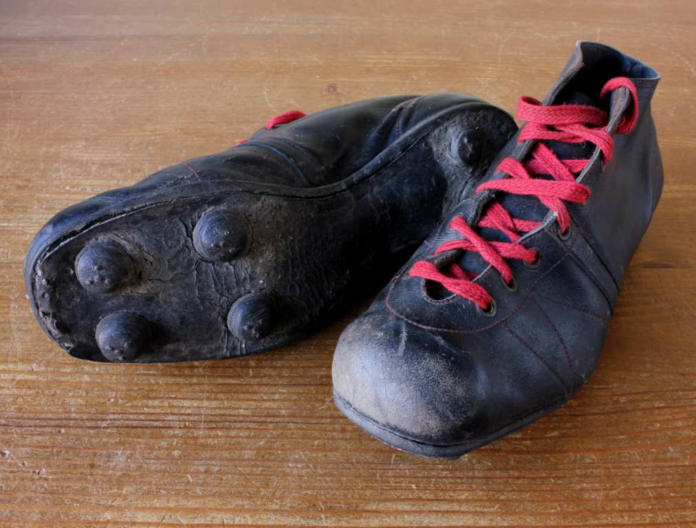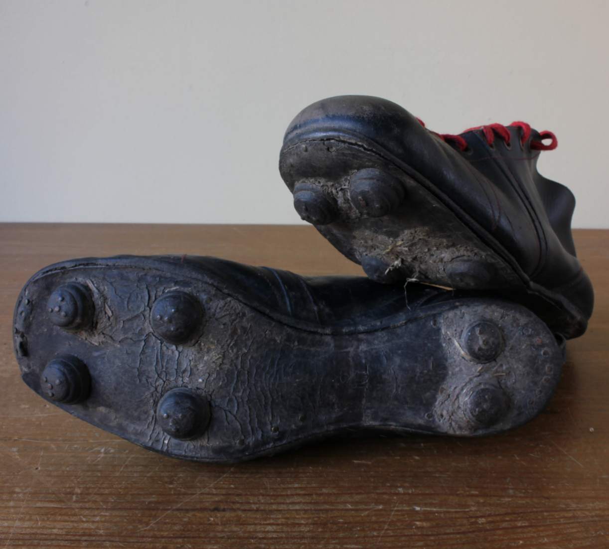 This great looking pair of football boots which date from the 1950's are made of leather and have leather soles with nailed on leather studs.