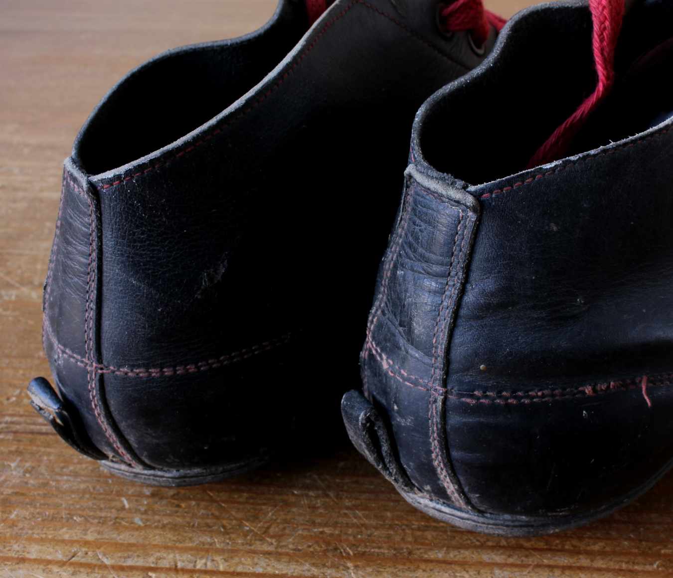 These original vintage boots feature the Hungaria logo enbossed to the side, red stitching, red laces and have lots of wonderful wear.