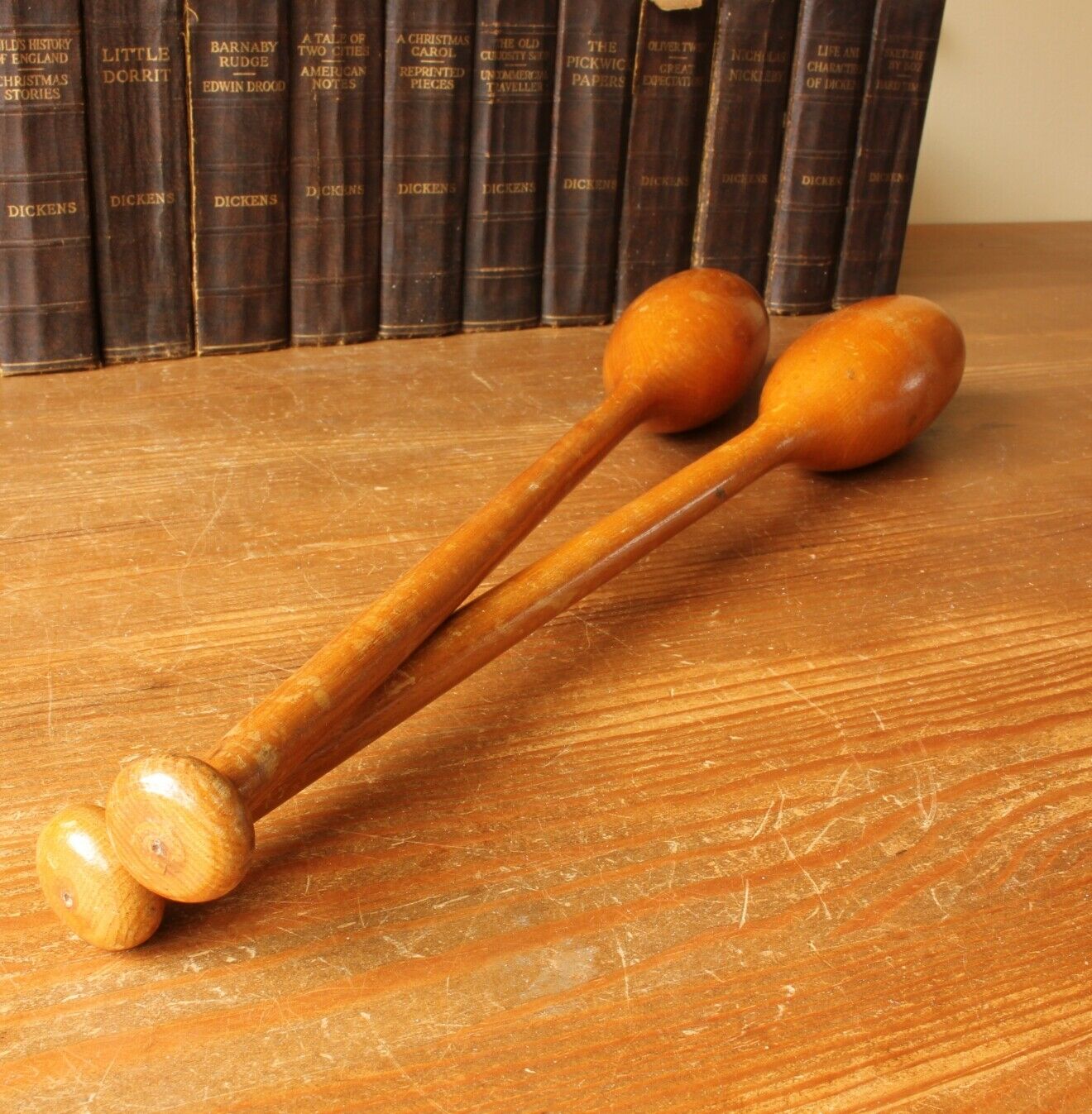 This handsome pair of wooden Indian clubs or meels which date from the early 20th century are very attractive and are approx 46 cm - 18" in length.