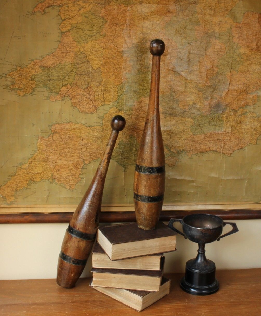 This stunning pair of antique hand made wooden Indian clubs or exercise meels which date from c1900 weigh approx 800 grams each and are approx 47.5 cm - 18 1/2" in length.