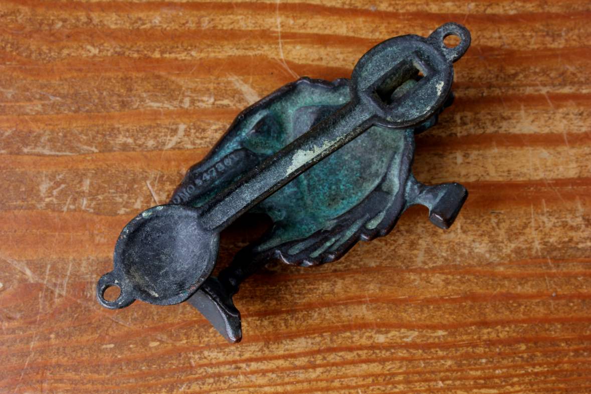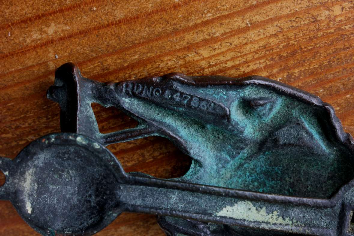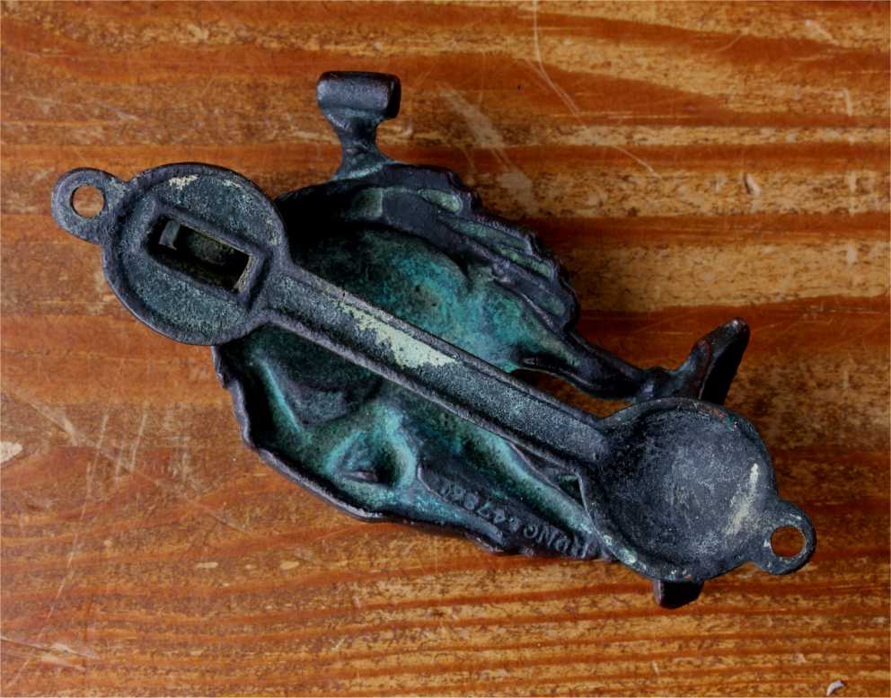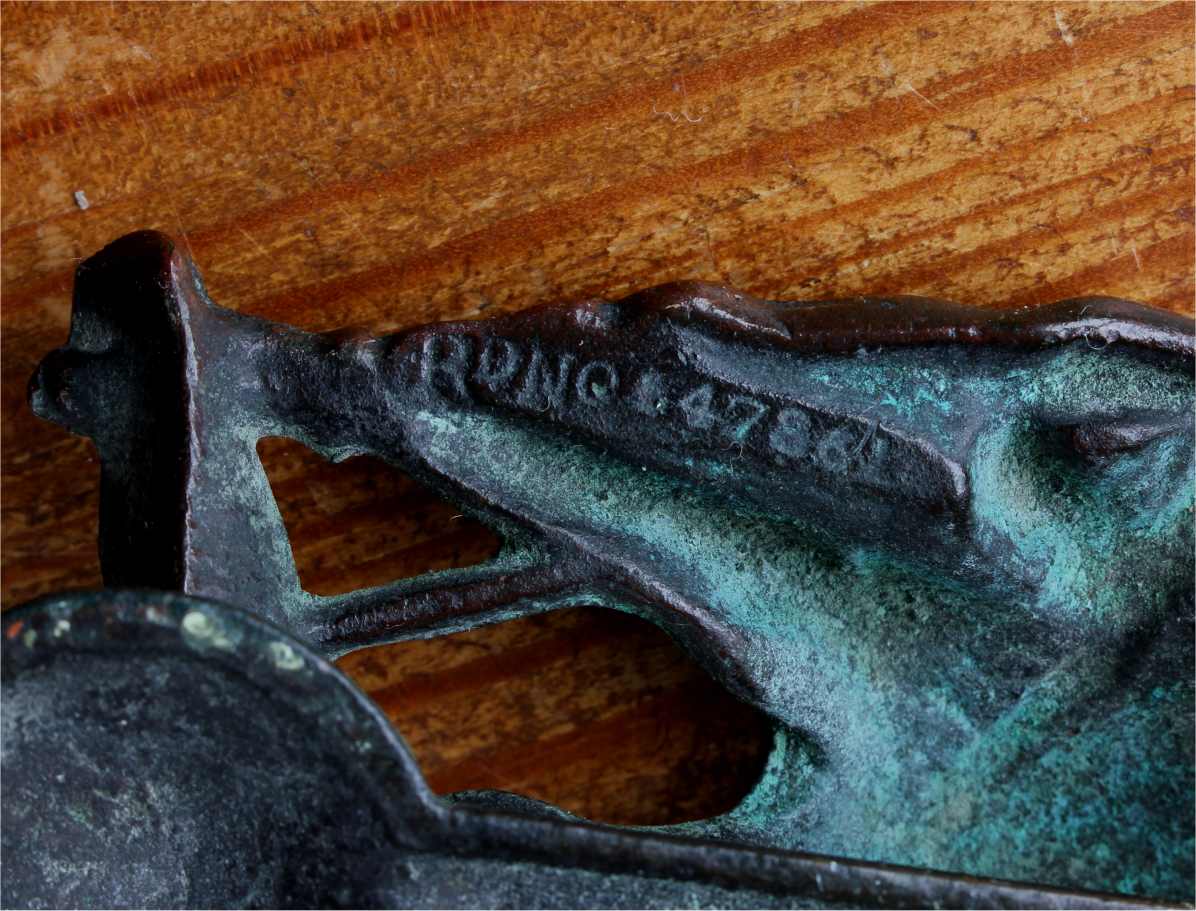 This stylish piece of door furniture has a tactile feel with a beautiful dark patina and is marked with it's registered design number of 547861 which dates to 1911.