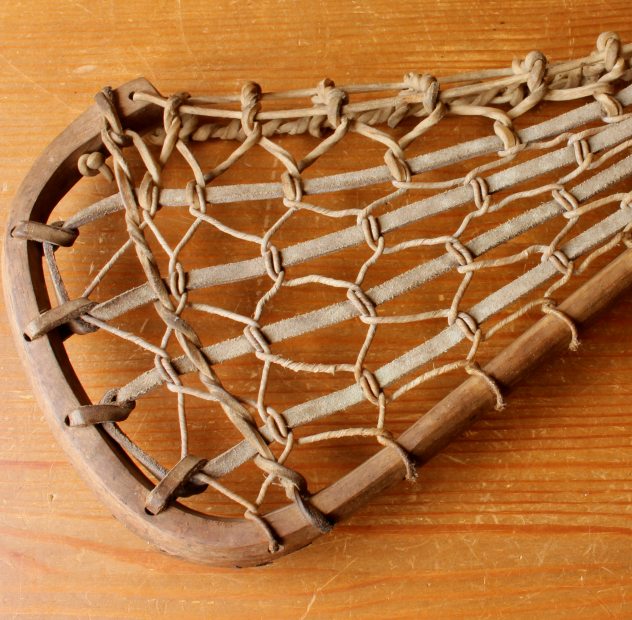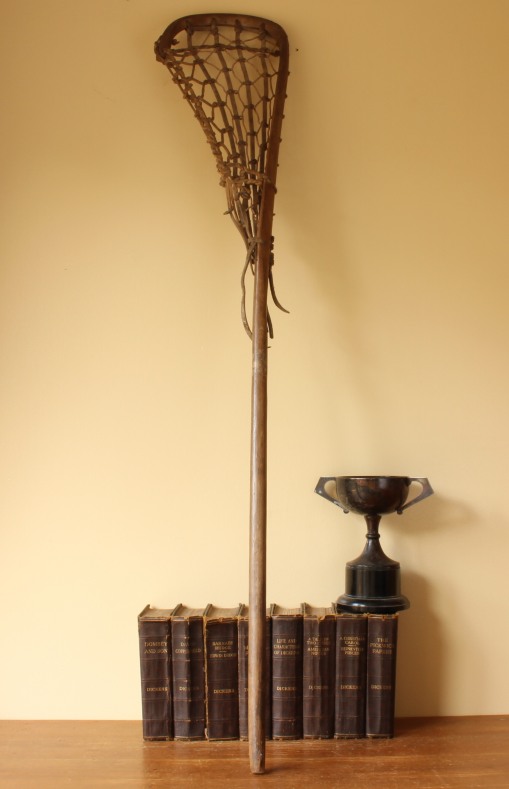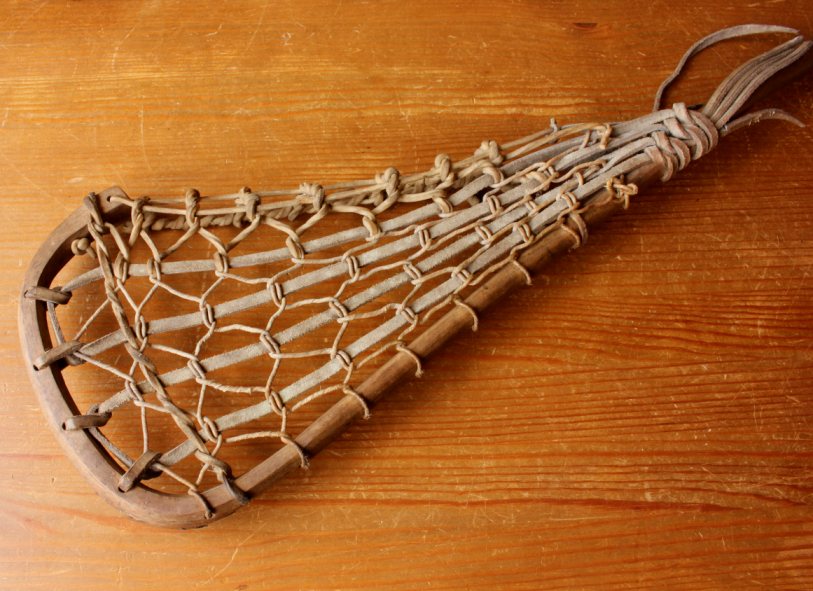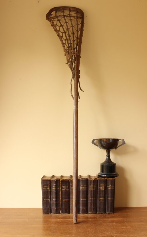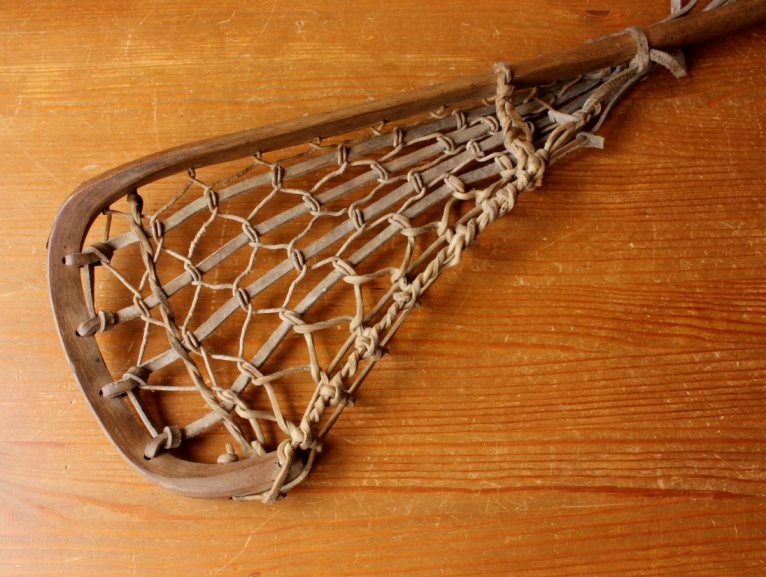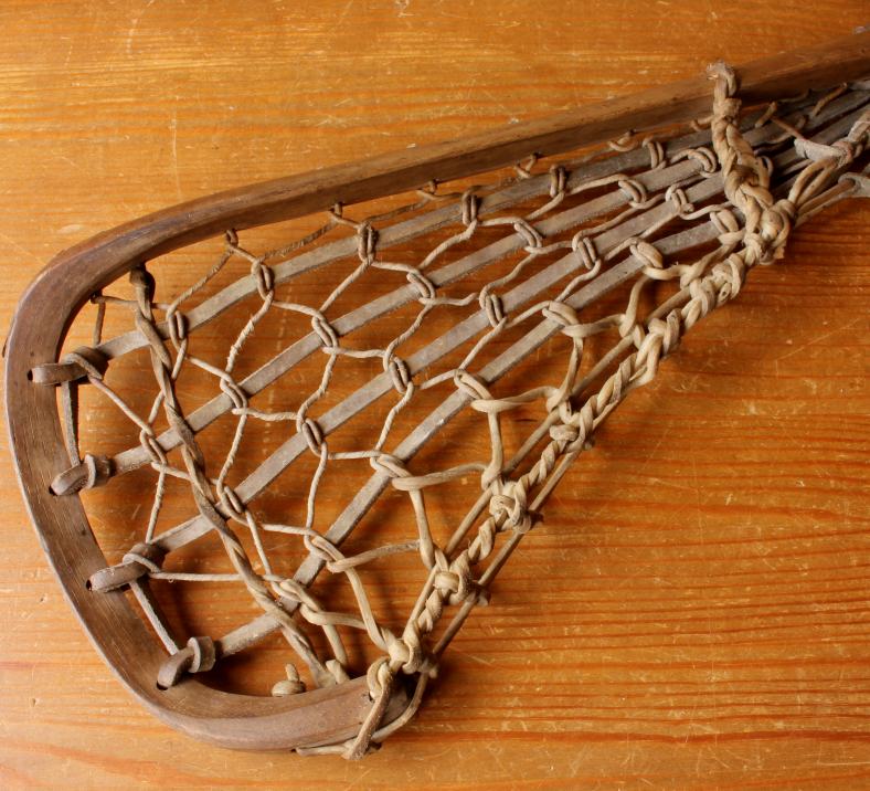 This handsome vintage / antique Lacrosse stick which has a hickory handle, leather and gut cord net measures 111 cm - 43 3/4 inches in length.