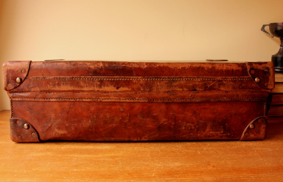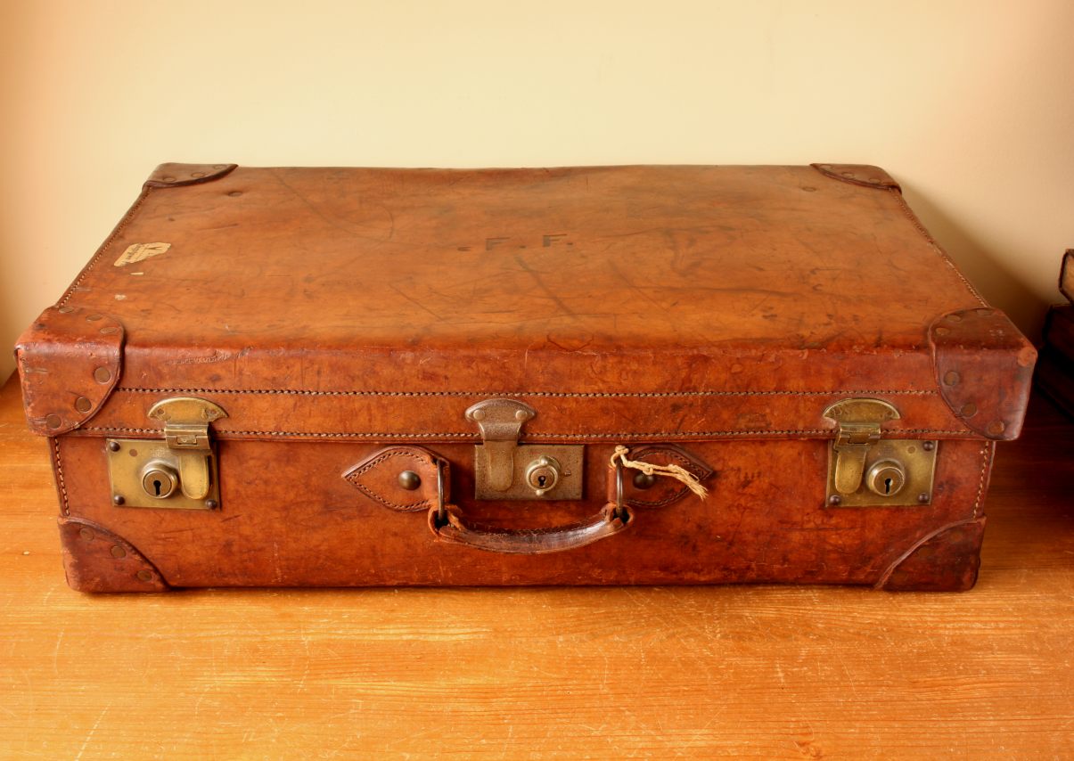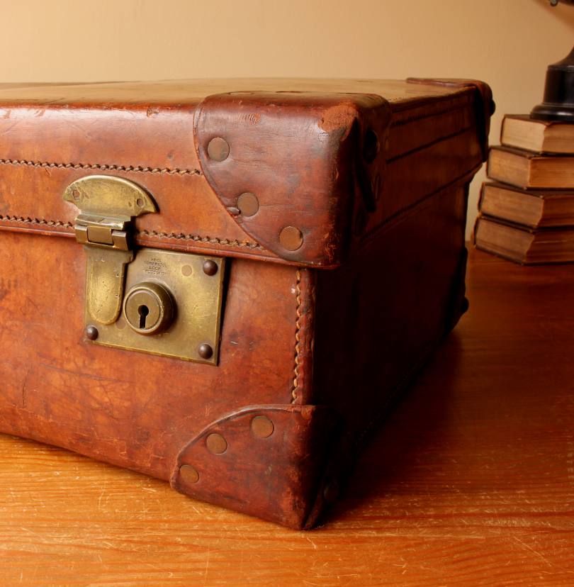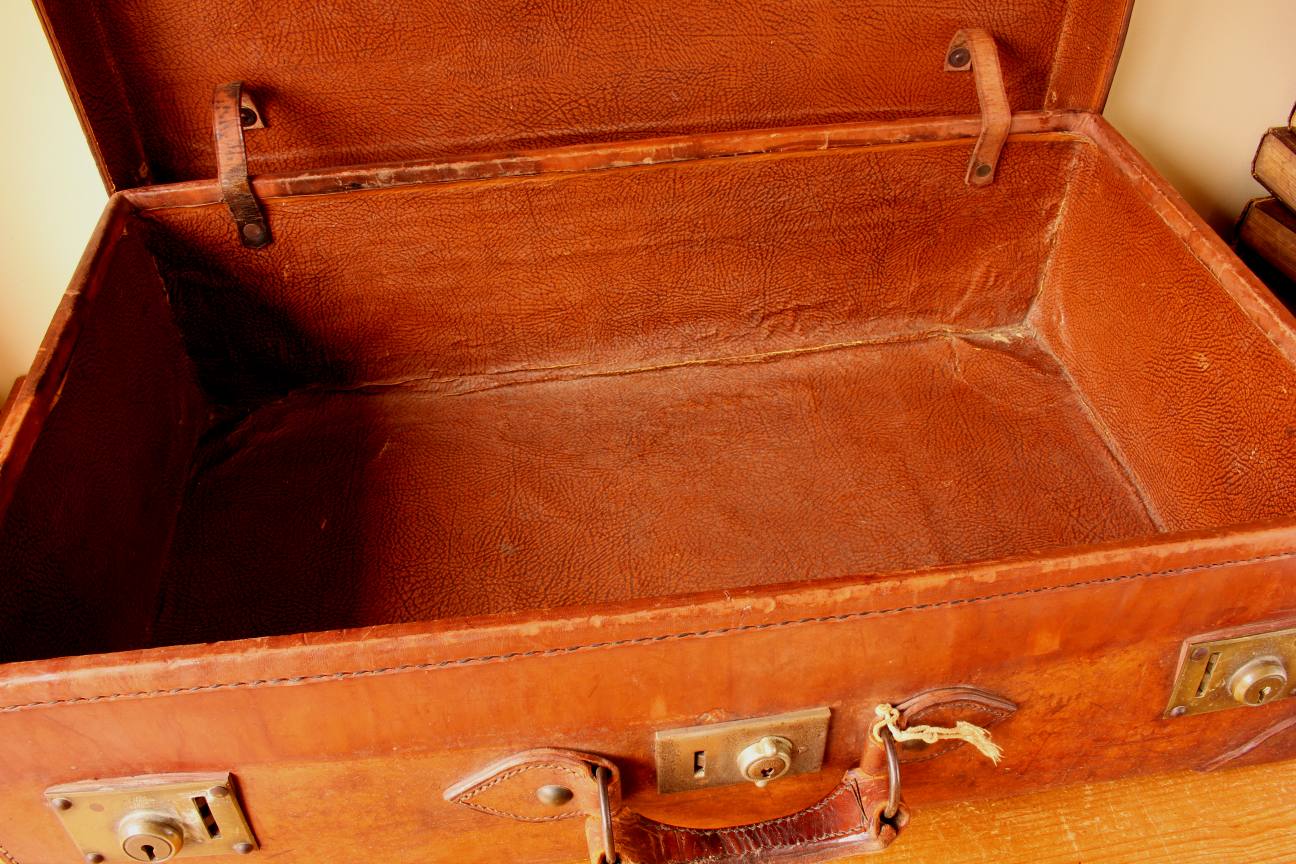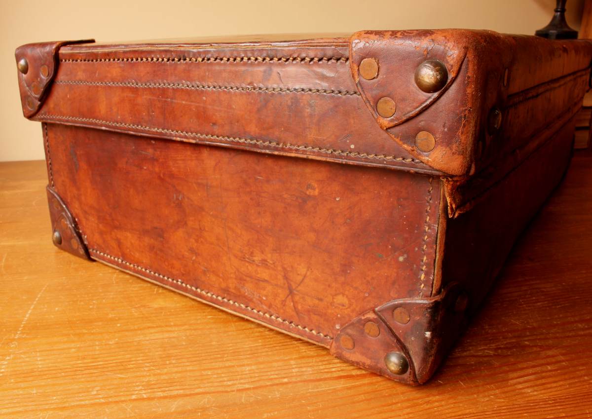 Condition: Beautiful used antique condition with a wonderful patina and warm rich colour. Age related wear with scuffs, scrapes and light cracking. The case is very sound and usable. Good stitching, strong handle and corners. All clasps work but we do not have the key. Please see pictures.
