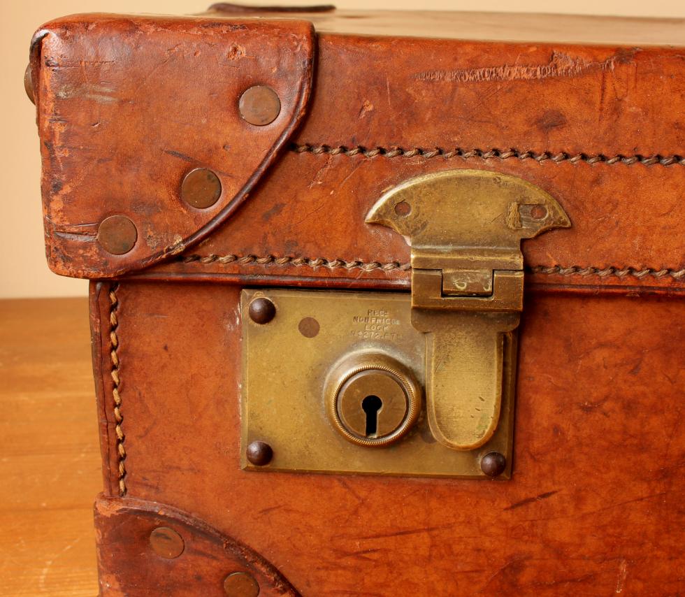 This case has 2 brass locks/clasps and also a central metal lock has been added at some time. All work well but we do not have the keys.