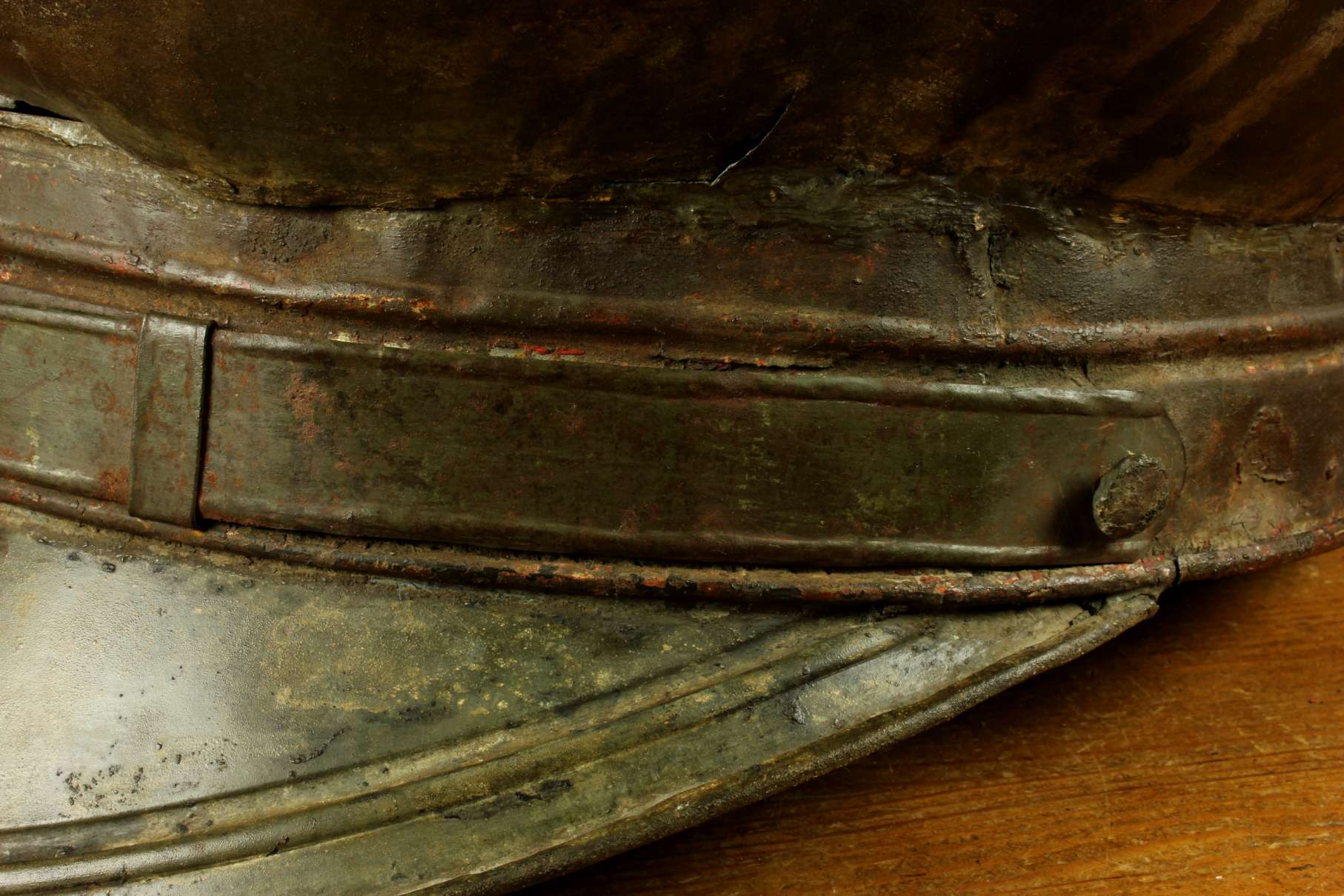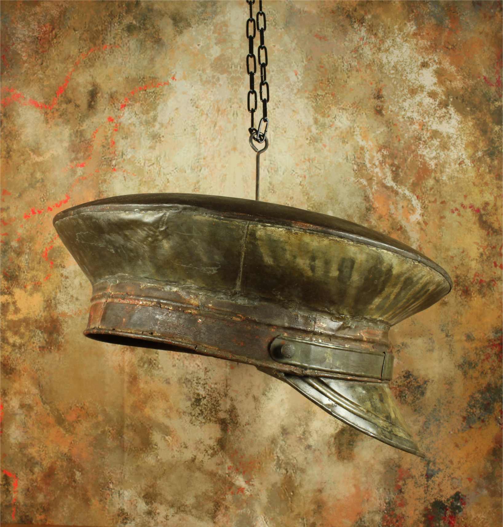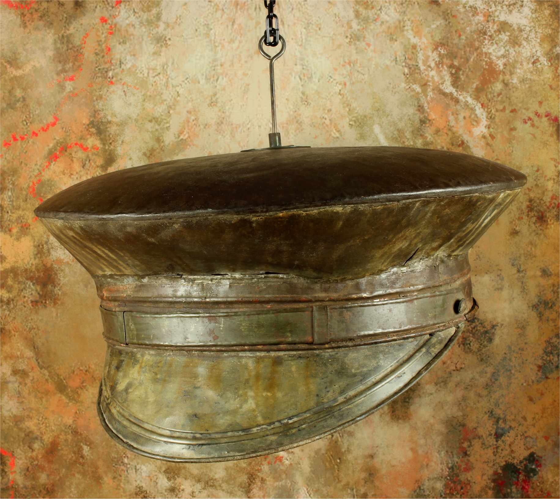 Condition: Very good used antique condition with signs of use and wear in keeping with age. Has a wonderful weathered look. Some wear, dents and splits. Can be hung from a chain using the later hook. Please see pictures.