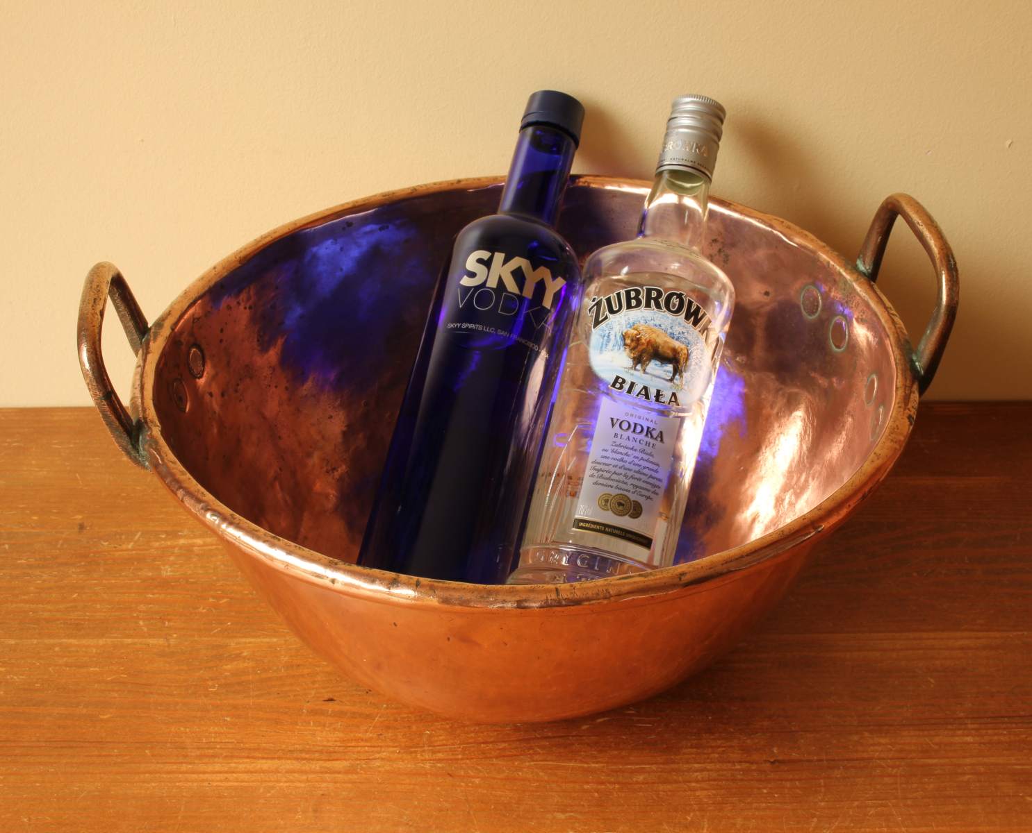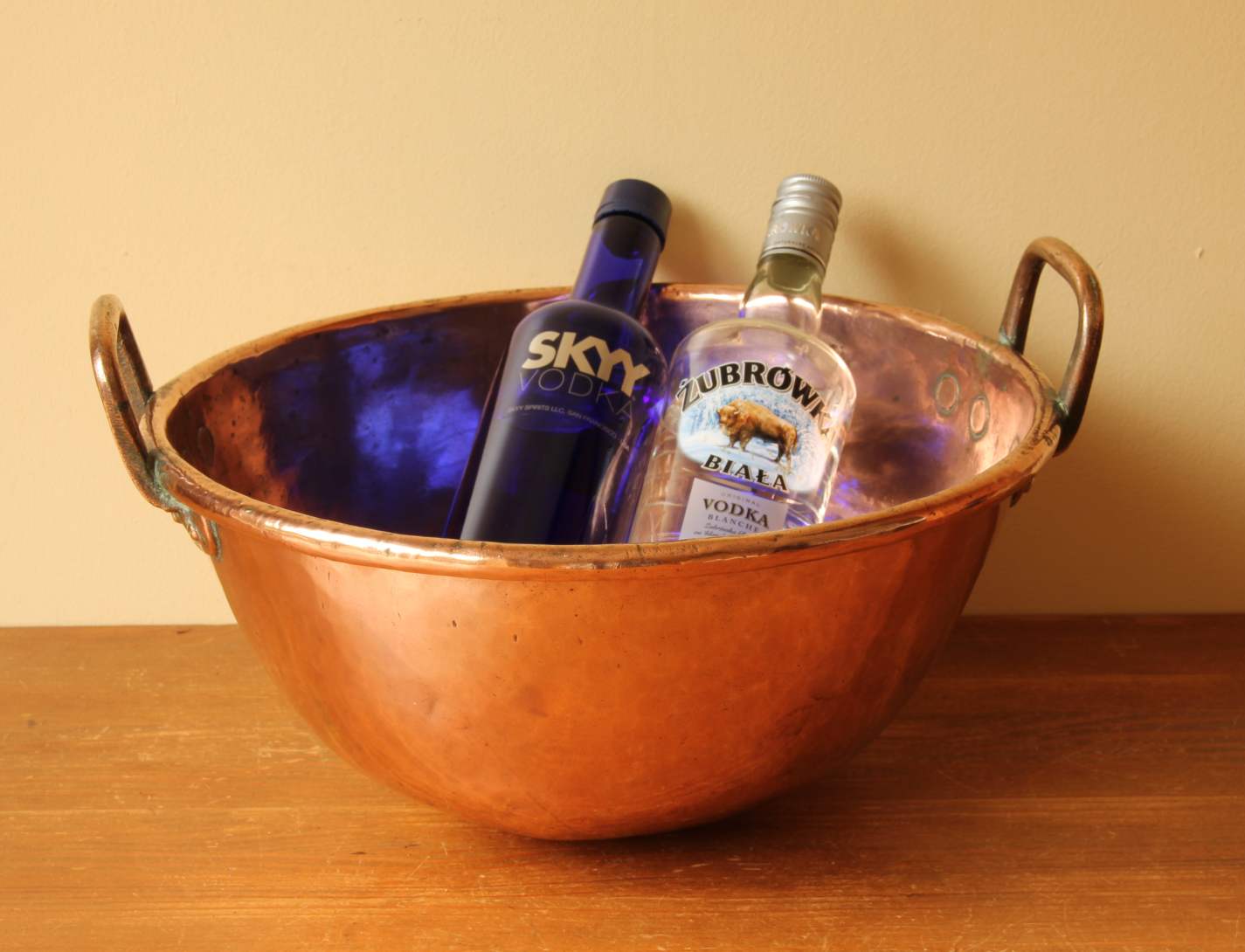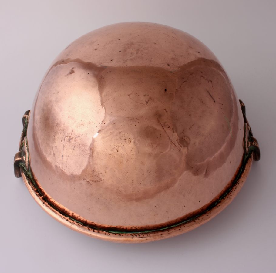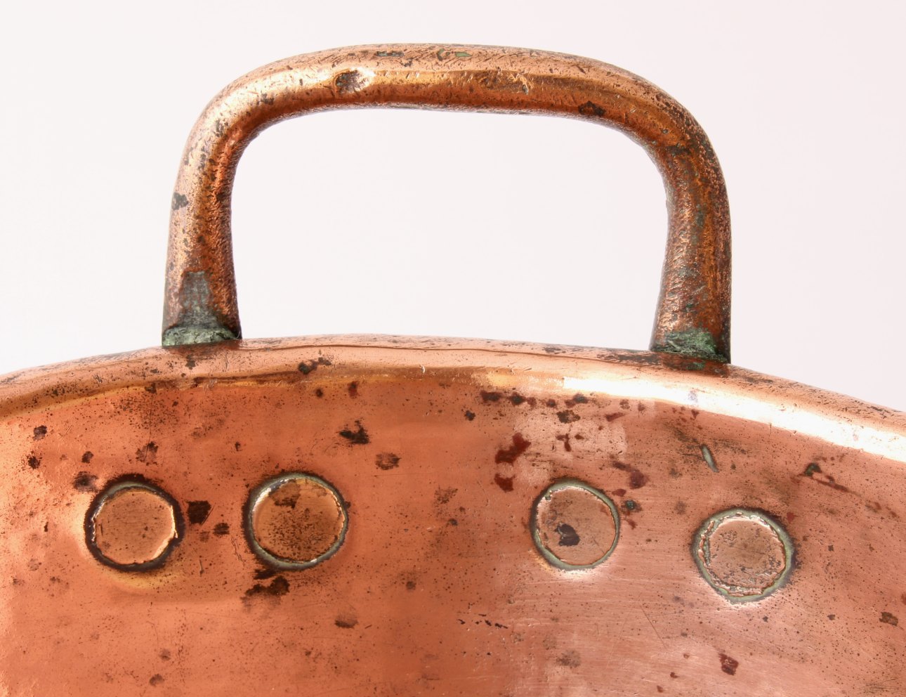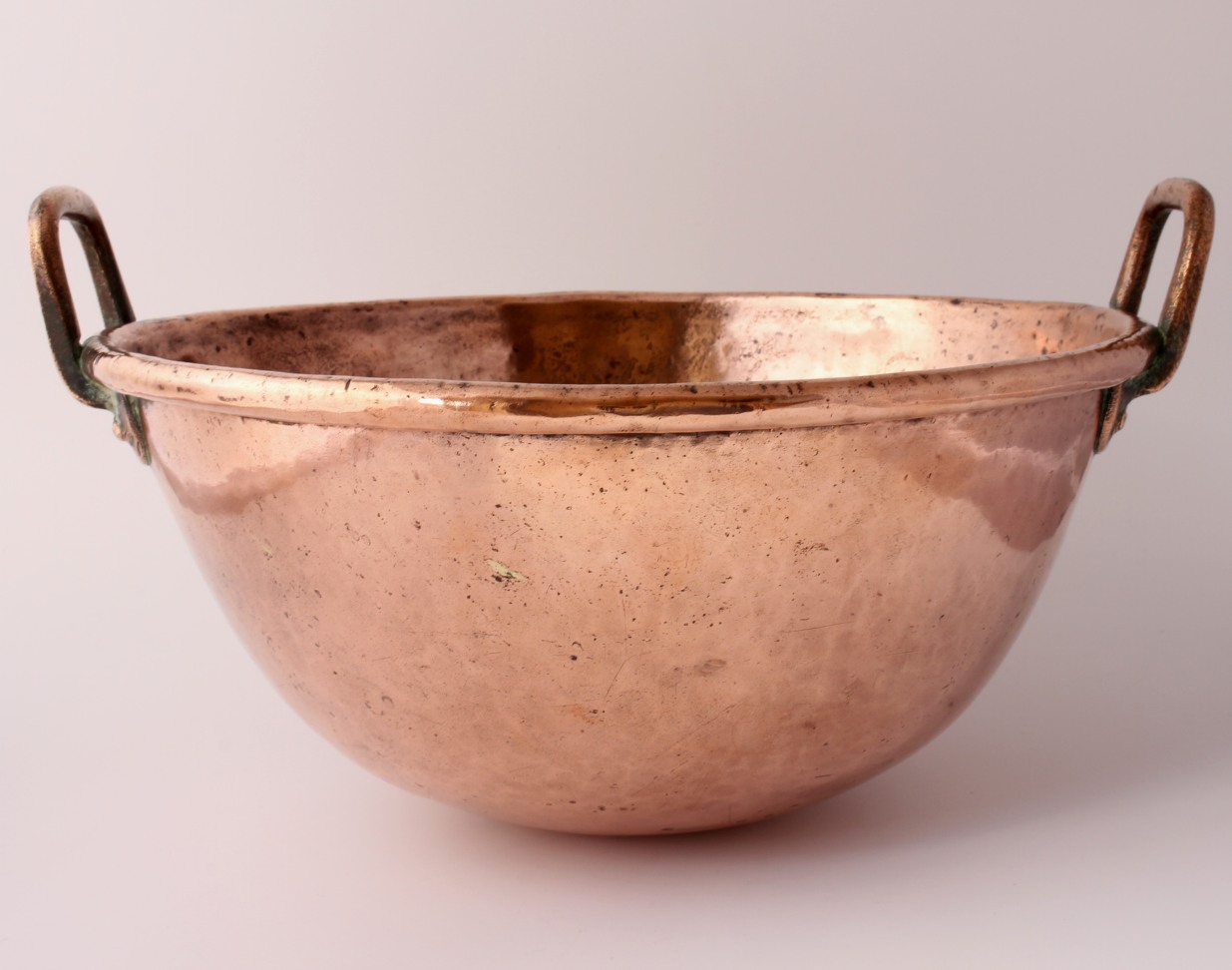 This large antique French copper chocolate bowl which dates from the 19th century has lots of aged character and a wonderful look.