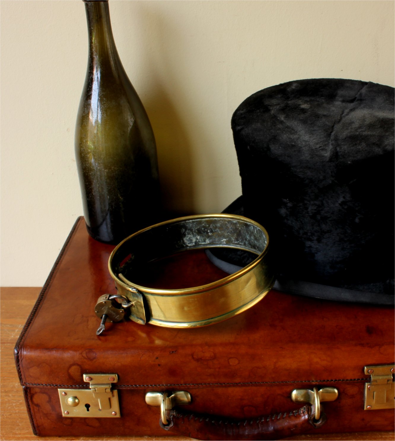 The collar which has a wonderful patina and verdigris to the inner would have been used for a large dog like a bulldog and is lockable using the padlock and key.