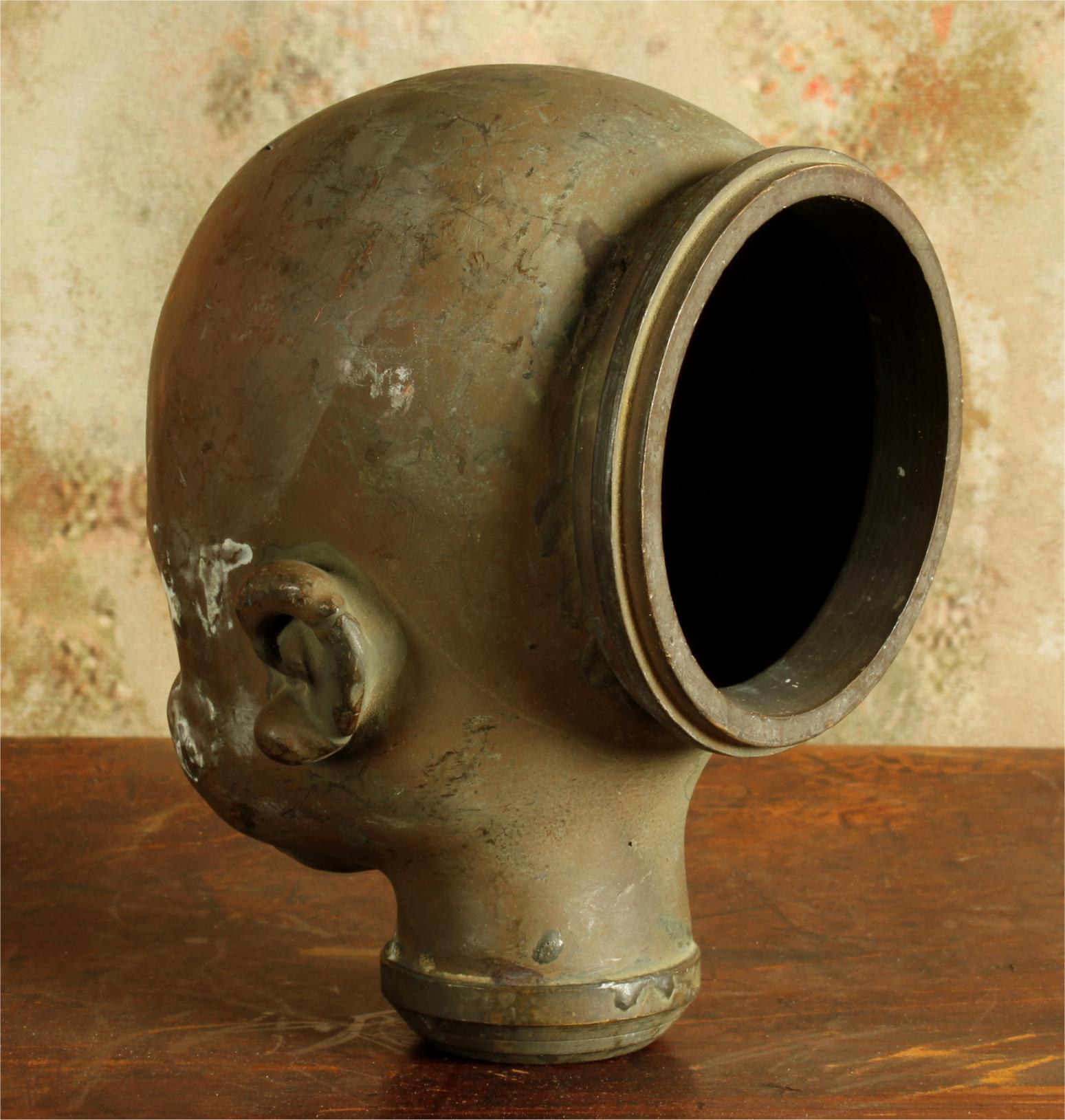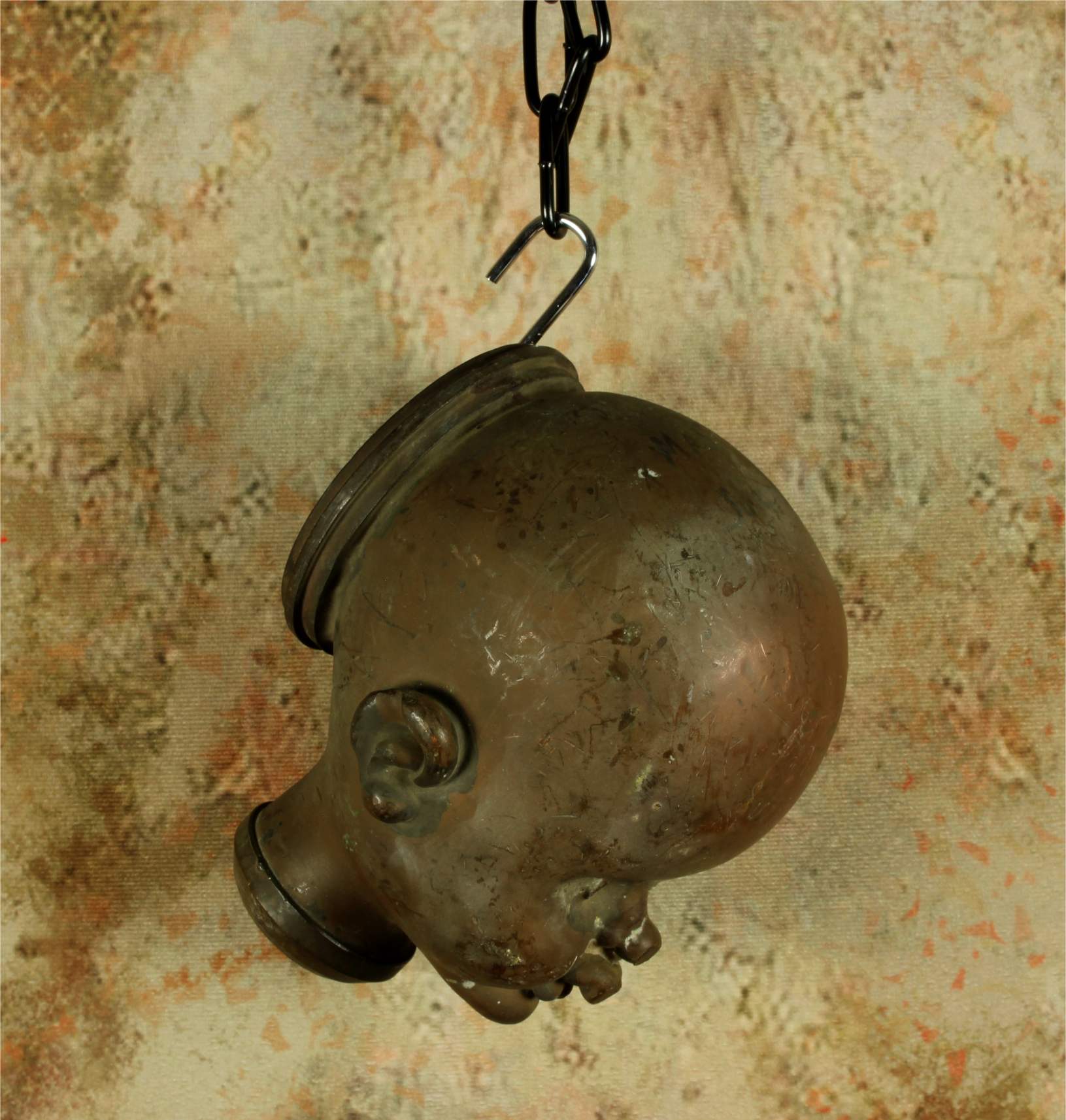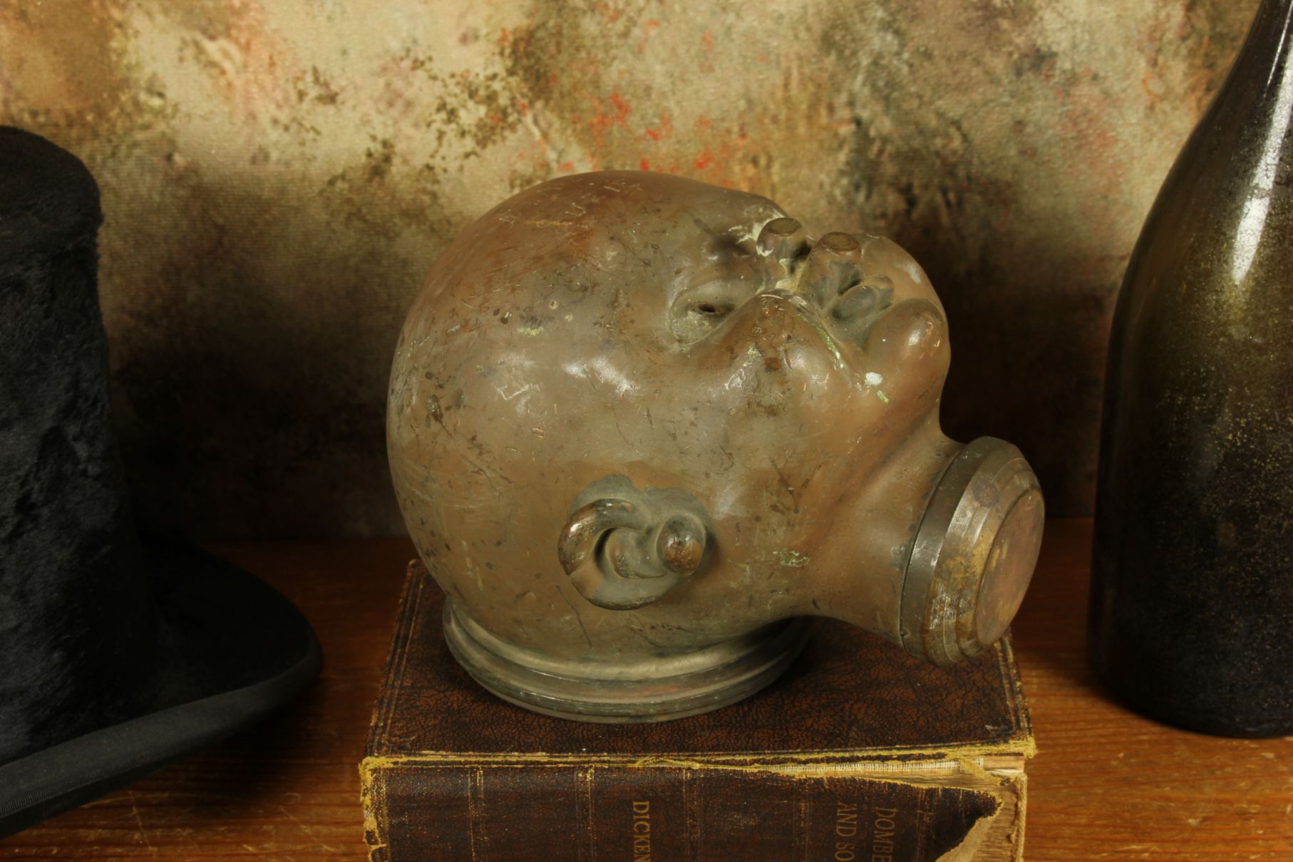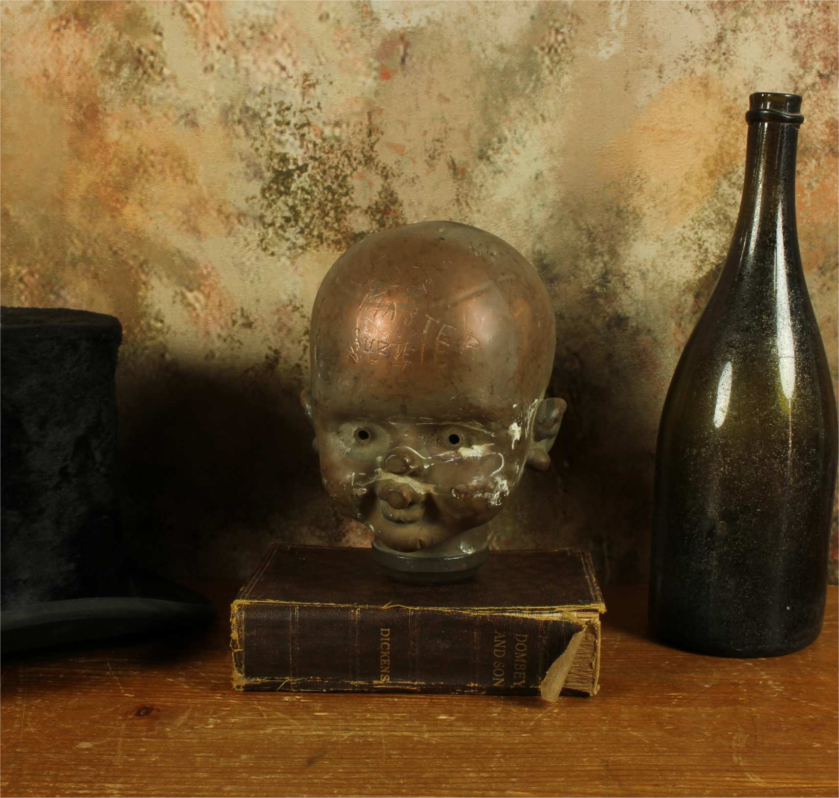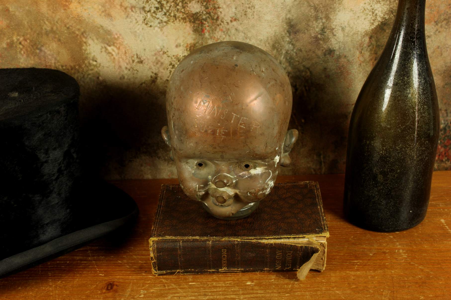 This large size doll head mould which dates from the mid 20th century is made of heavy copper and came from Bella Doll factory in Perpignan, France.