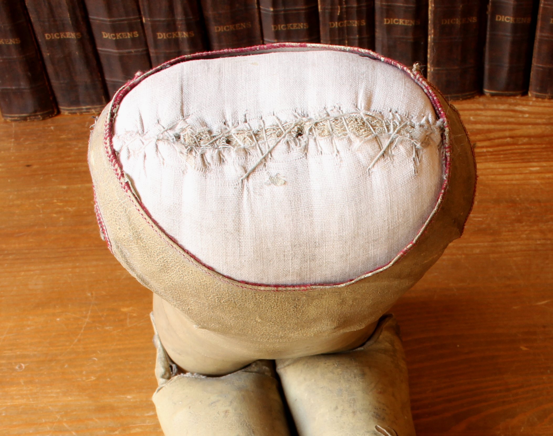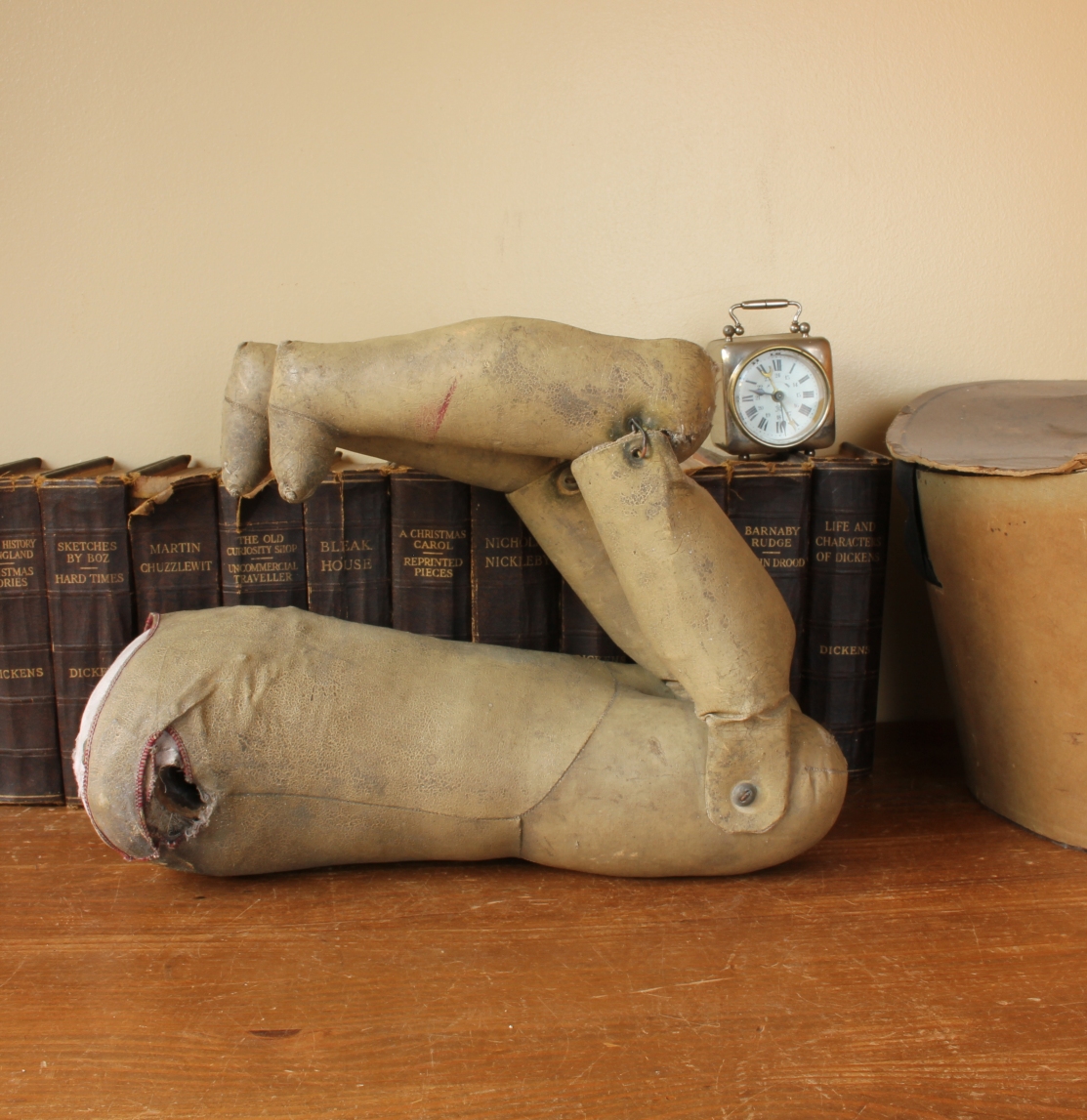 This wonderful antique doll style mannequin which dates from the early 20th century is most probably German, made of leather with straw filling and is in the form of a doll body with moving jointed legs.