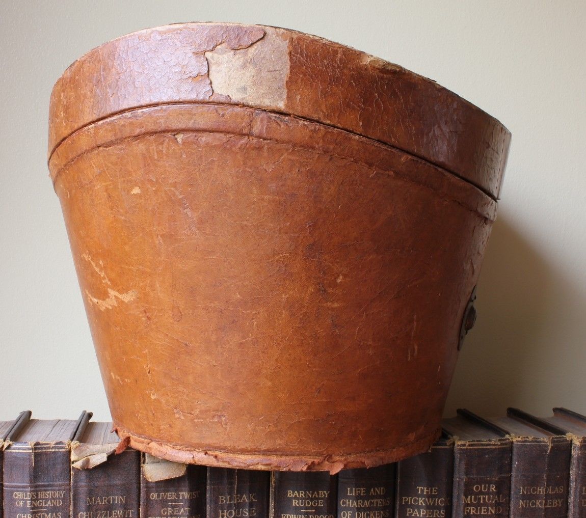 This very handsome antique leather hat case looks very decorative with a rustic aged leather which has beautiful colour.