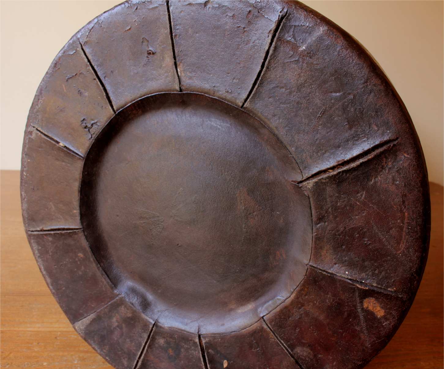 This great looking carrier has two chunky handles which are fixed to the sides with brass rivets and the front is stamped with a letter N, a broad arrow and JAH indicating that this was used by the British Navy to carry artillery ammunition.