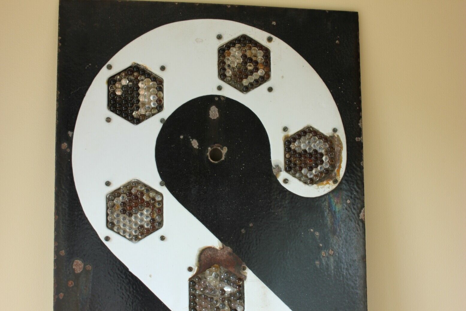 Condition: Well used vintage condition with signs of wear, tear, rust, chips, dings and scratches giving the sign a wonderful decorative look. Some damage to reflectors. Please see pictures.