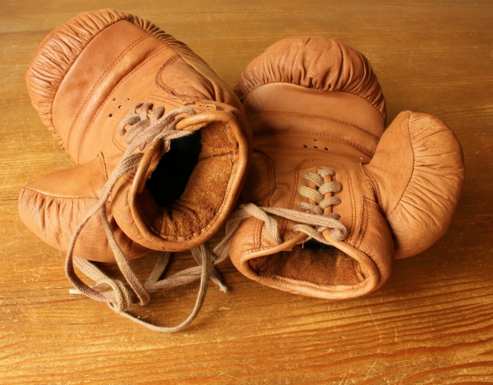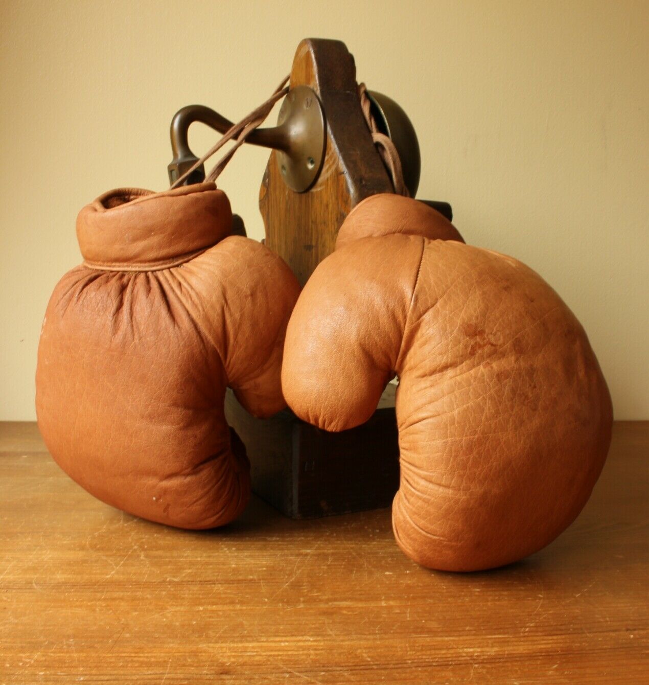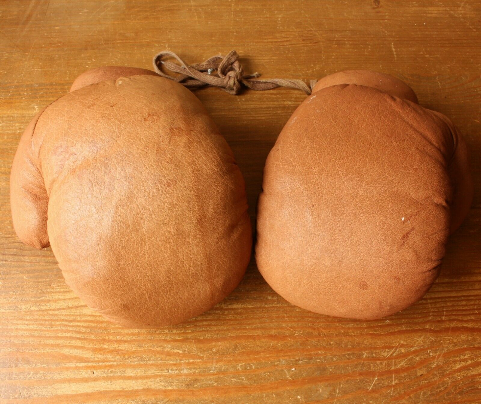 This nice original pair of light brown leather boxing gloves are straw filled, date from the early 20th century and would make wonderful display items for a boxing club, bar, shop etc or just a nice decorative piece of boxing memorabilia for your man cave.