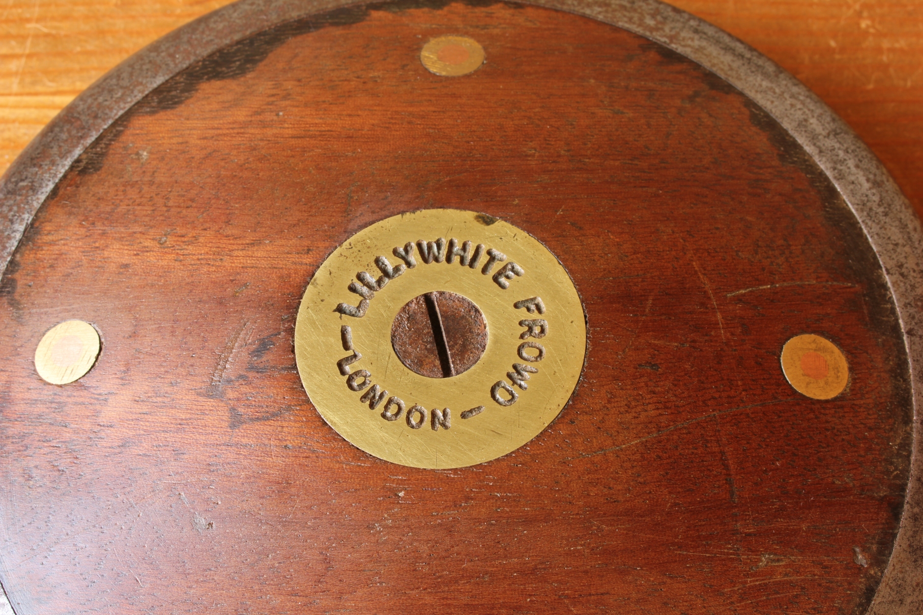 This decorative vintage wooden discus which dates from the second quarter of the 20th century is made by Lillywhite Frowd, London.