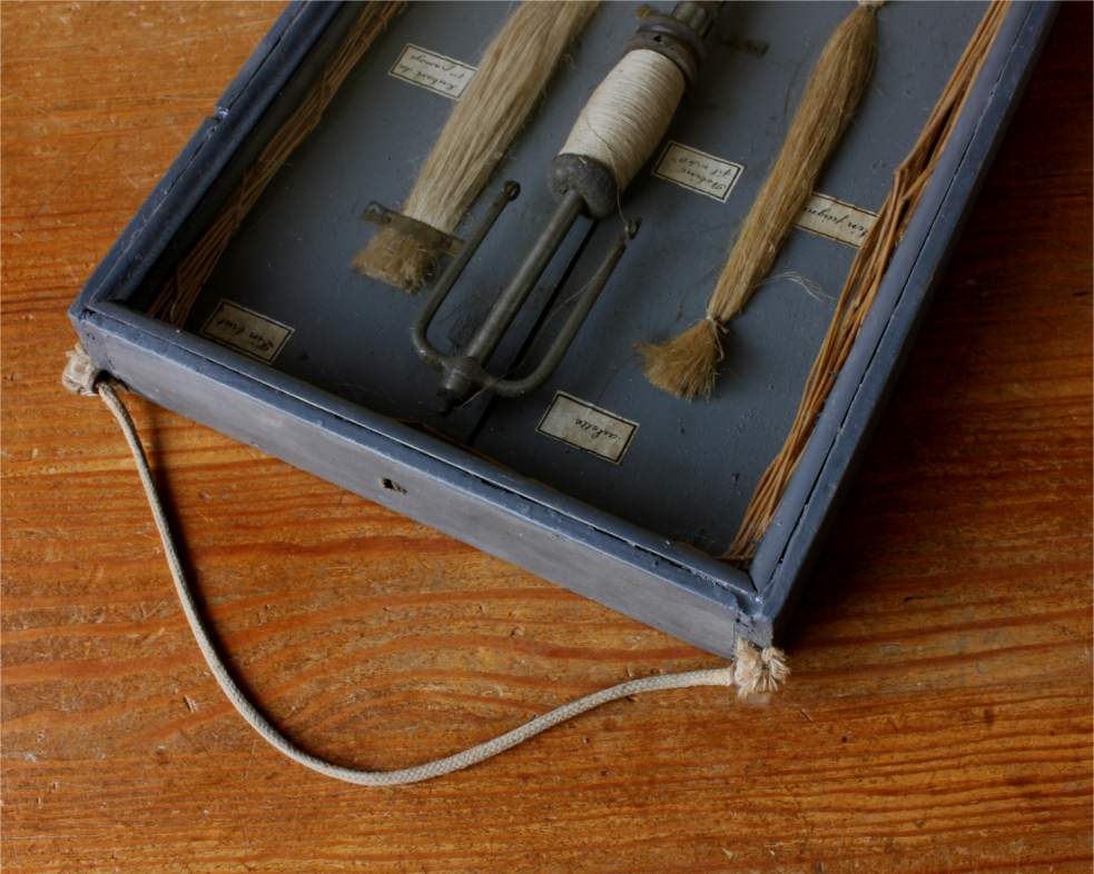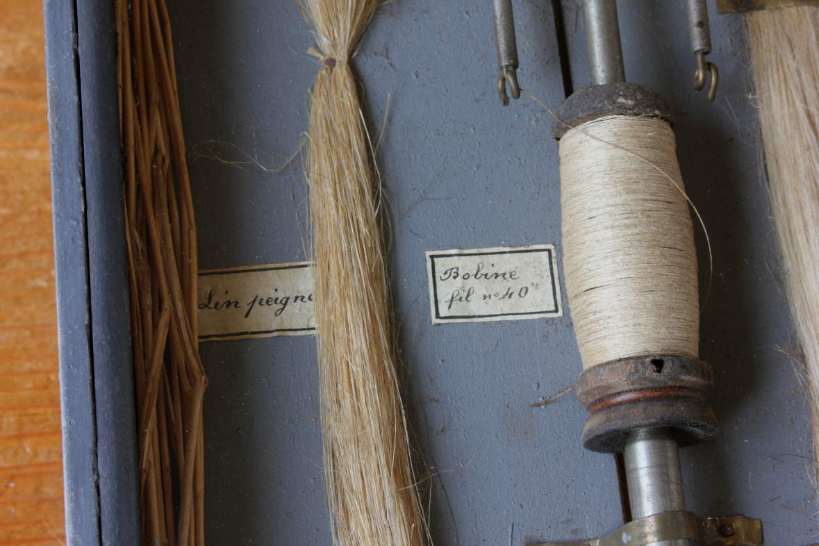 This decorative diorama which dates from the first half of the 20th century originates from France and shows the different stages of the process of making linen thread from flax.