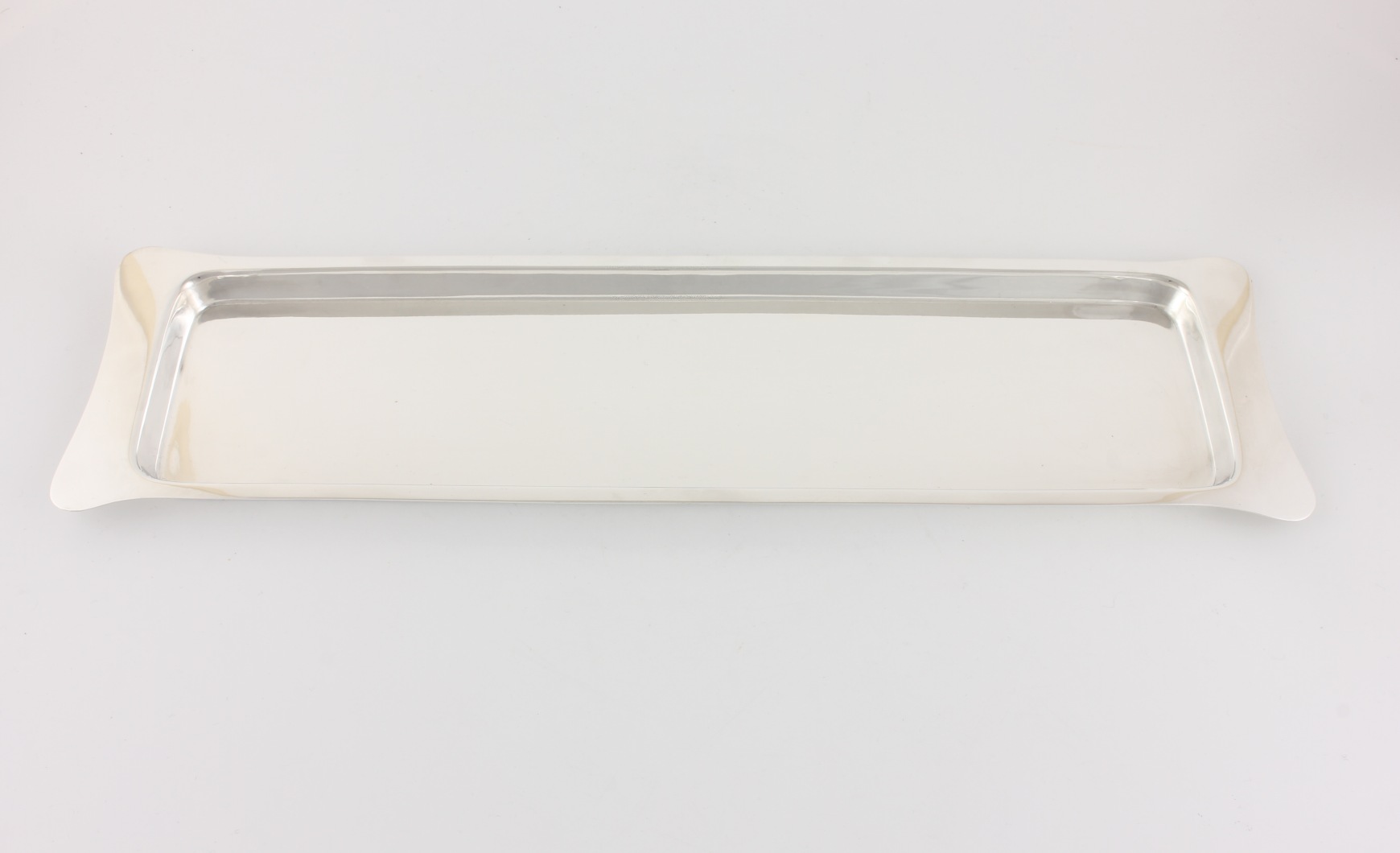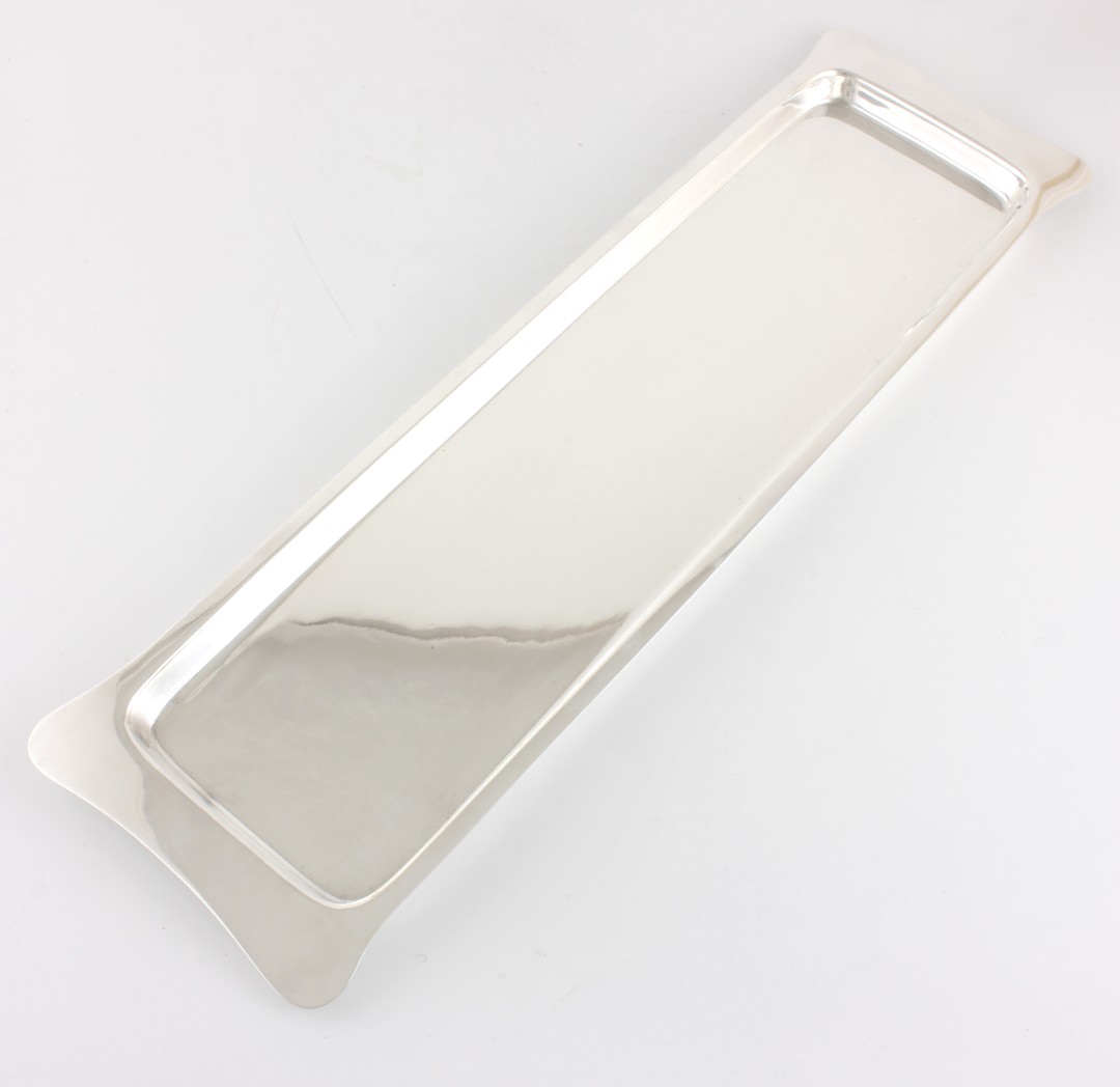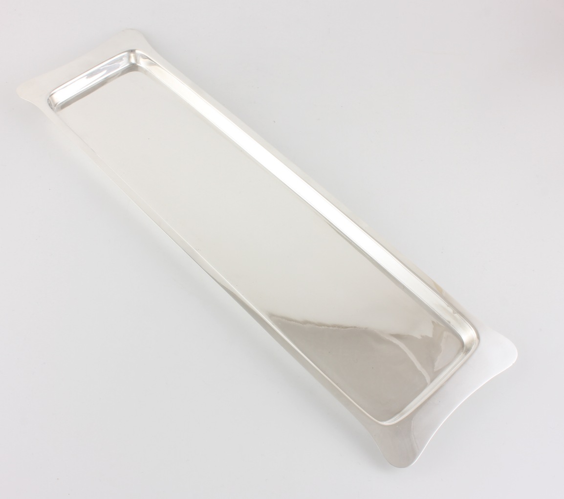 This nice quality oblong tray has a classic plain design, feels weighty in the hand and is marked to the base with the maker's mark.