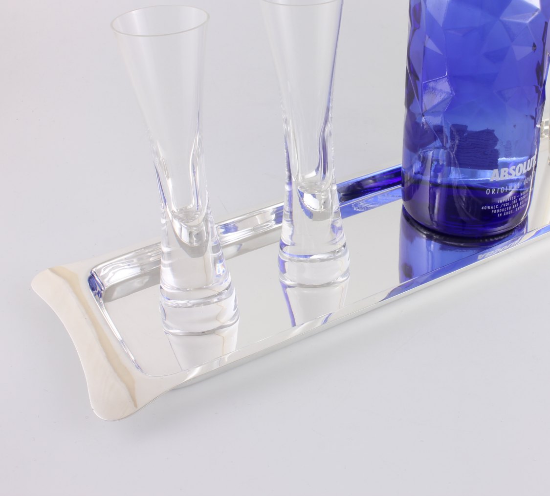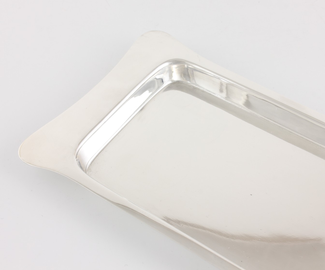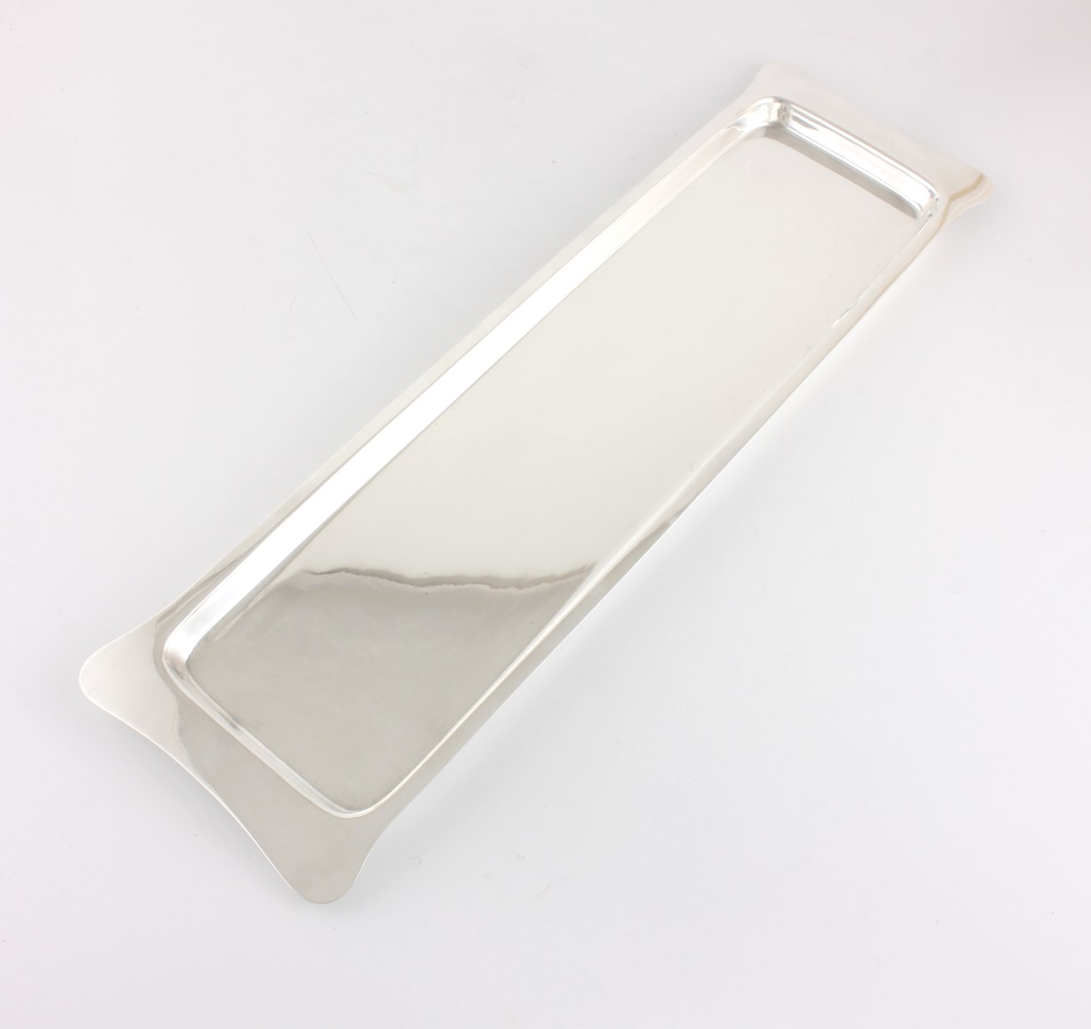 This nice quality oblong tray has a classic plain design, feels weighty in the hand and is marked to the base with the maker's mark.