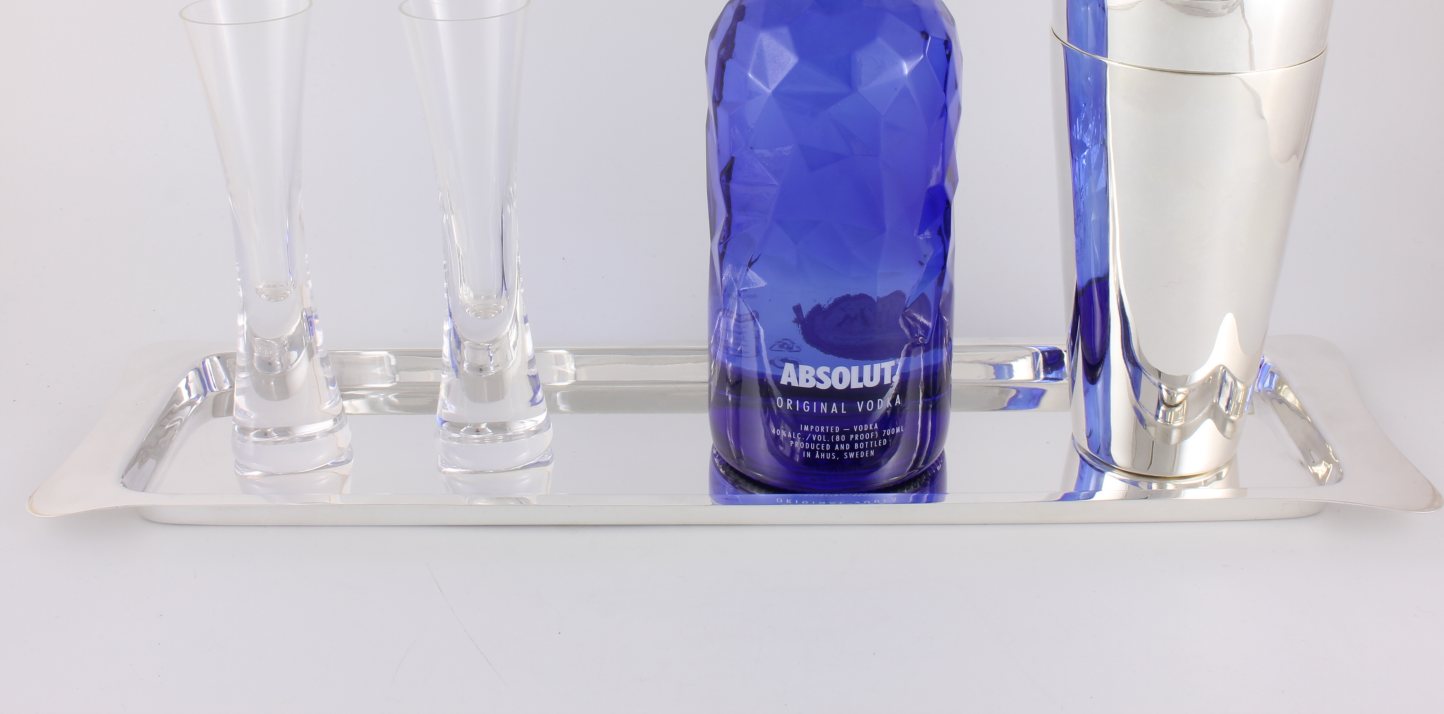 This stylish antique cocktail tray which is made by top silversmith Hukin & Heath Ltd is made of silver plate and dates from the early 20th century.