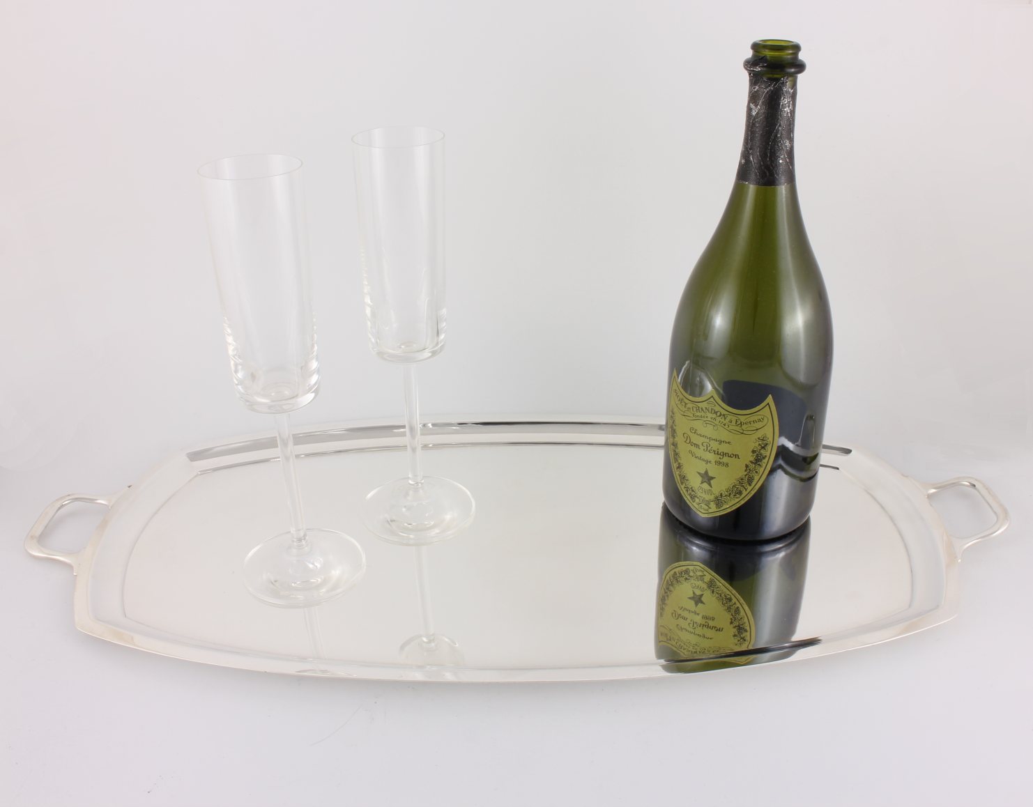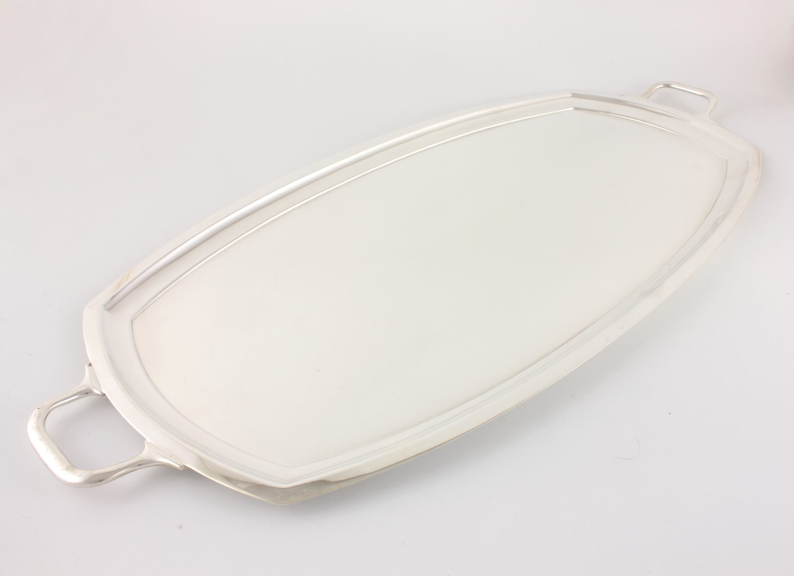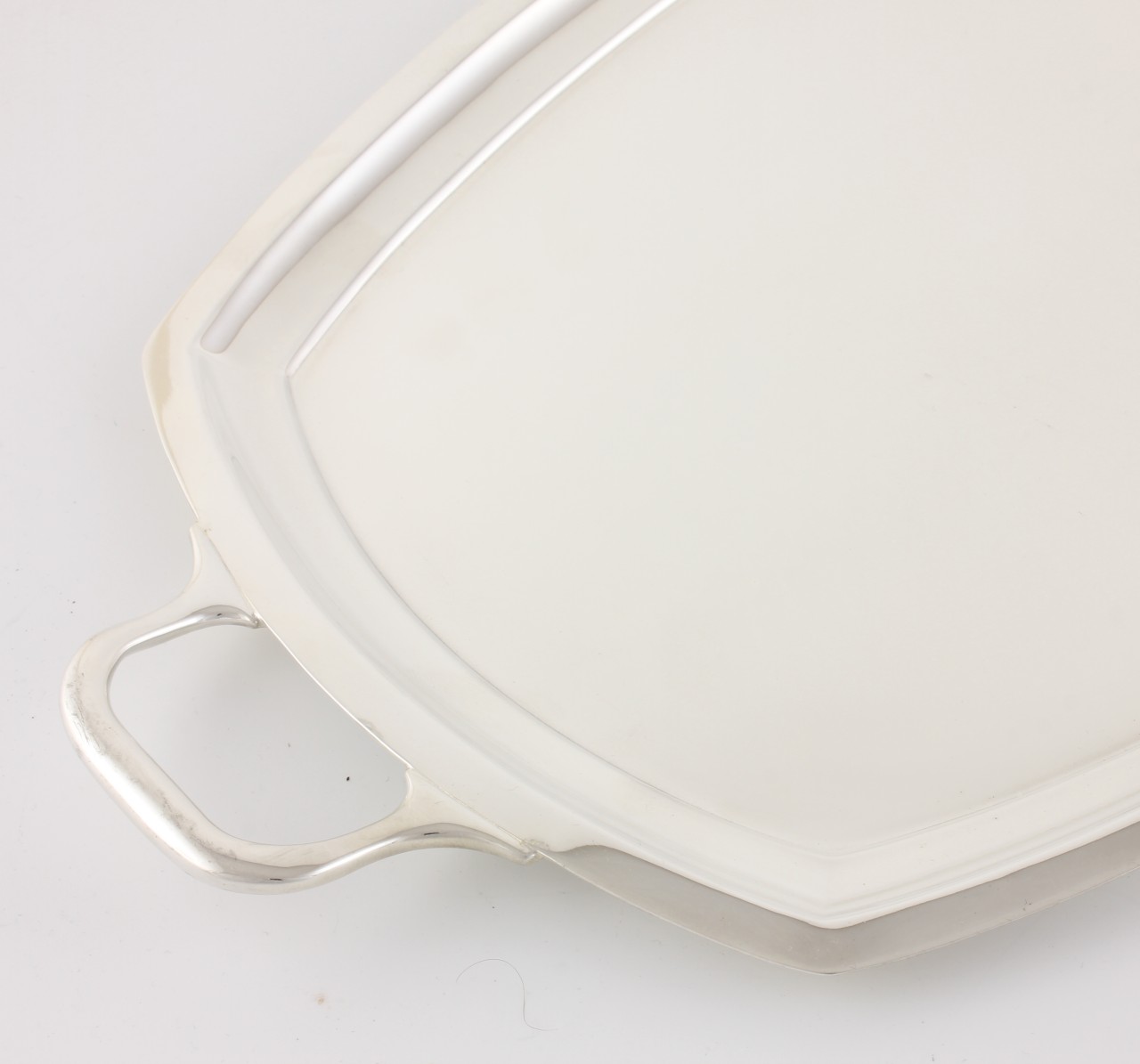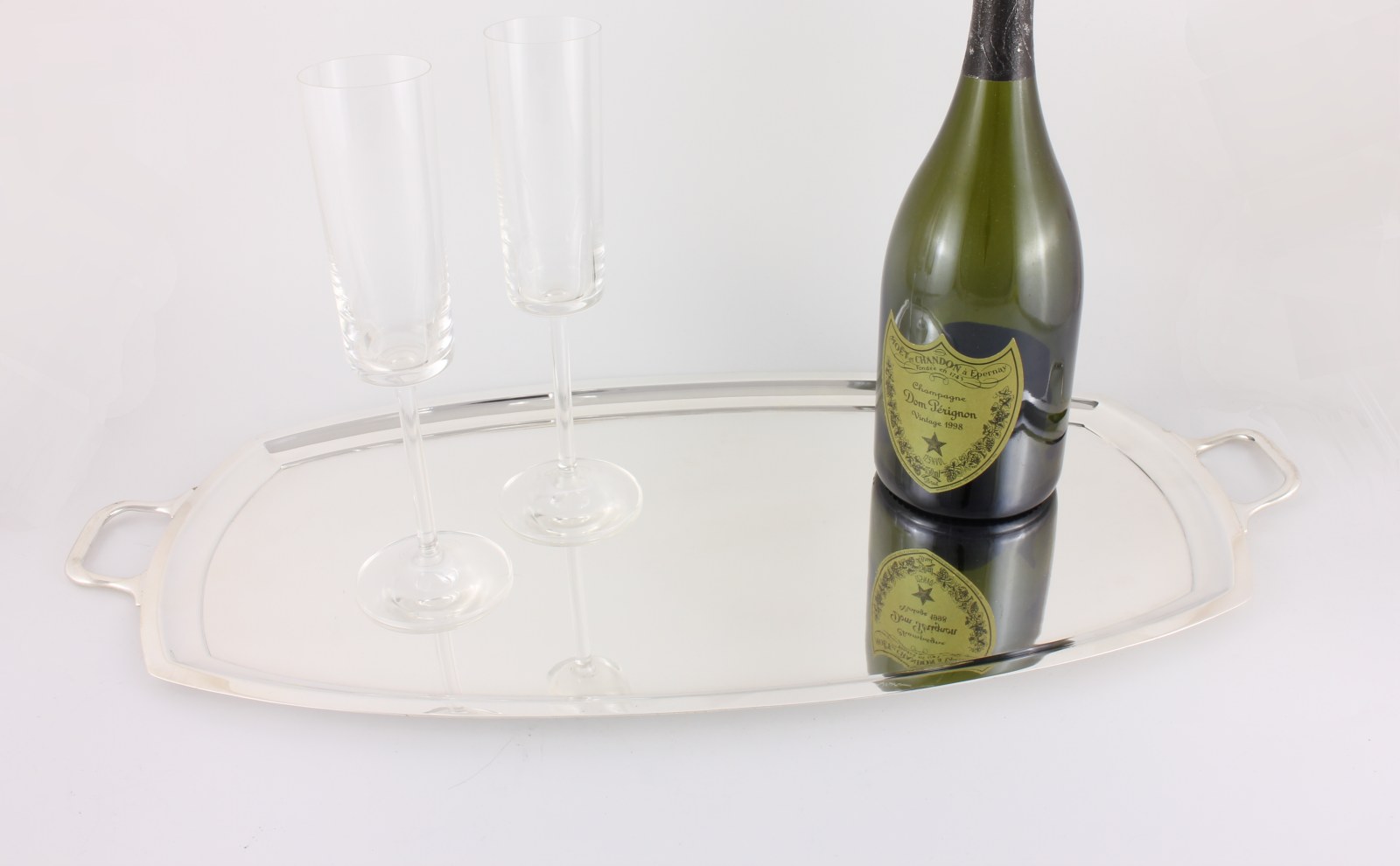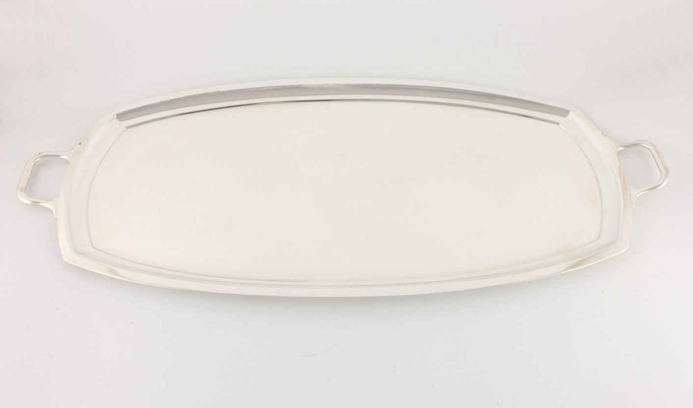 This stylish long cocktail drinks tray which is made of silver plate is by top silversmith Mappin & Webb and dates from c1900.