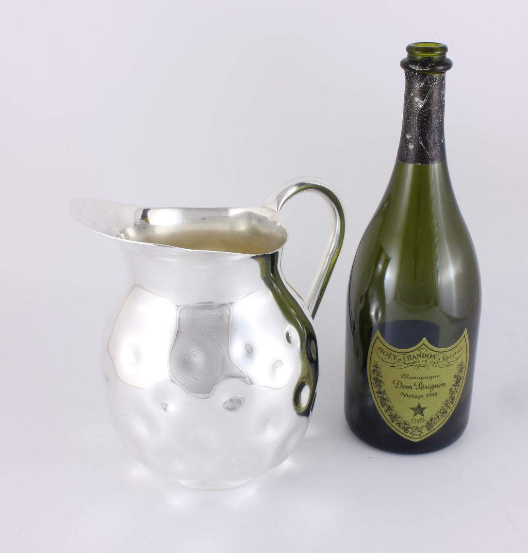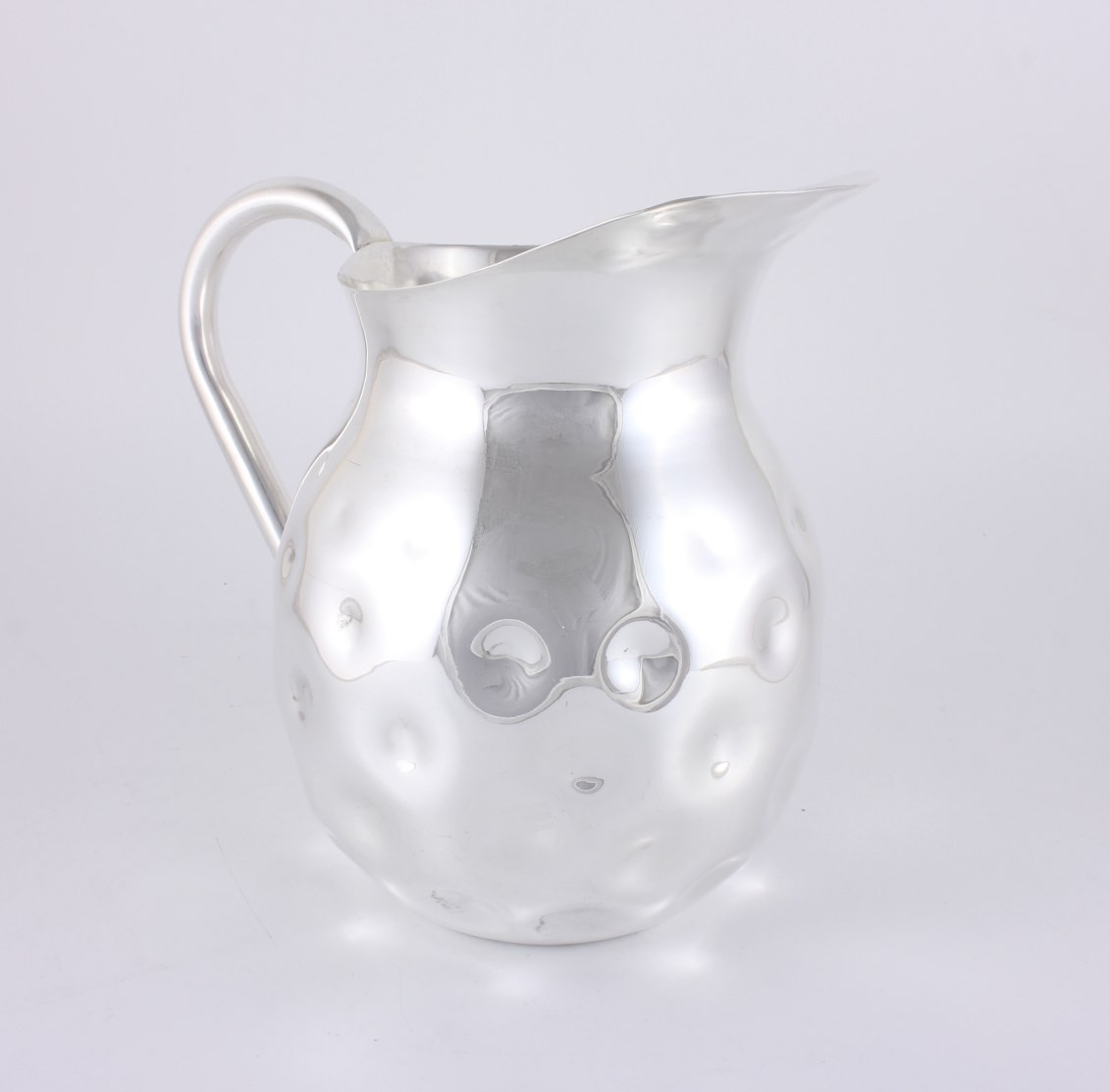 This handsome pitcher is a good size & weight, has a beautiful dimple decoration to the body, large side handle and is marked to the underside with the maker's mark.
