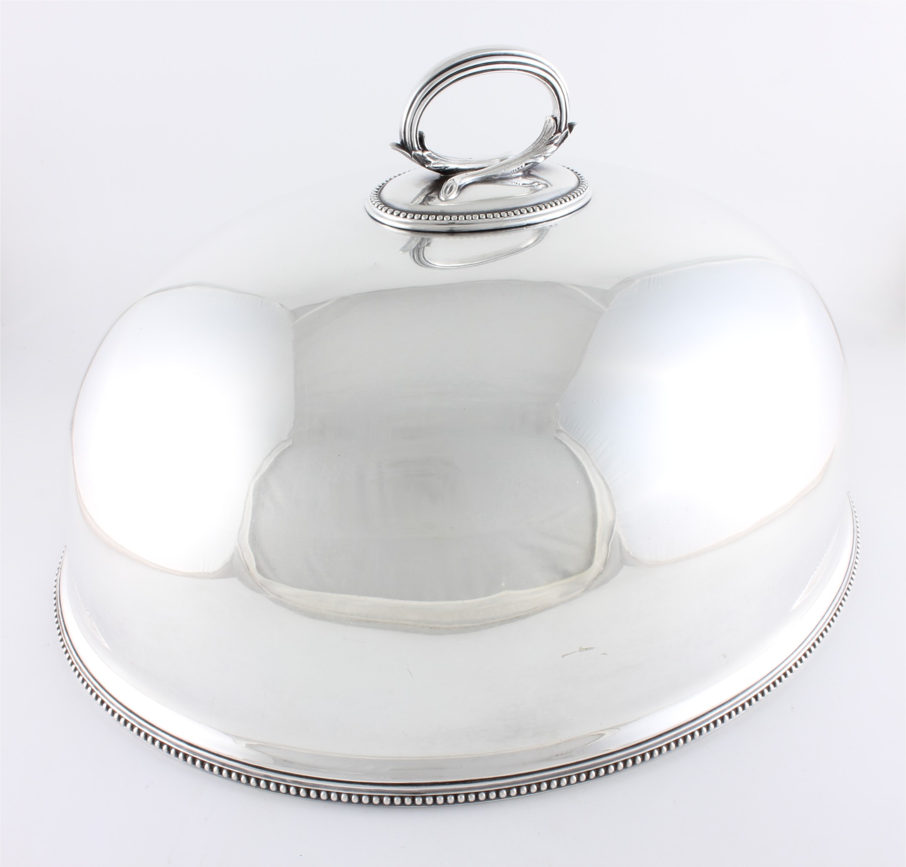 This fine quality antique meat dome which has a fabulous look with beaded edging decoration to the bottom rim and lifting handle is a heavy gauge and is the perfect size for covering your large Sunday roast or Christmas lunch.