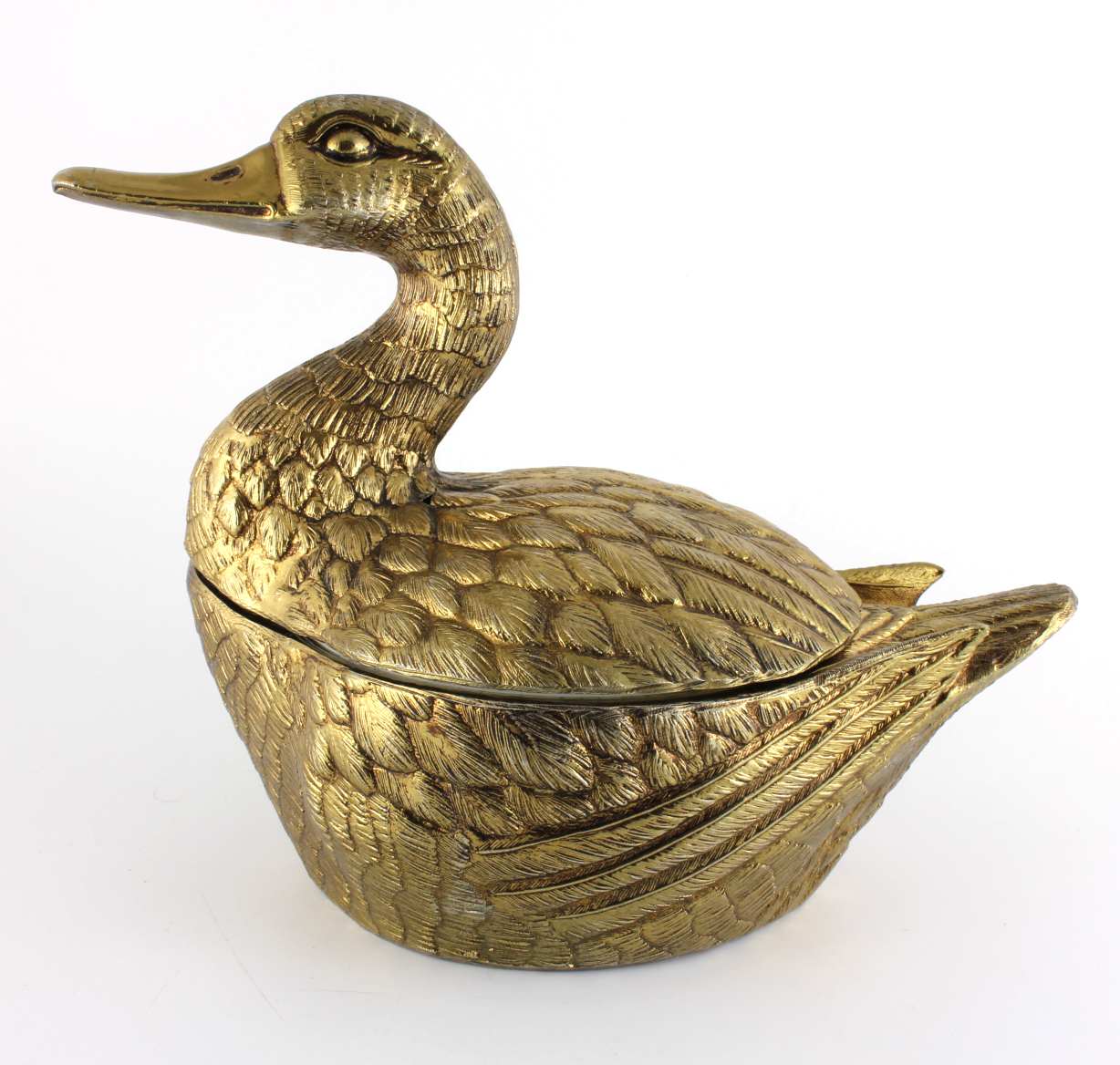 This vintage Italian duck ice bucket which is by designer Mauro Manetti is made of gilt metal and dates from the 1960's.