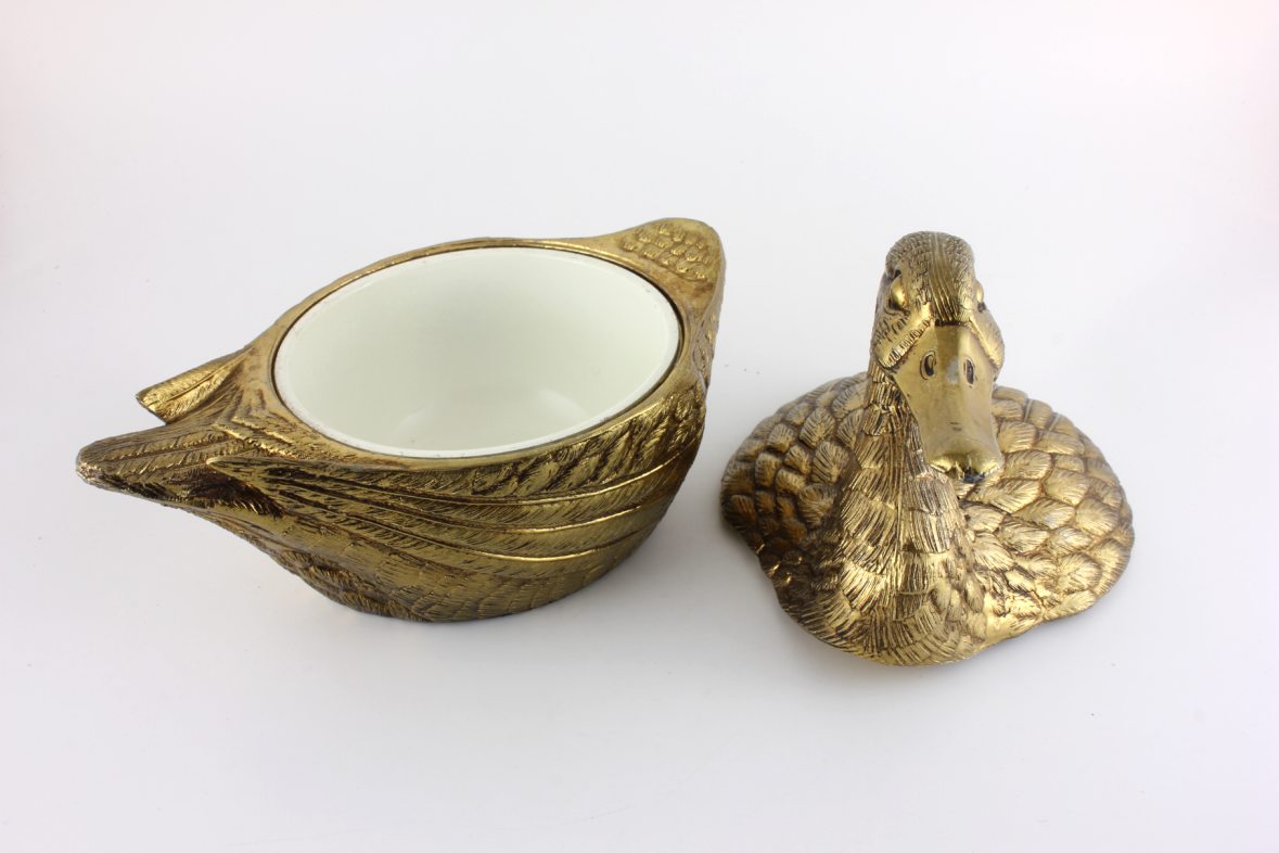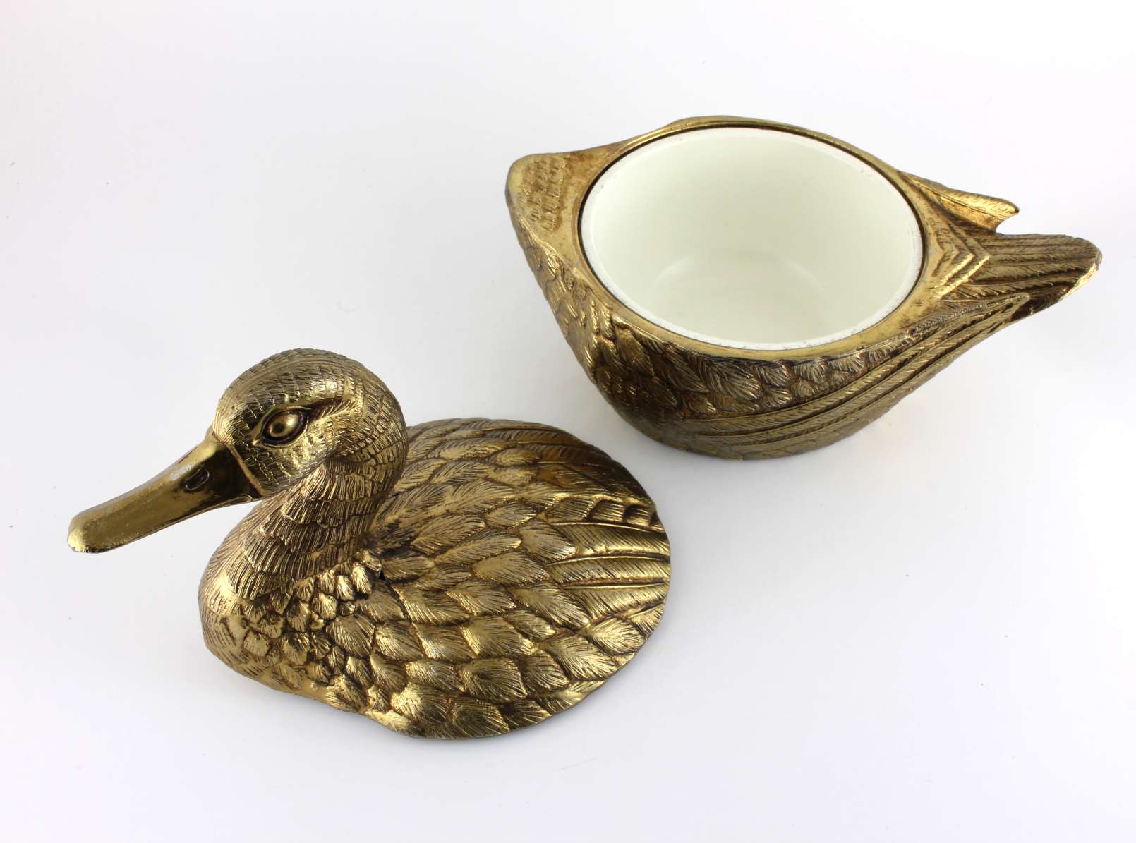 This gold coloured duck comes complete with it's original fitted metal liner, is a nice heavy piece of vintage Italian design and looks wonderful on display.