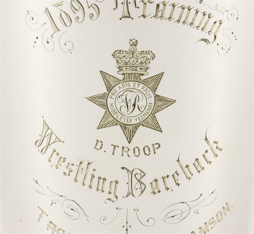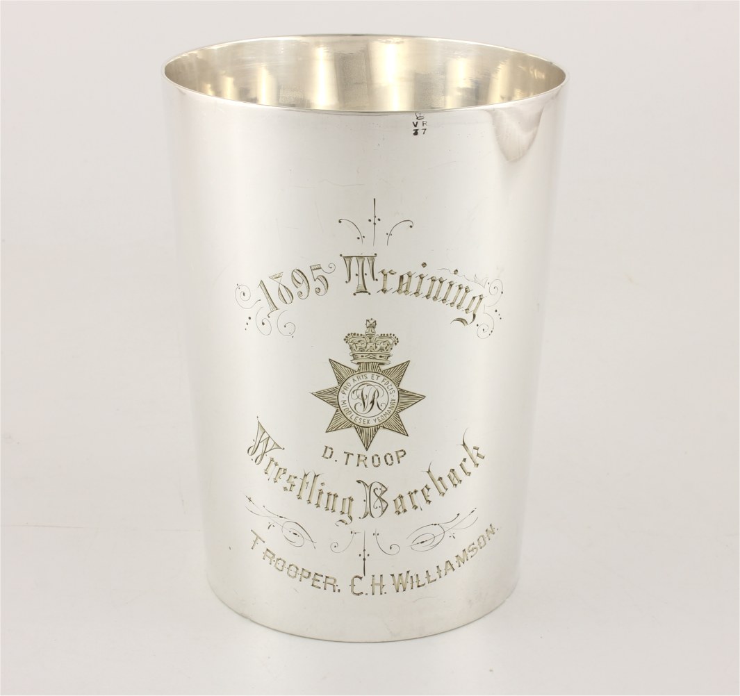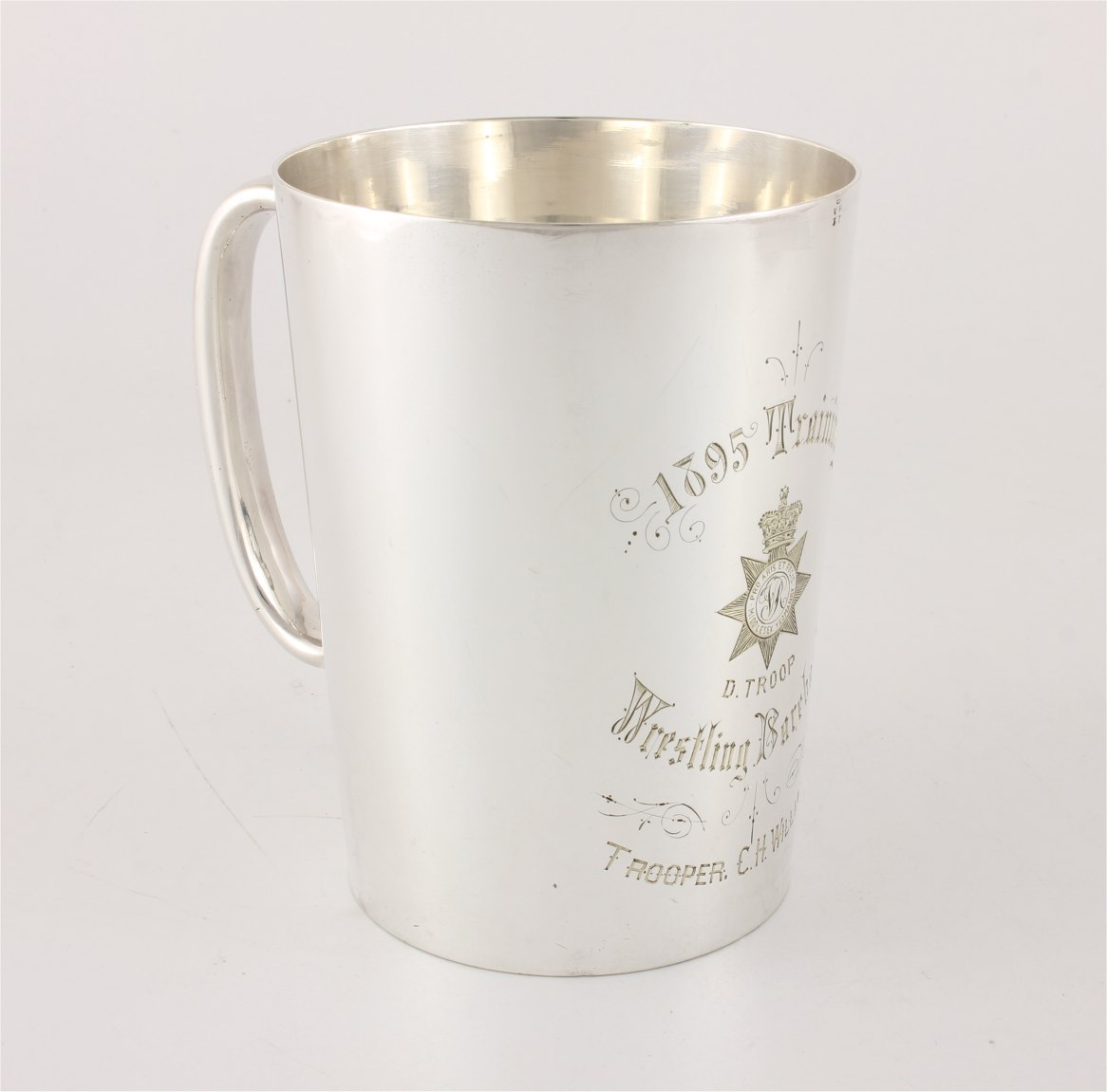 This Victorian 1 pint silver plated tankard which is by Mappin & Webb has an important connection as it was given as a trophy in 1895 and has an inscription reading: